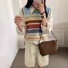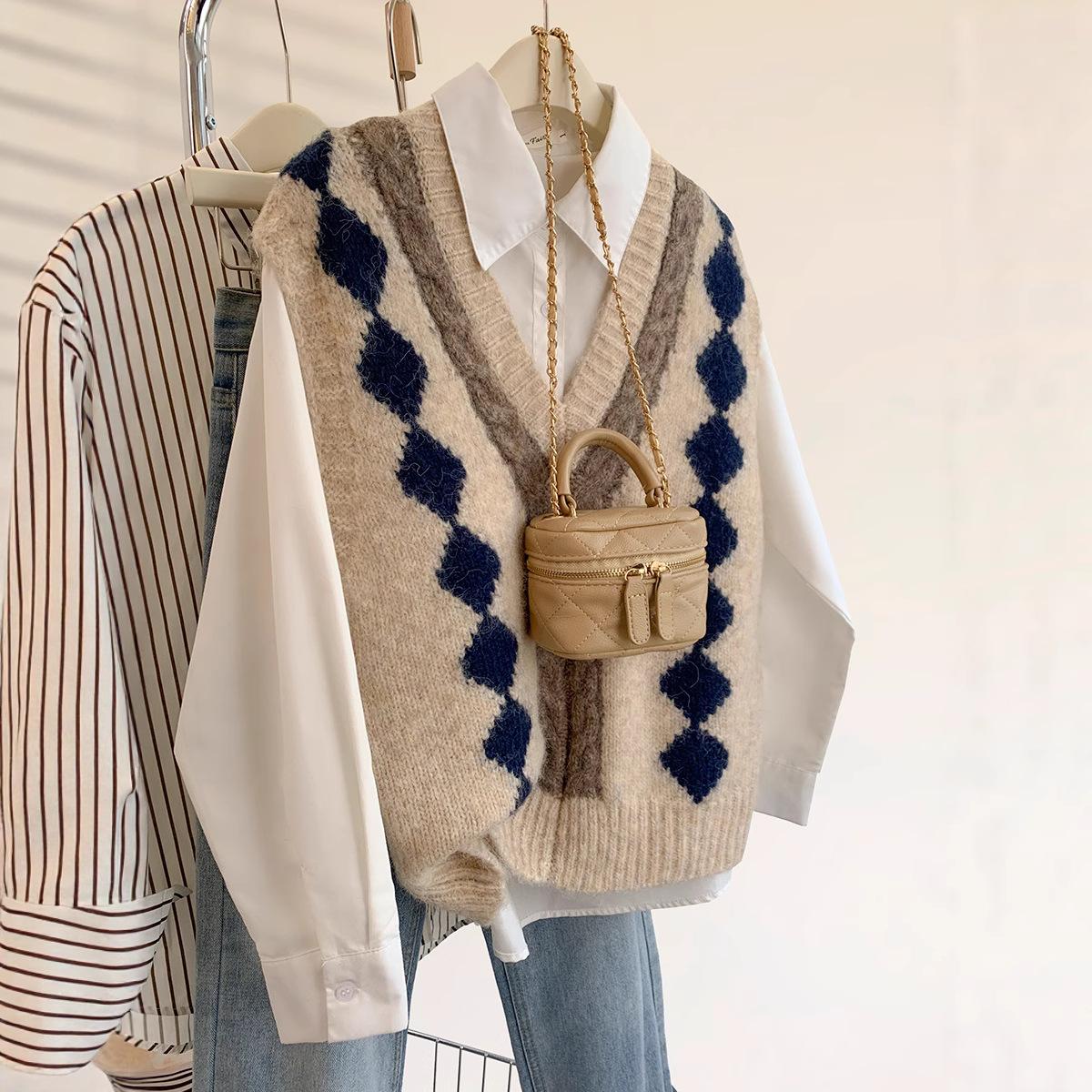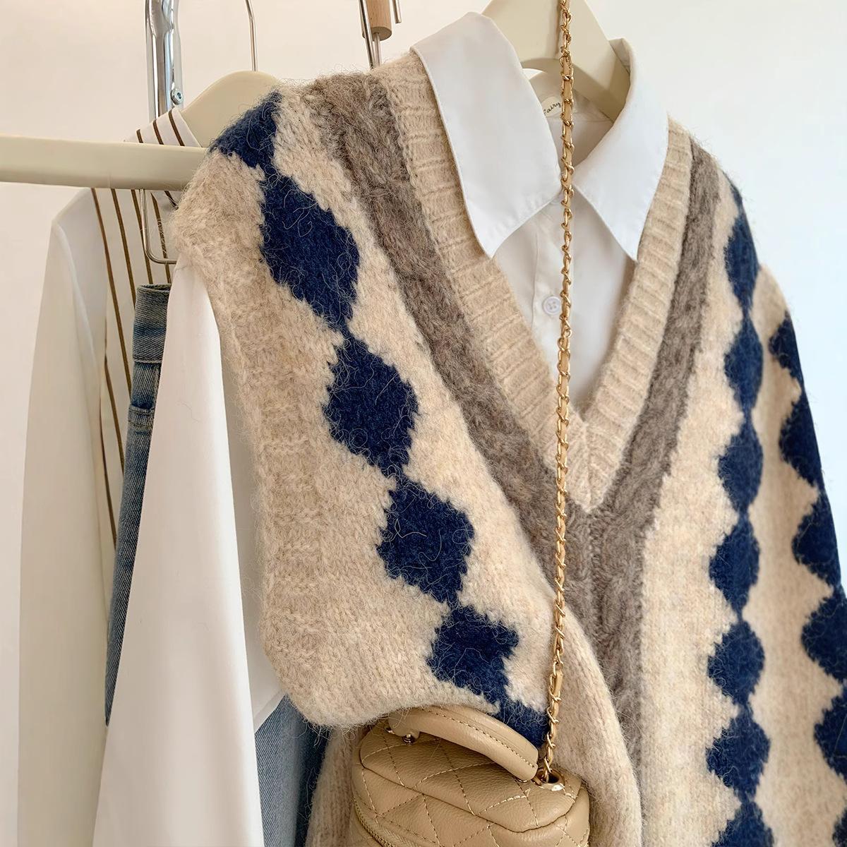Chaleco de Punto Estilo Europeo con Cuello en V y Bloque de Color para Mujer 2025 Nuevo Otoño Invierno Ropa Exterior para Superponer Suéter sin Mangas
