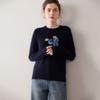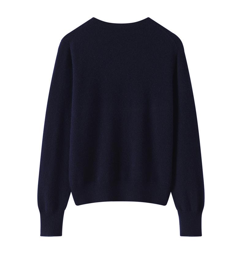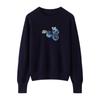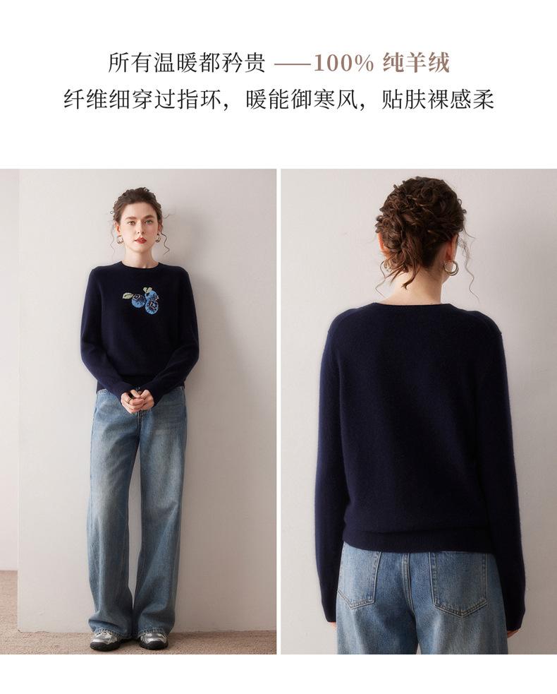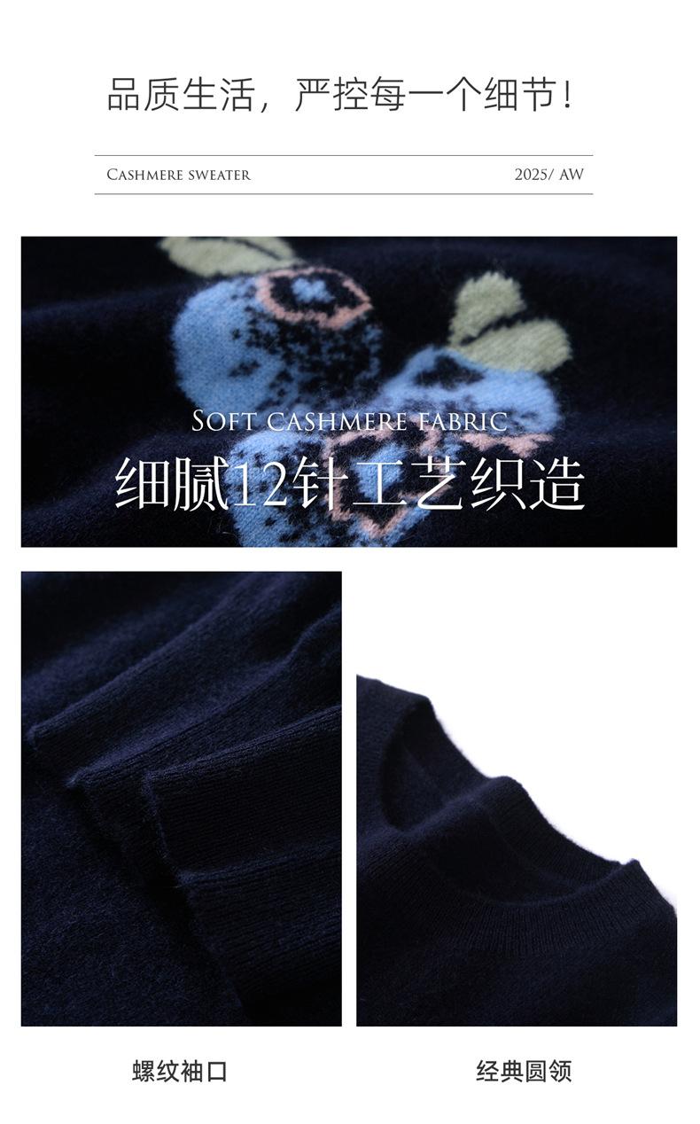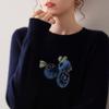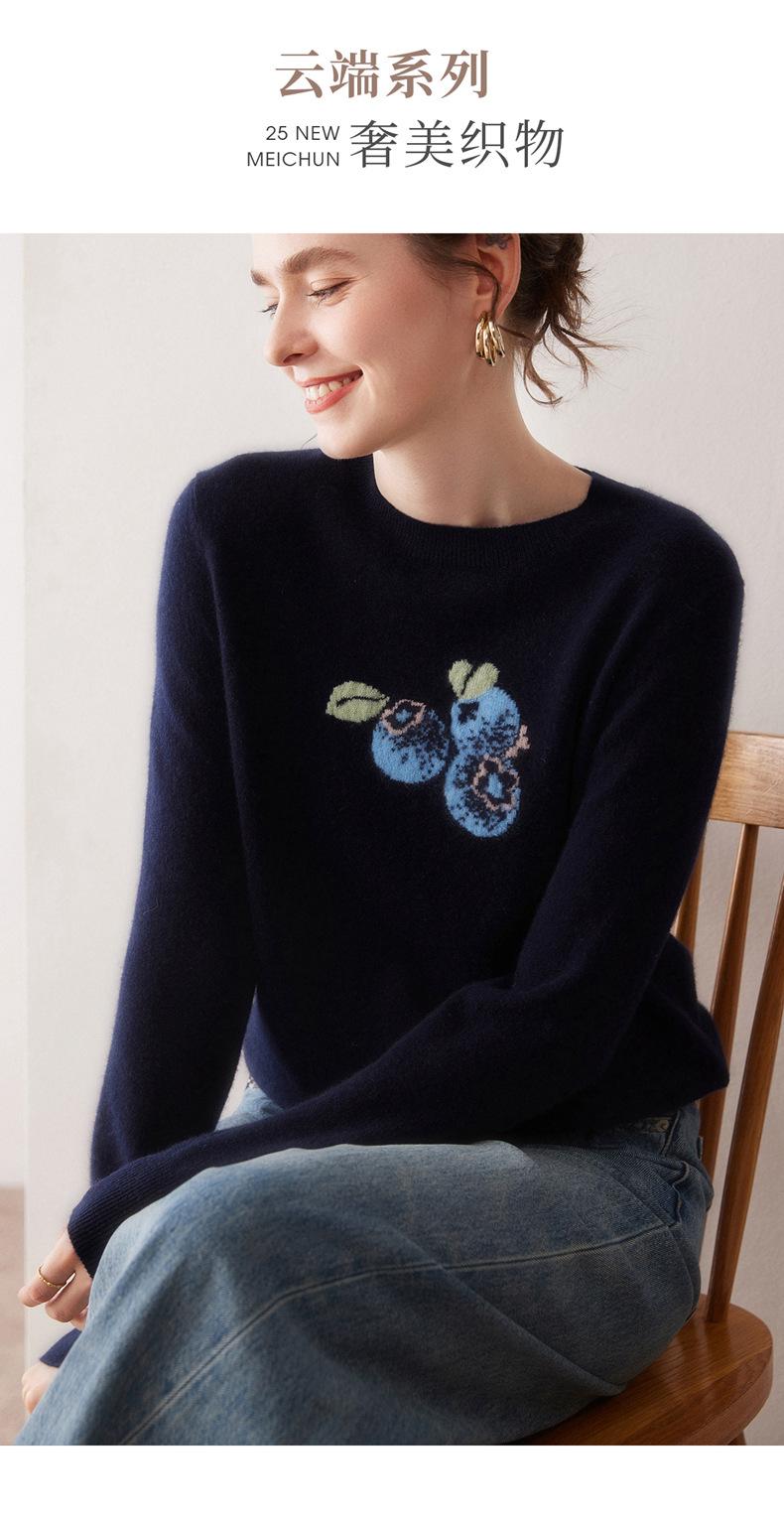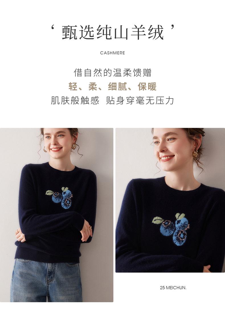 Suéter de Cachemira Mujer 100% Cachemira Pura Otoño e Invierno Nuevo Jersey de Cuello Redondo Jacquard de Arándanos Manga Larga Tejido Suéter Básico