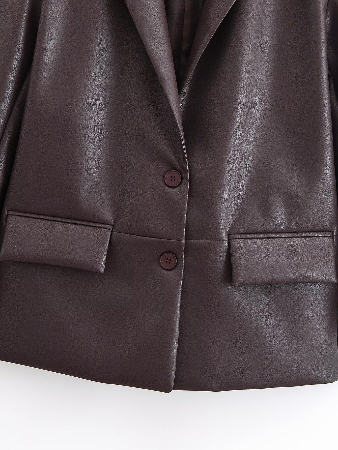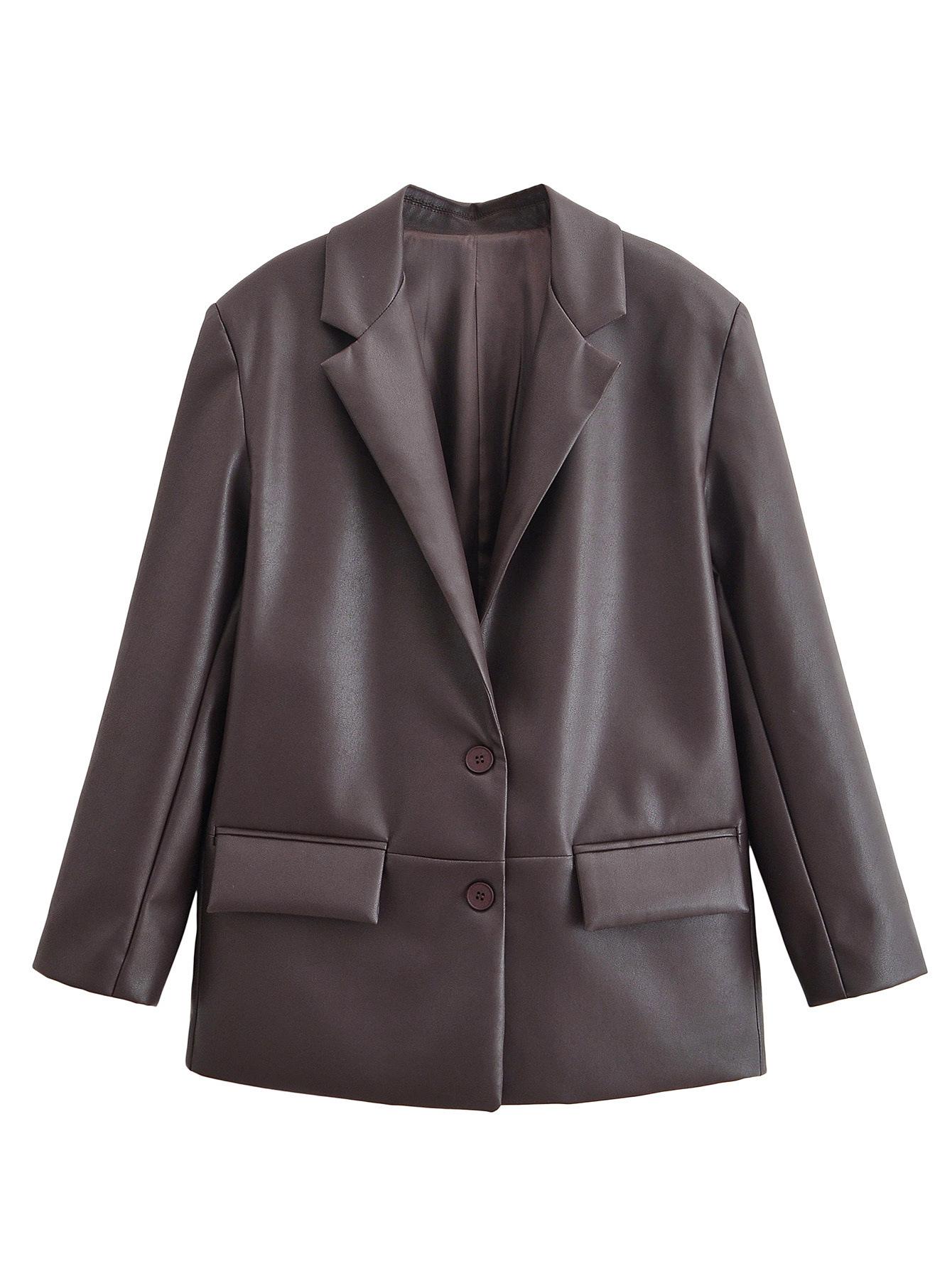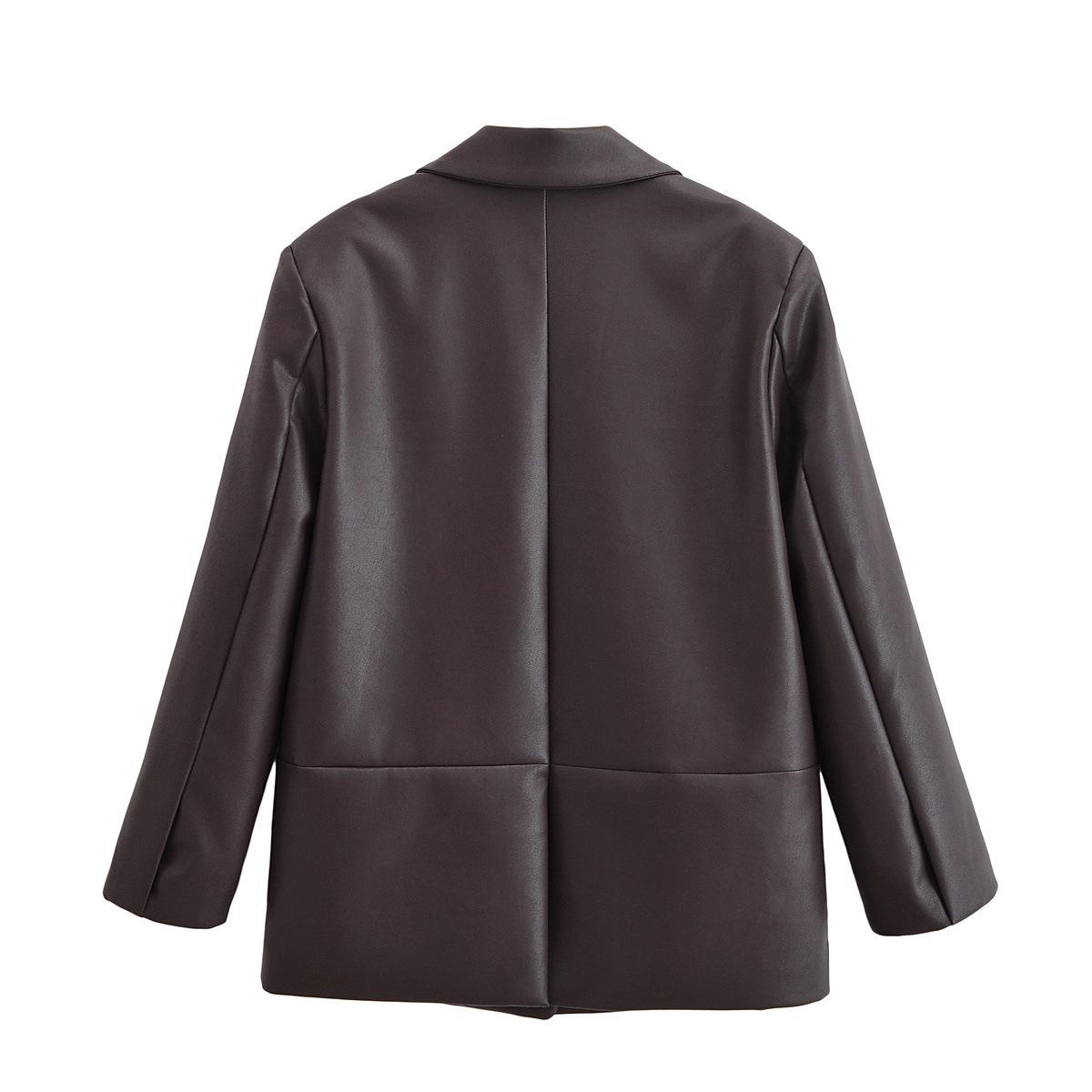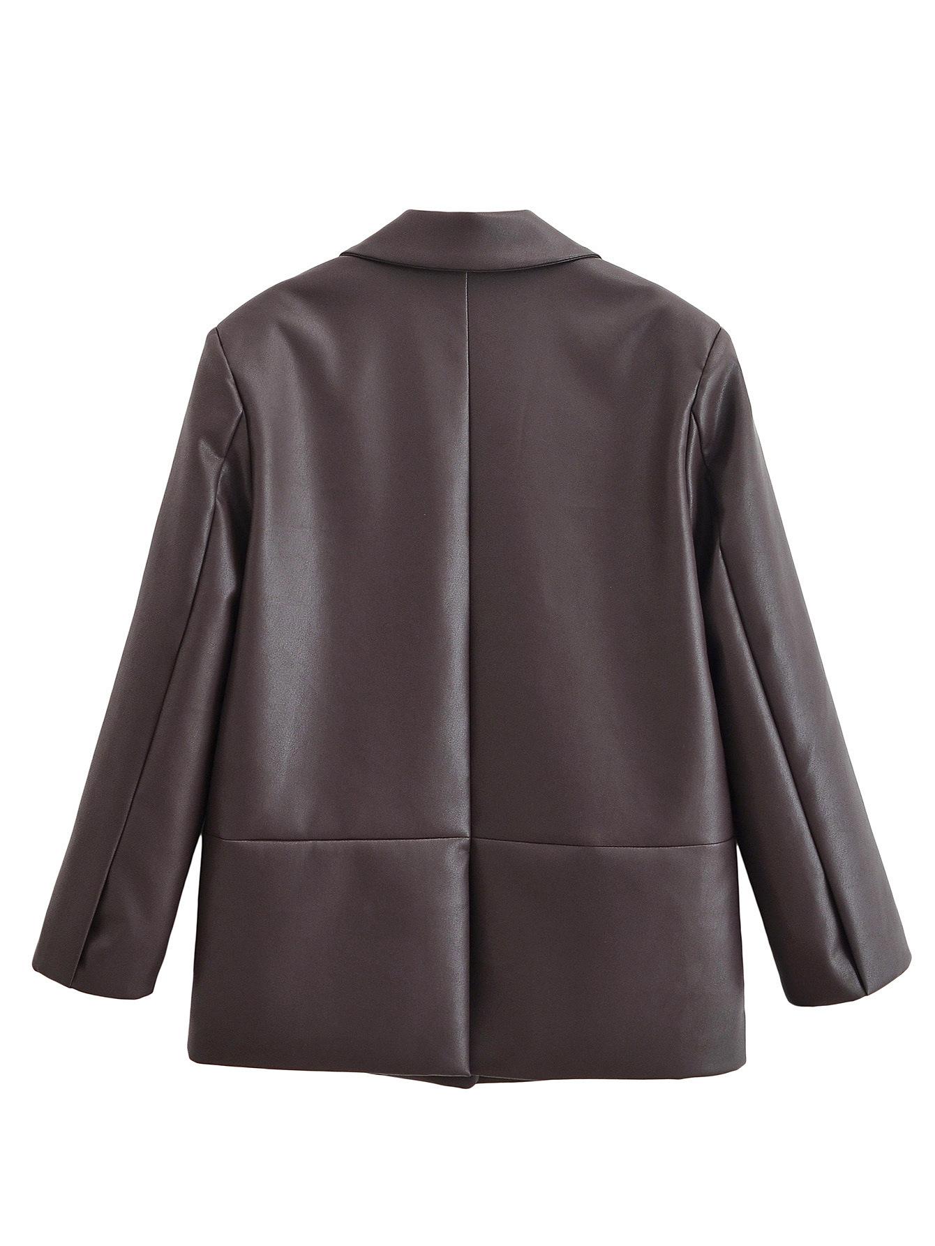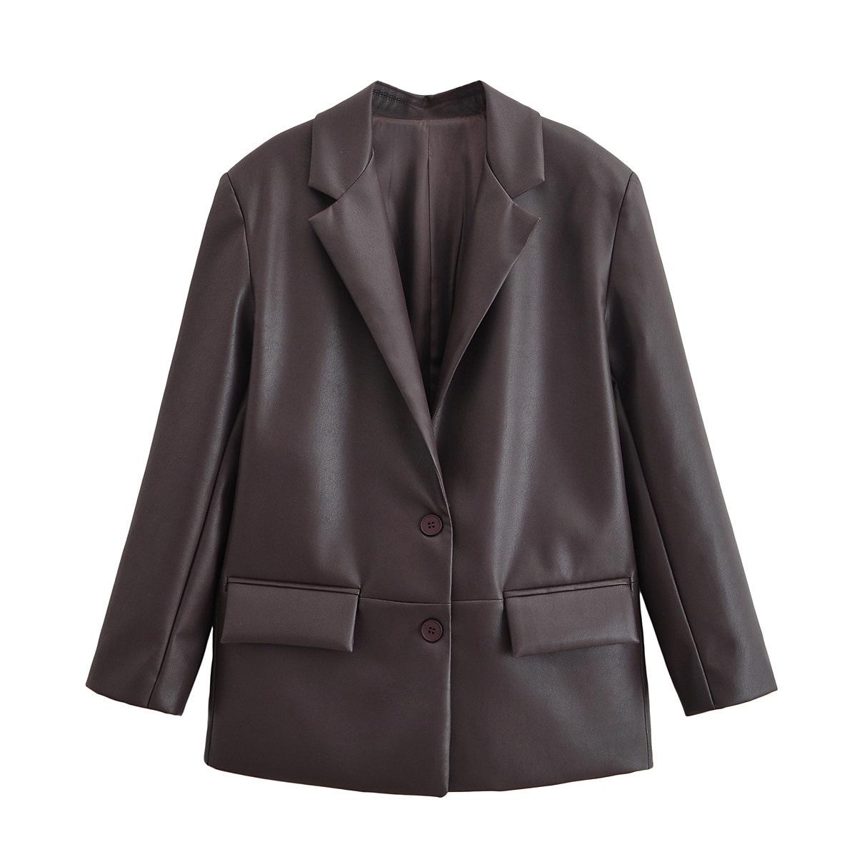 Traje de Chaqueta de Cuero Europeo y Americano Transfronterizo Abrigo Mujer 2025 Principios de Otoño Nuevo Abrigo Exterior Vintage Suelto Casual Temperamento Top