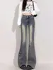 Jeans Acampanados Micro de Cintura Alta con Abertura para Mujer Primavera/Verano 2025 Cuerpo Forma de Pera Talla Grande Chica Gordita Adelgazantes Elásticos
