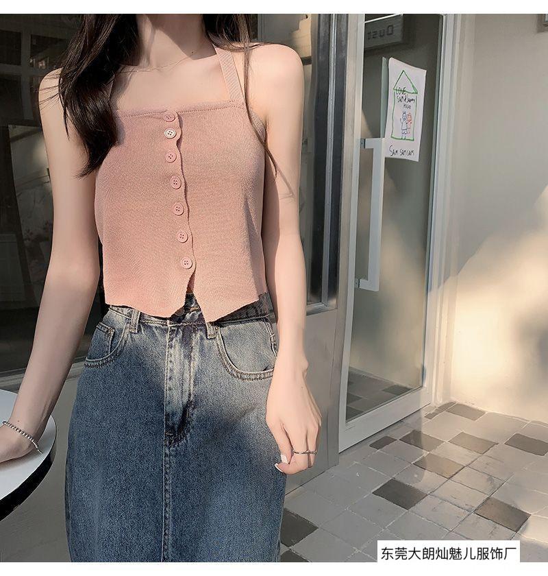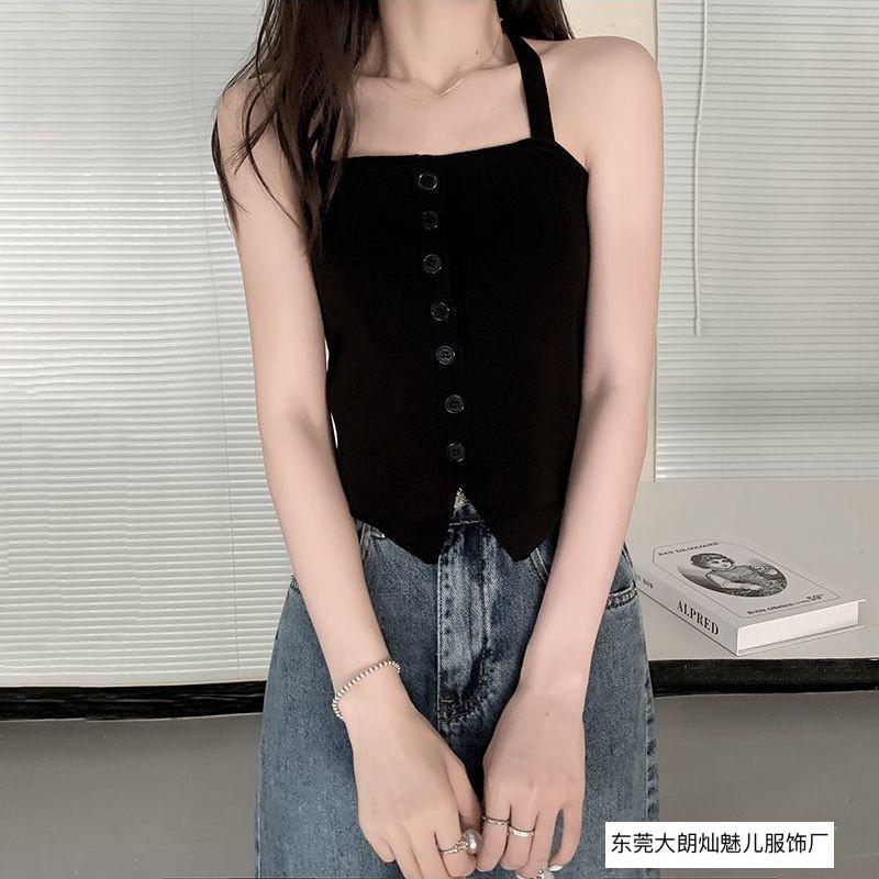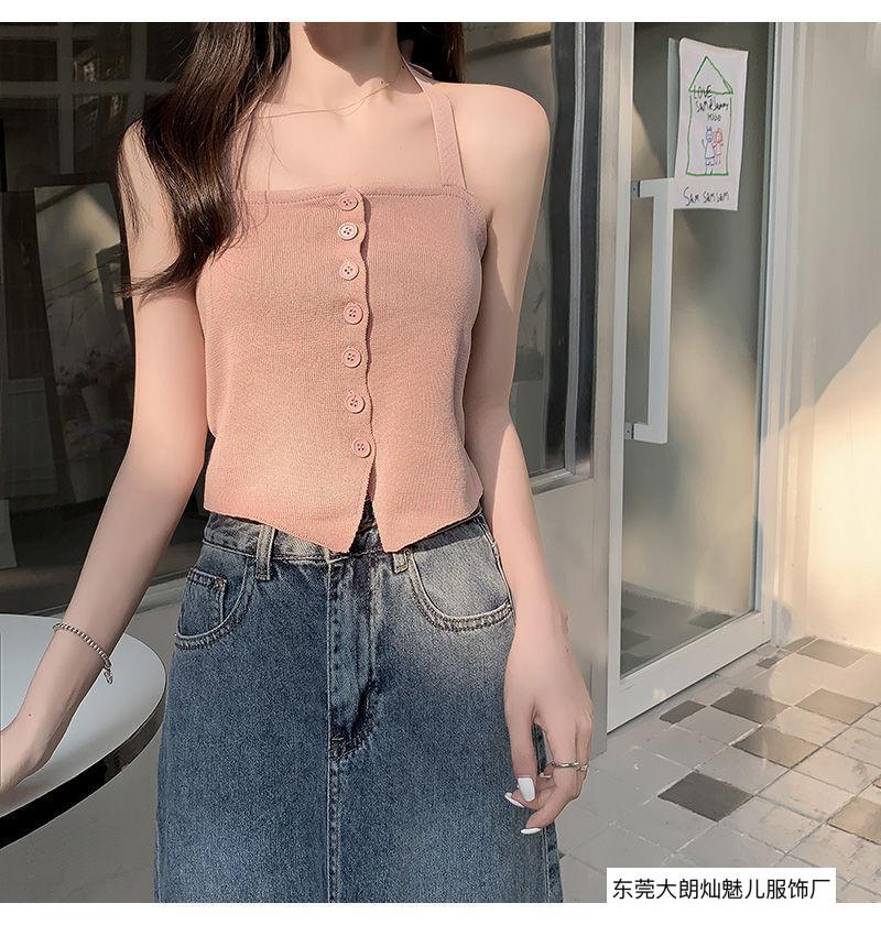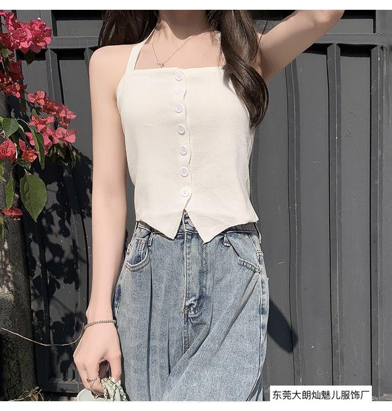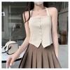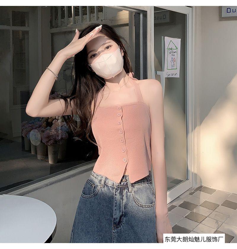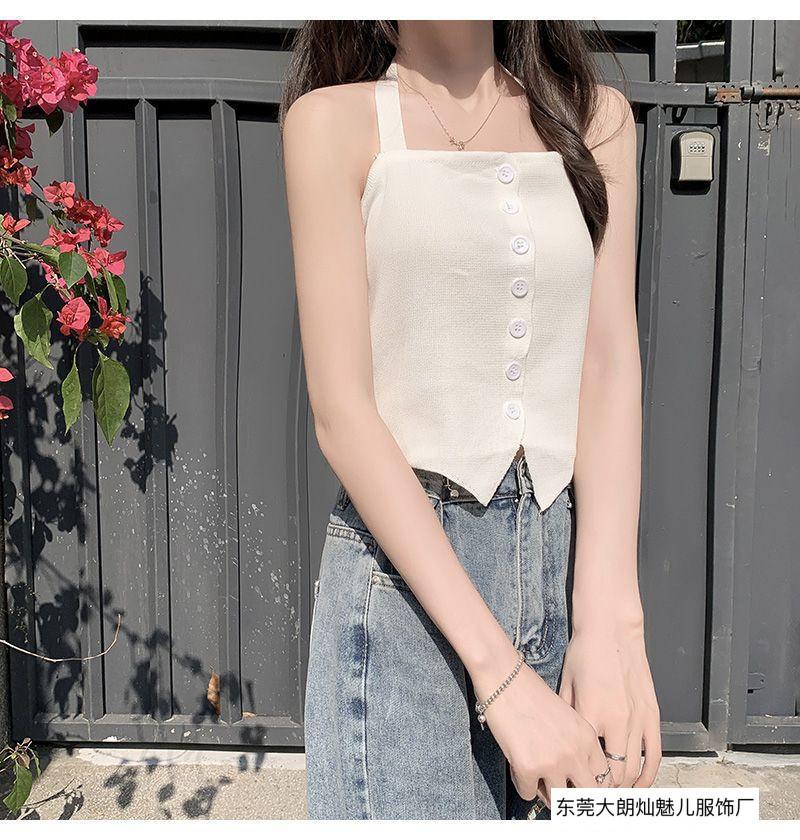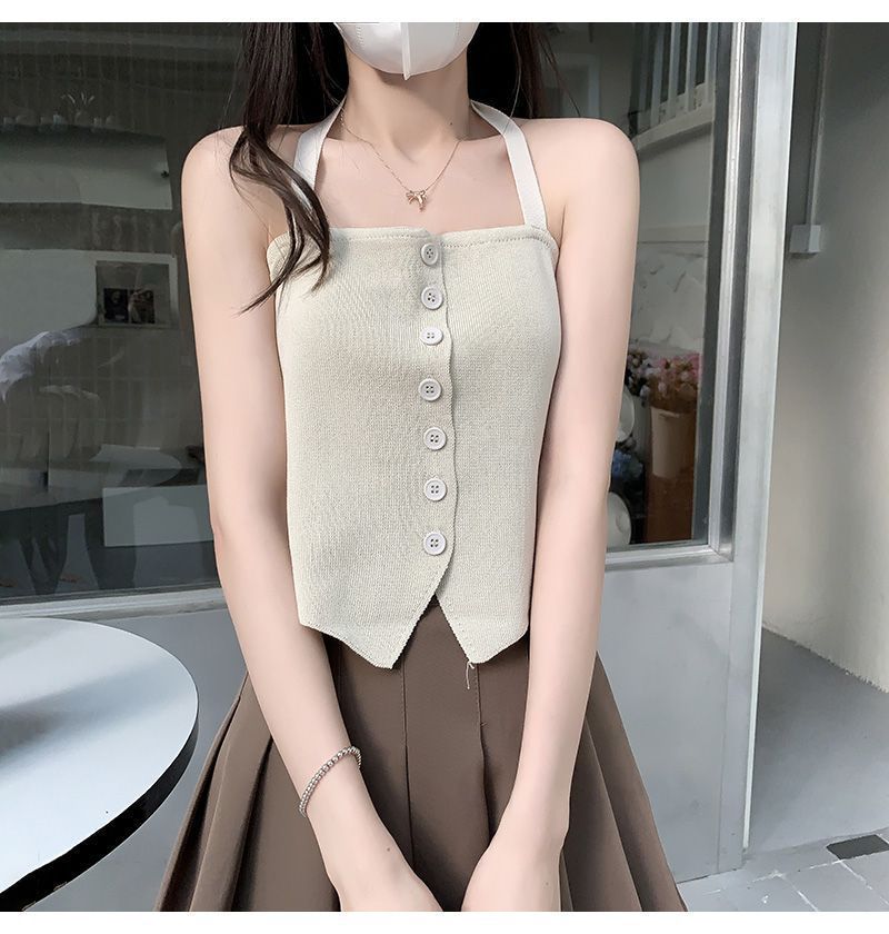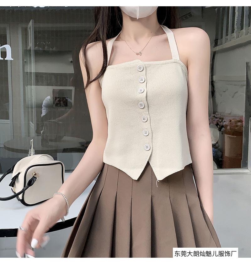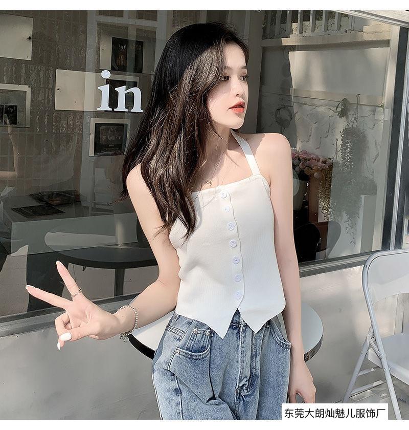 Top Irregular de Color Sólido Estilo Sexy para Mujer 2023 Verano Nuevo Petite Sin Mangas Cuello Halter Camisola