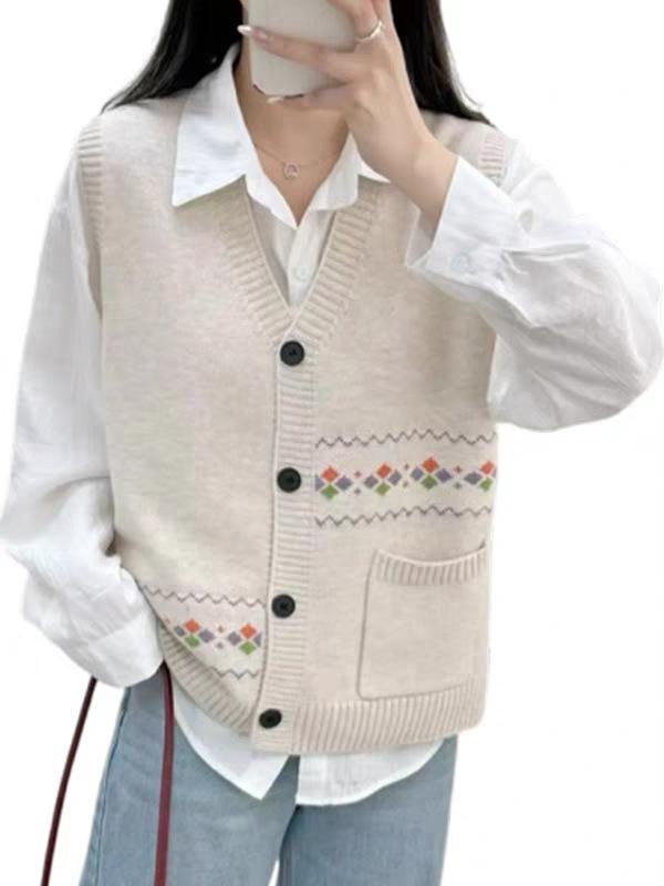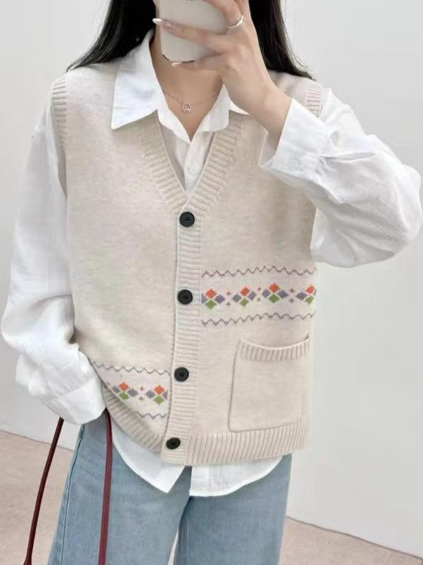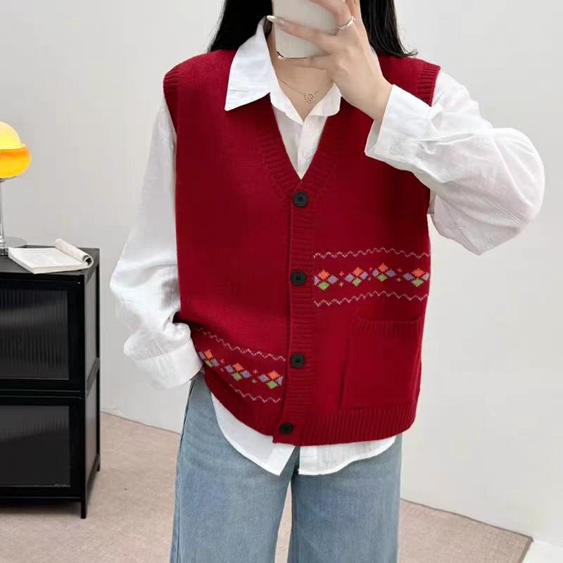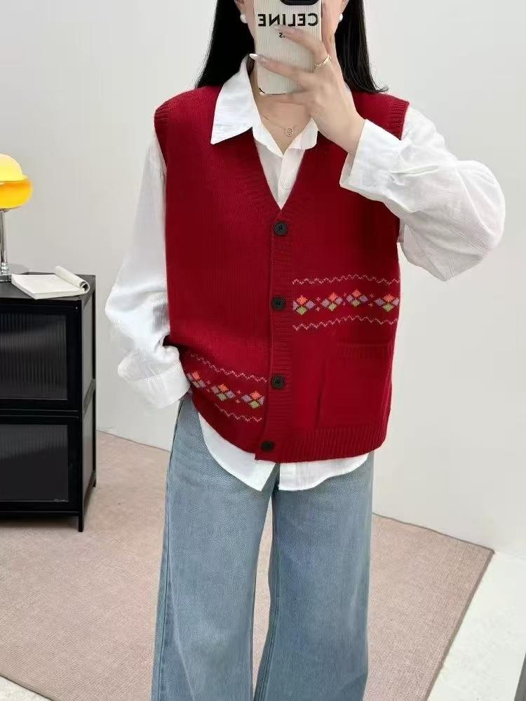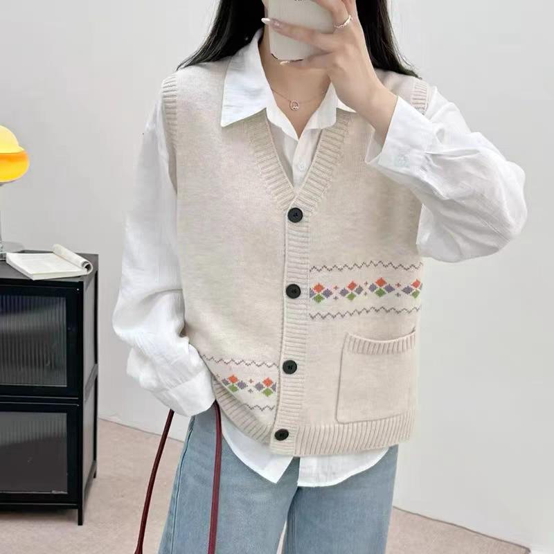 Chaleco Cárdigan de Punto para Mujer Holgado Ropa Exterior Sentido de Alta Gama 2025 Nueva Moda Estilo Extranjero Suéter en Capas Chaleco sin Mangas