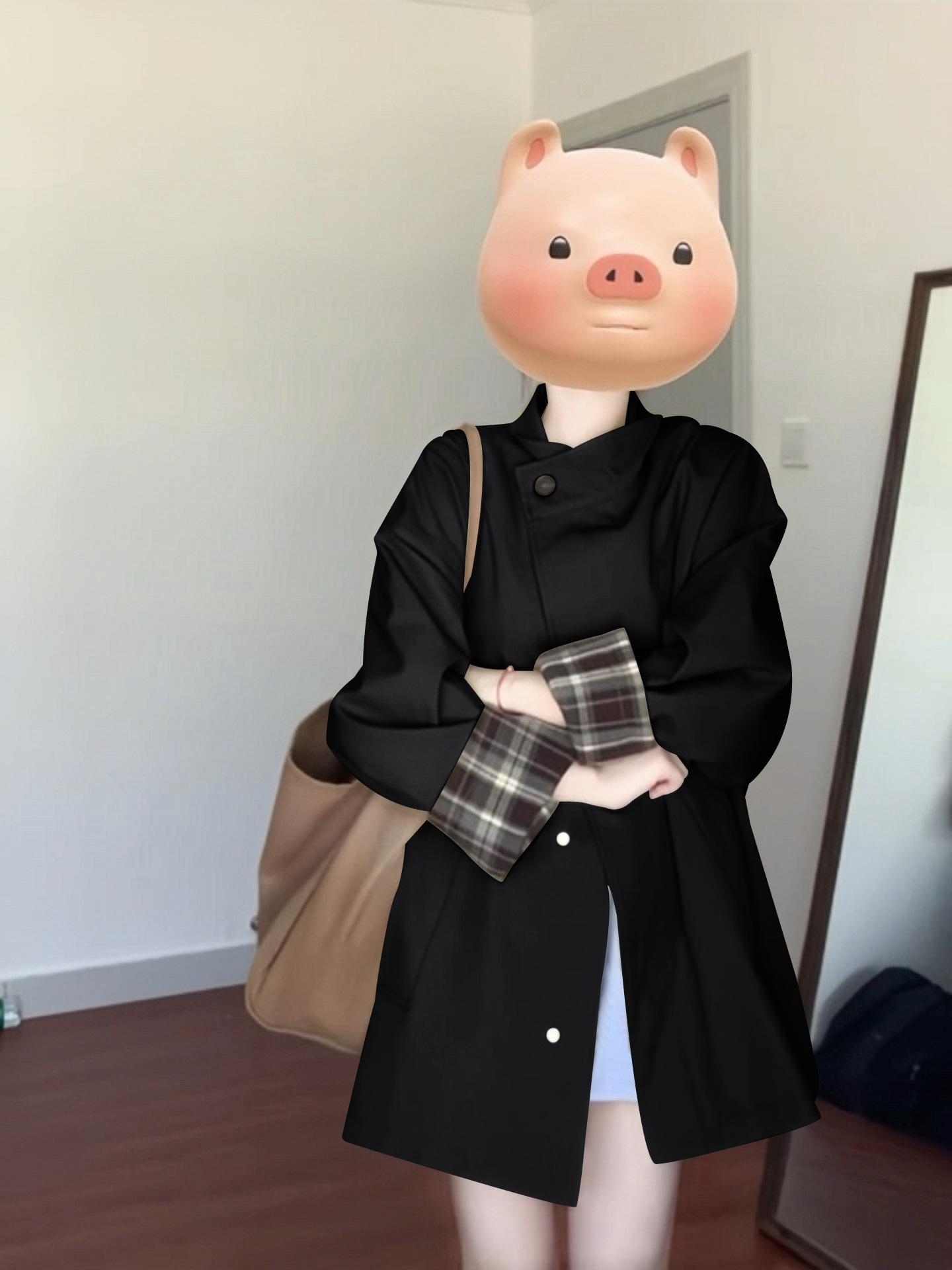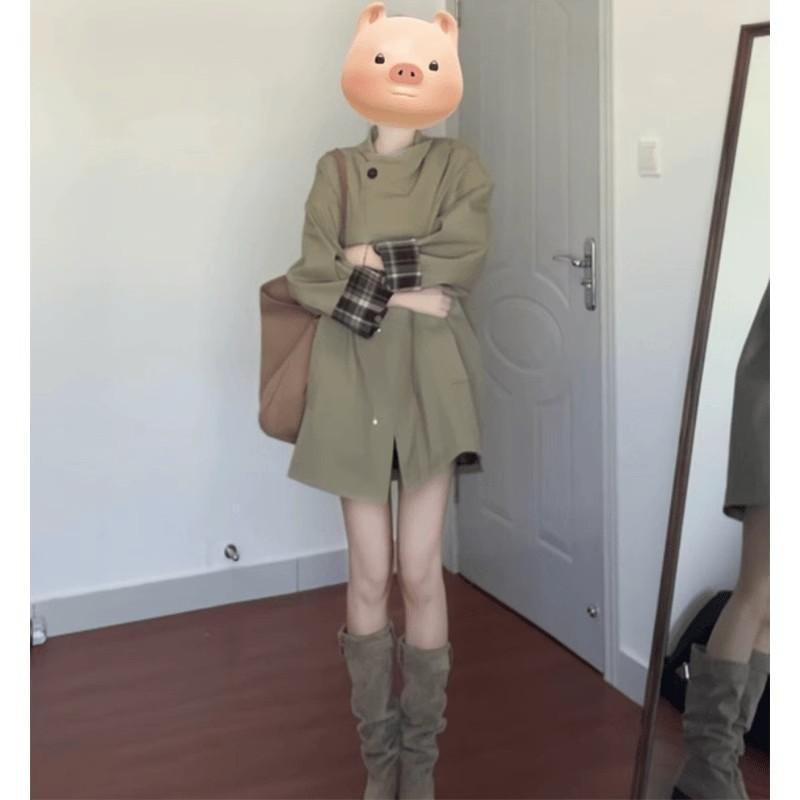 Gabardina clásica de bloques de color de alta gama para mujer, primavera y otoño, holgada, adelgazante, petite, estilo británico, ropa de trabajo, casual, abrigo adelgazante