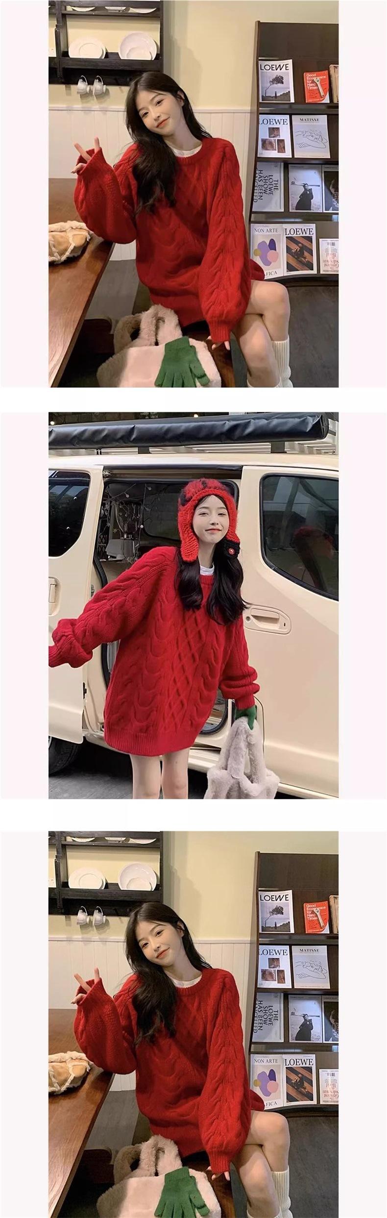 Suéter rojo mujer 2025 otoño/invierno ropa exterior holgado suave ceroso estilo perezoso capa base gruesa ropa interior largo medio
