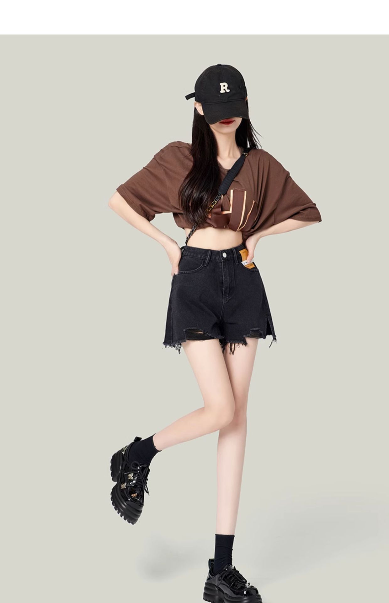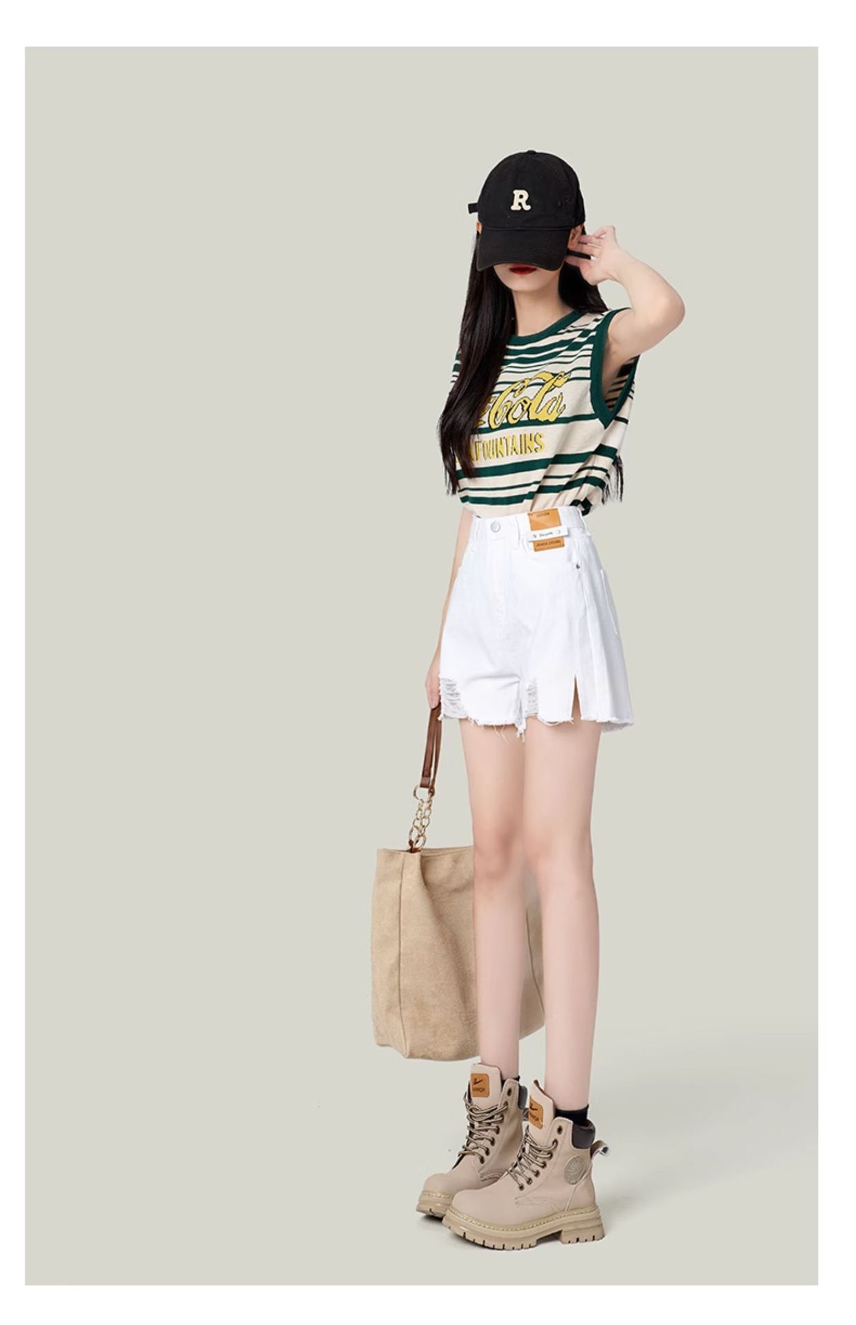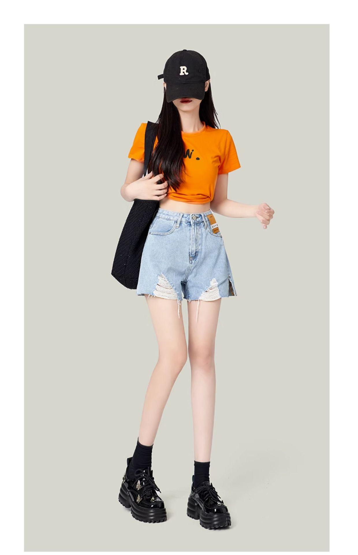 Shorts de mezclilla de cintura alta para mujer verano nuevo abertura agujero chicas sexys ropa ajustada pantalones calientes una generación de suministro