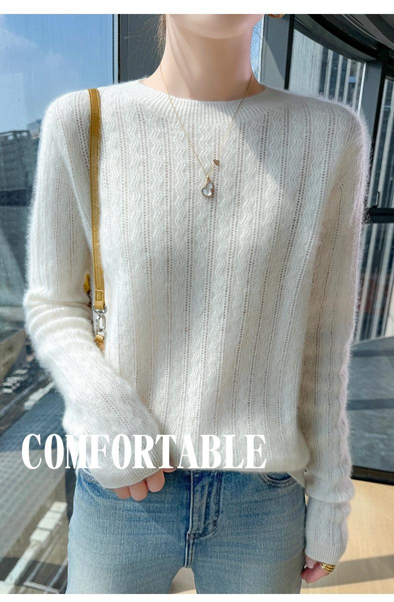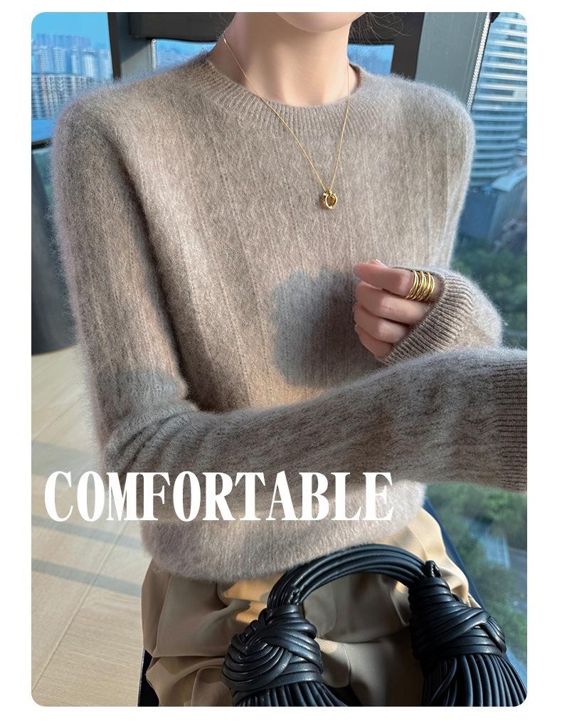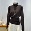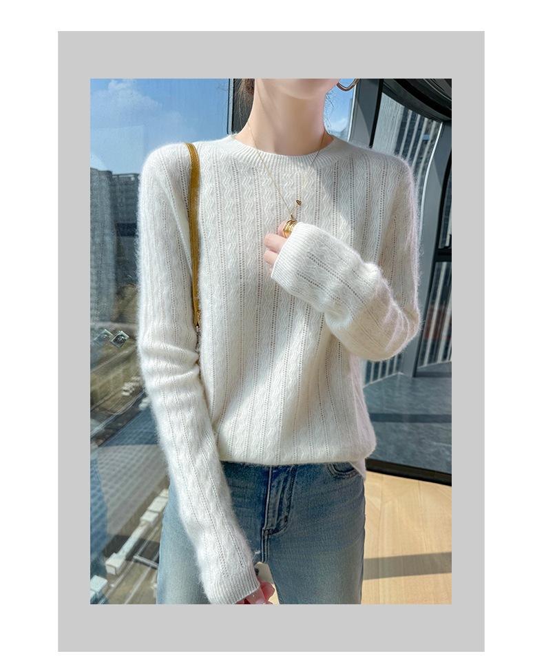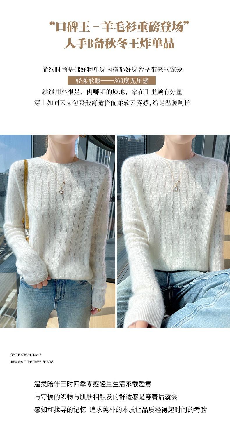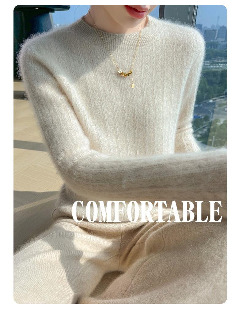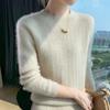 Suéter de lana para mujer con sentido del diseño francés 100% lana pura cuello semi-alto suéter base tejido suelto interior suéter tejido de cable