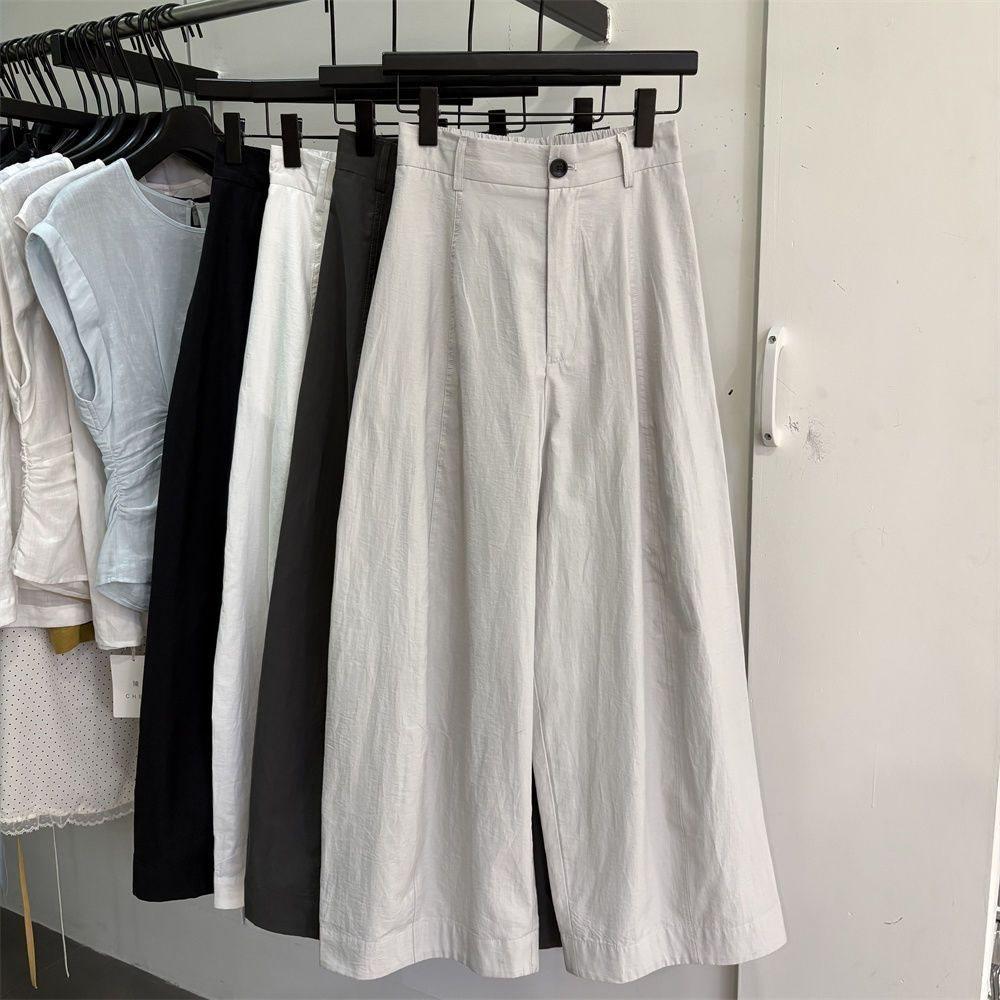 Pantalones Casuales Mujer 2025 Primavera/Verano Estilo Coreano Nuevo Cintura Alta Adelgazantes Versátiles Sueltos Color Sólido Pierna Recta Pierna Ancha Pantalones Largos