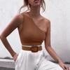 Nuevo Diseño Transfronterizo Europeo y Americano de Corte Slim Asimétrico con Tirante de Hombro Sexy Moda Adelgazante Top de Tirantes de Color Sólido