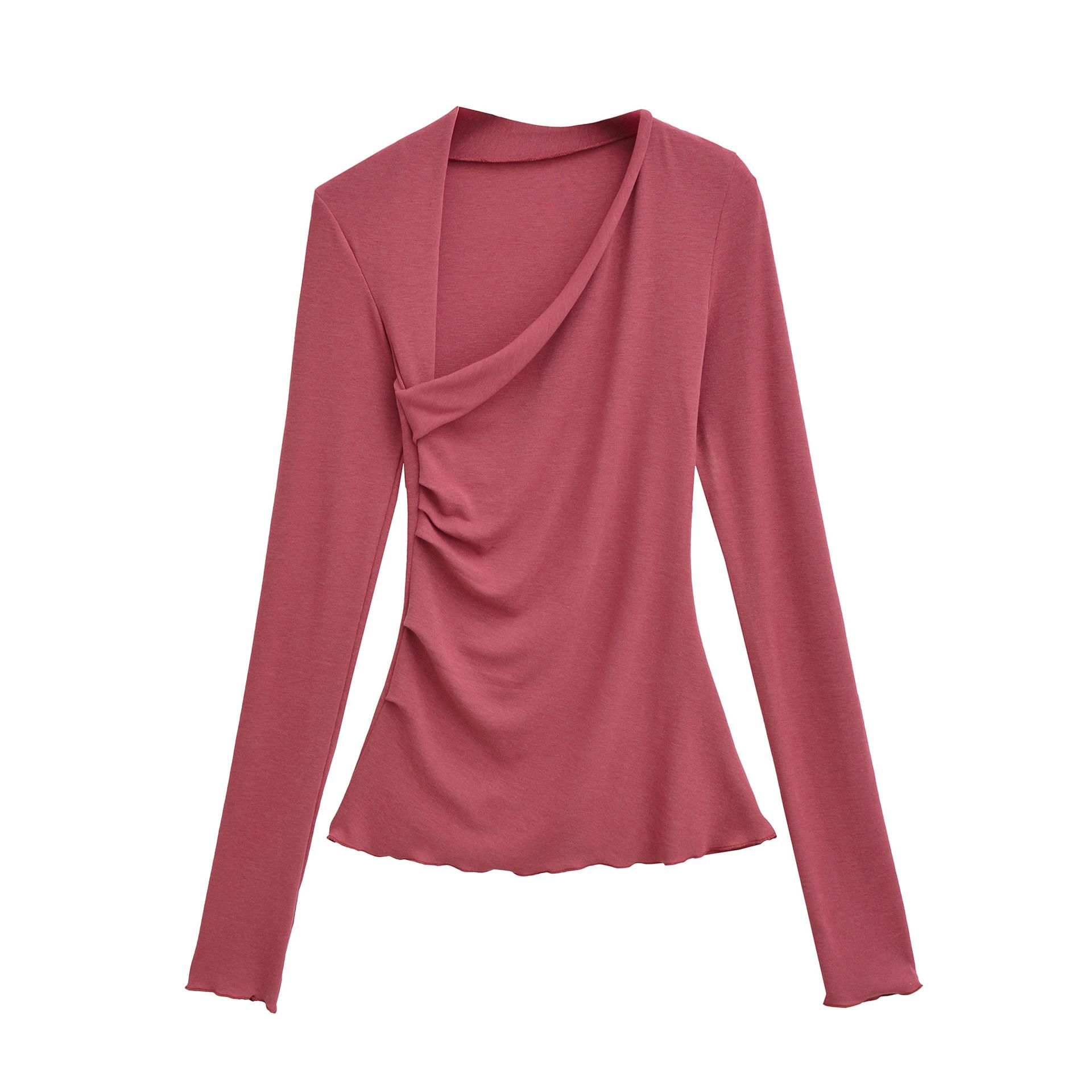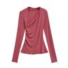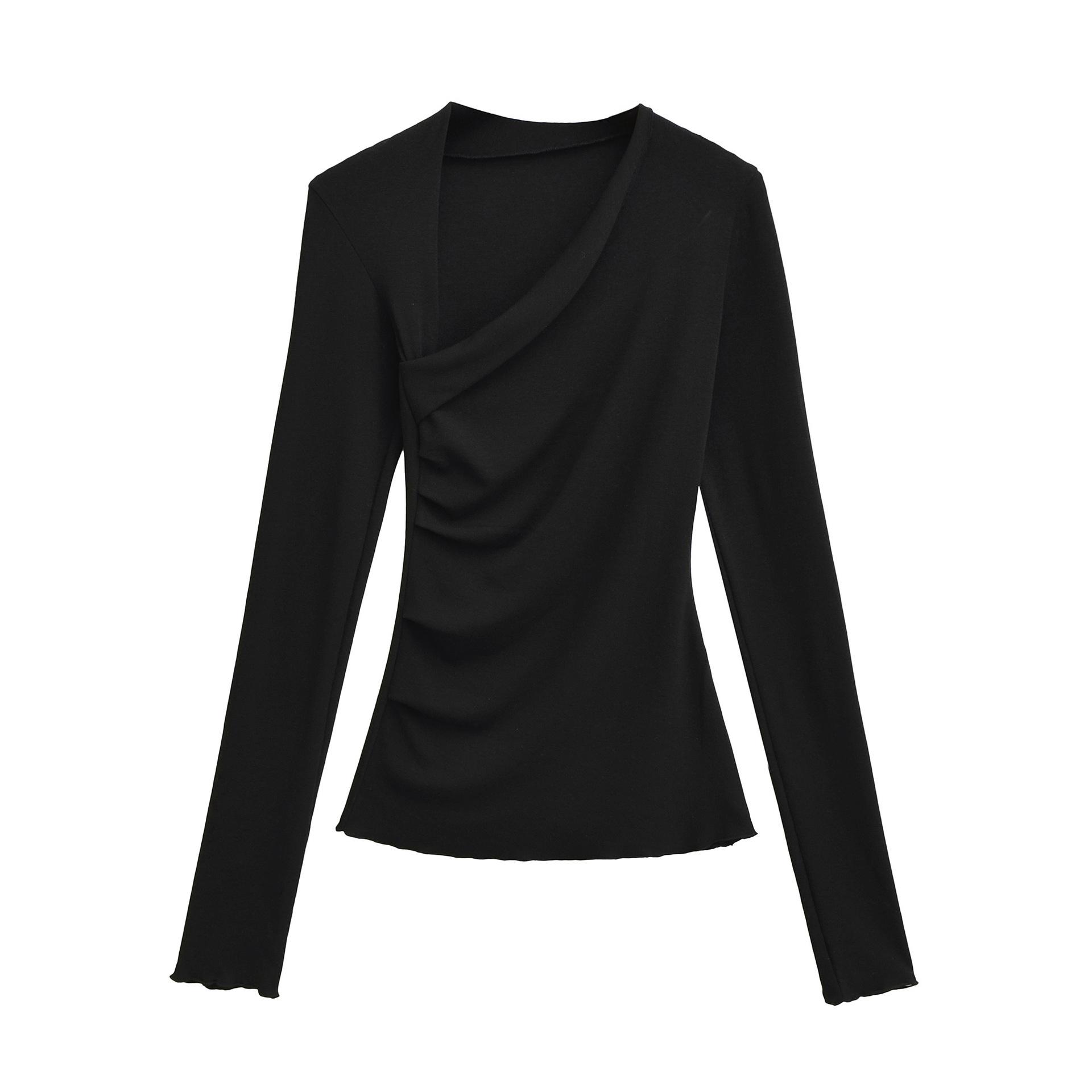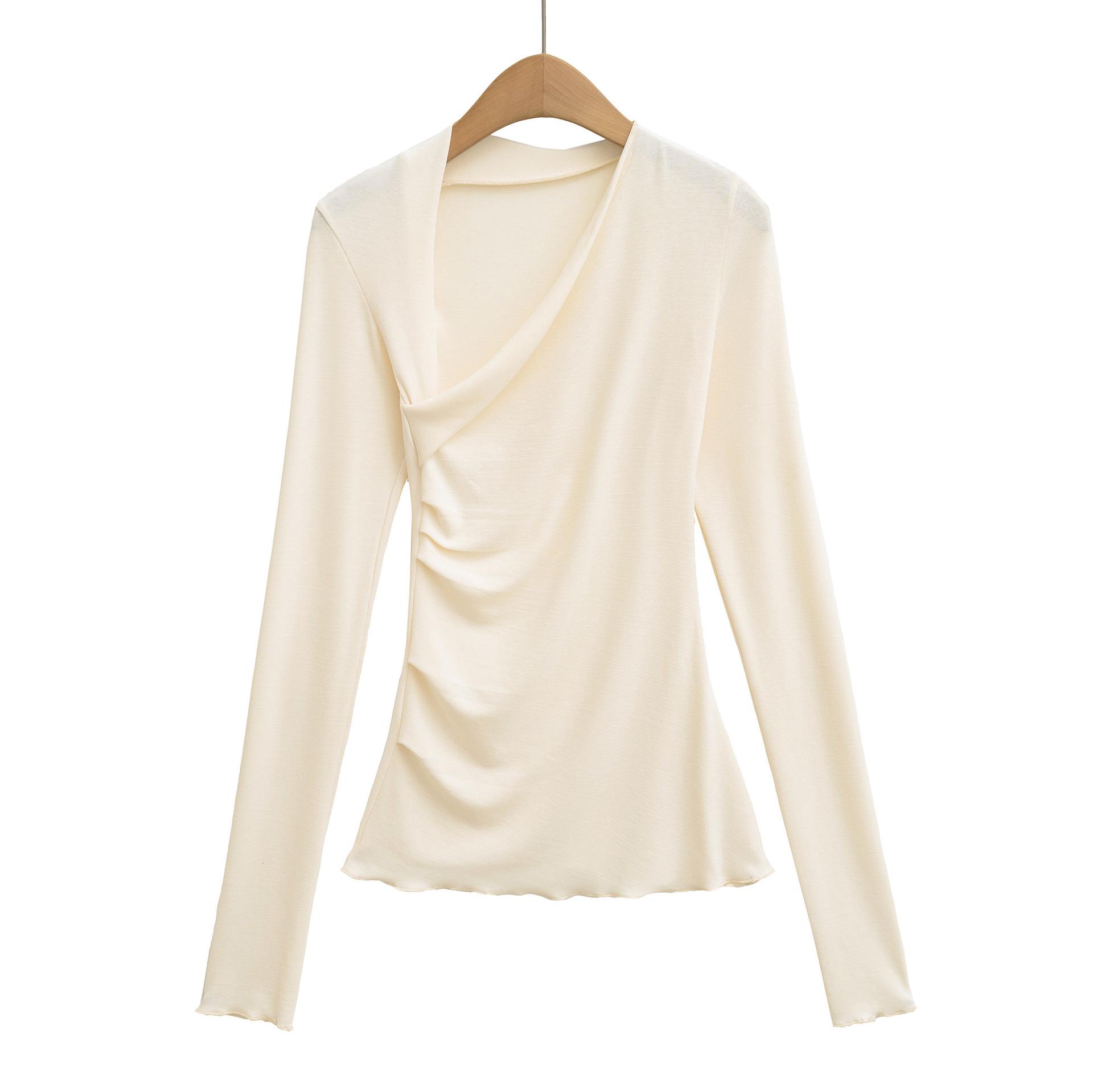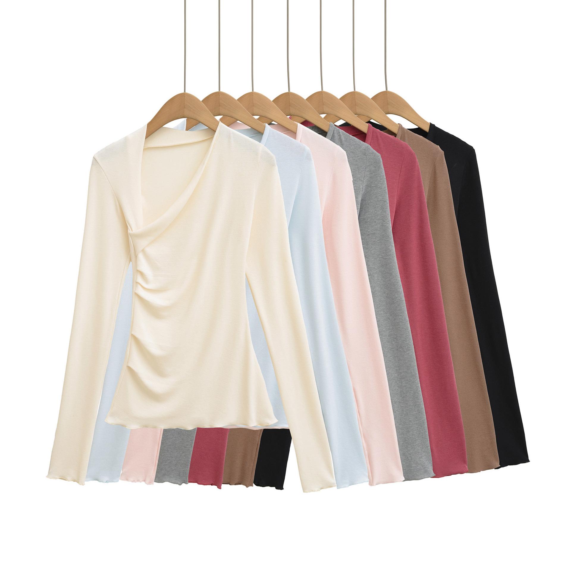 Camiseta Irregular de un Hombro y Manga Larga para Mujer Otoño Nueva Adelgazante Capa Base