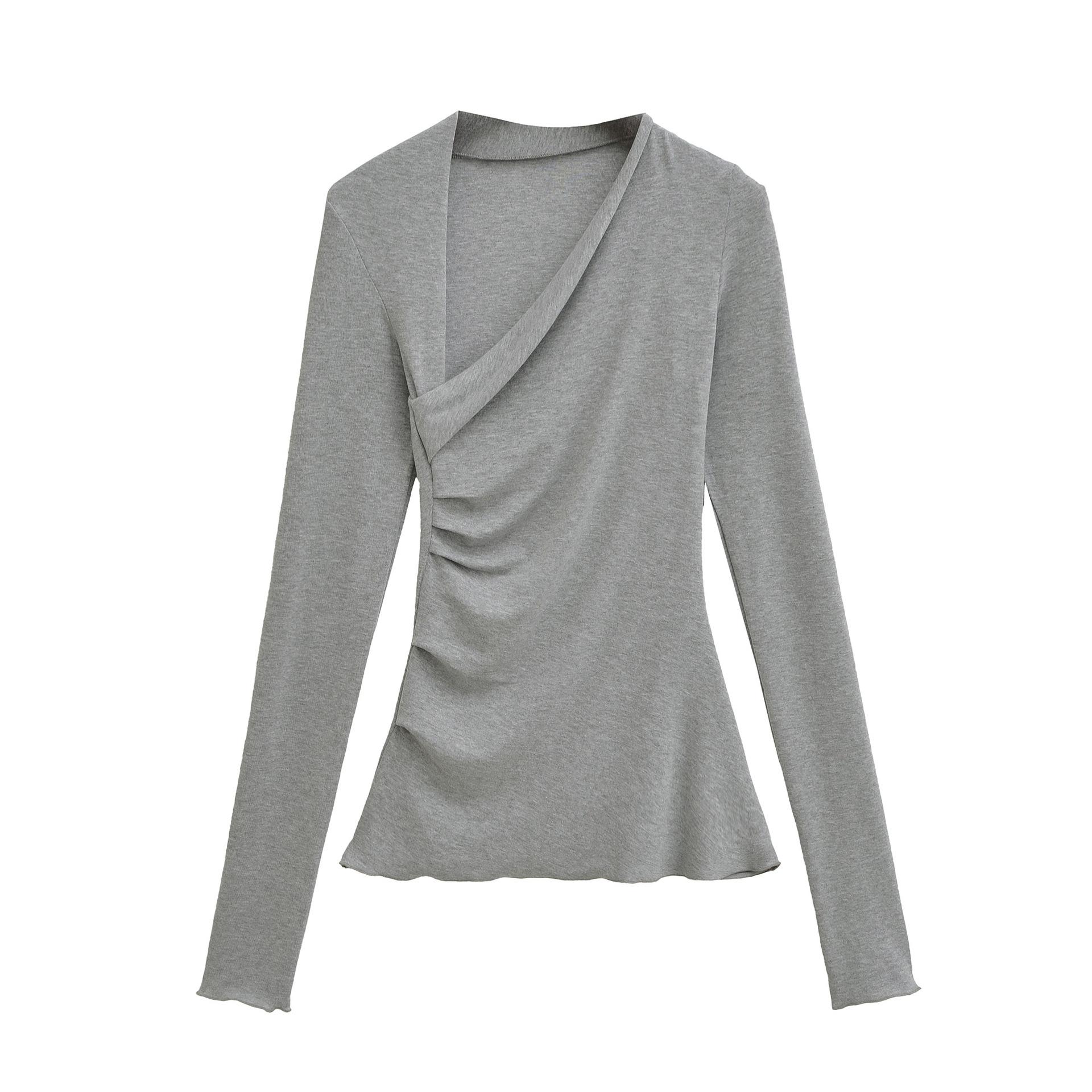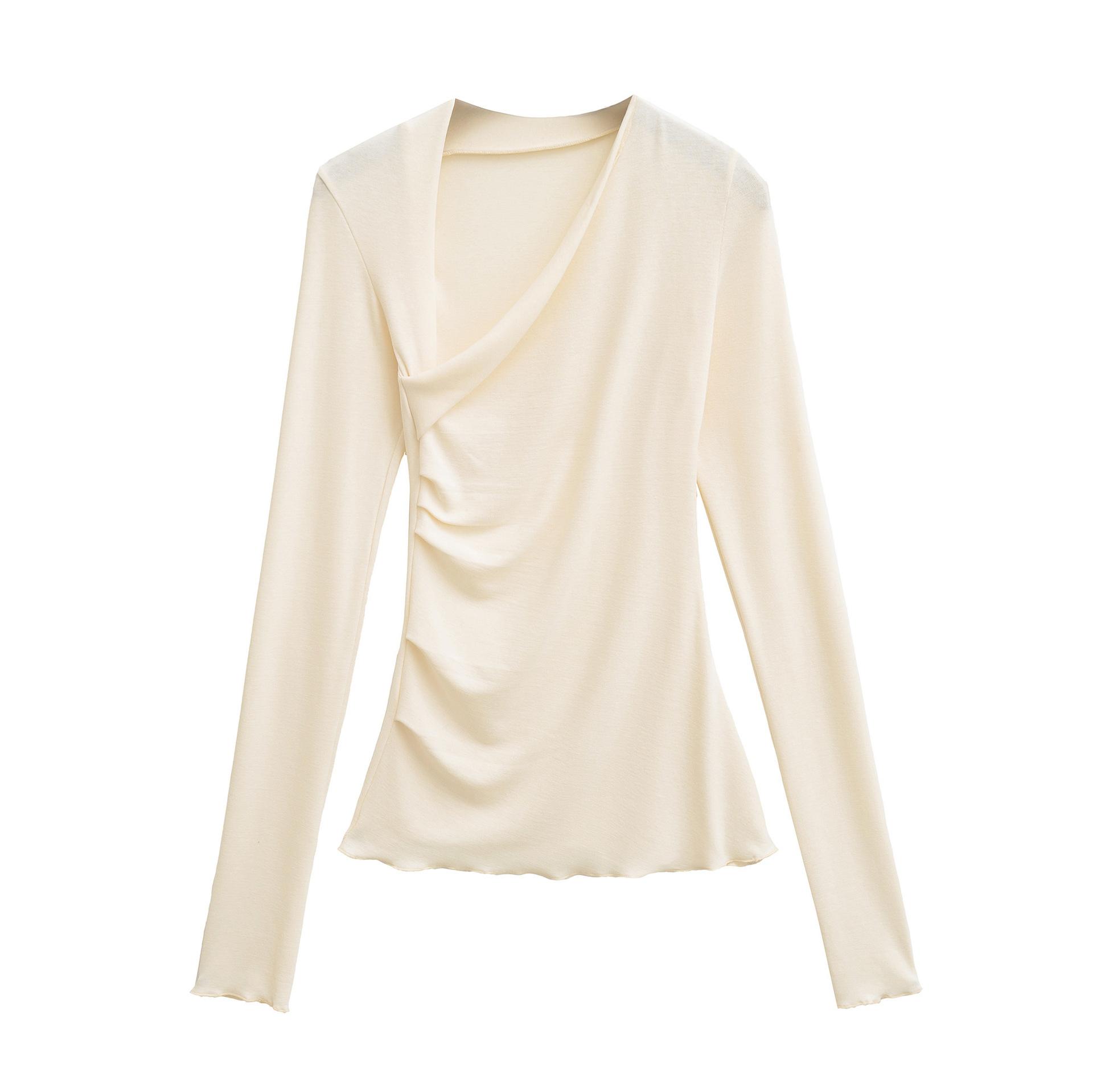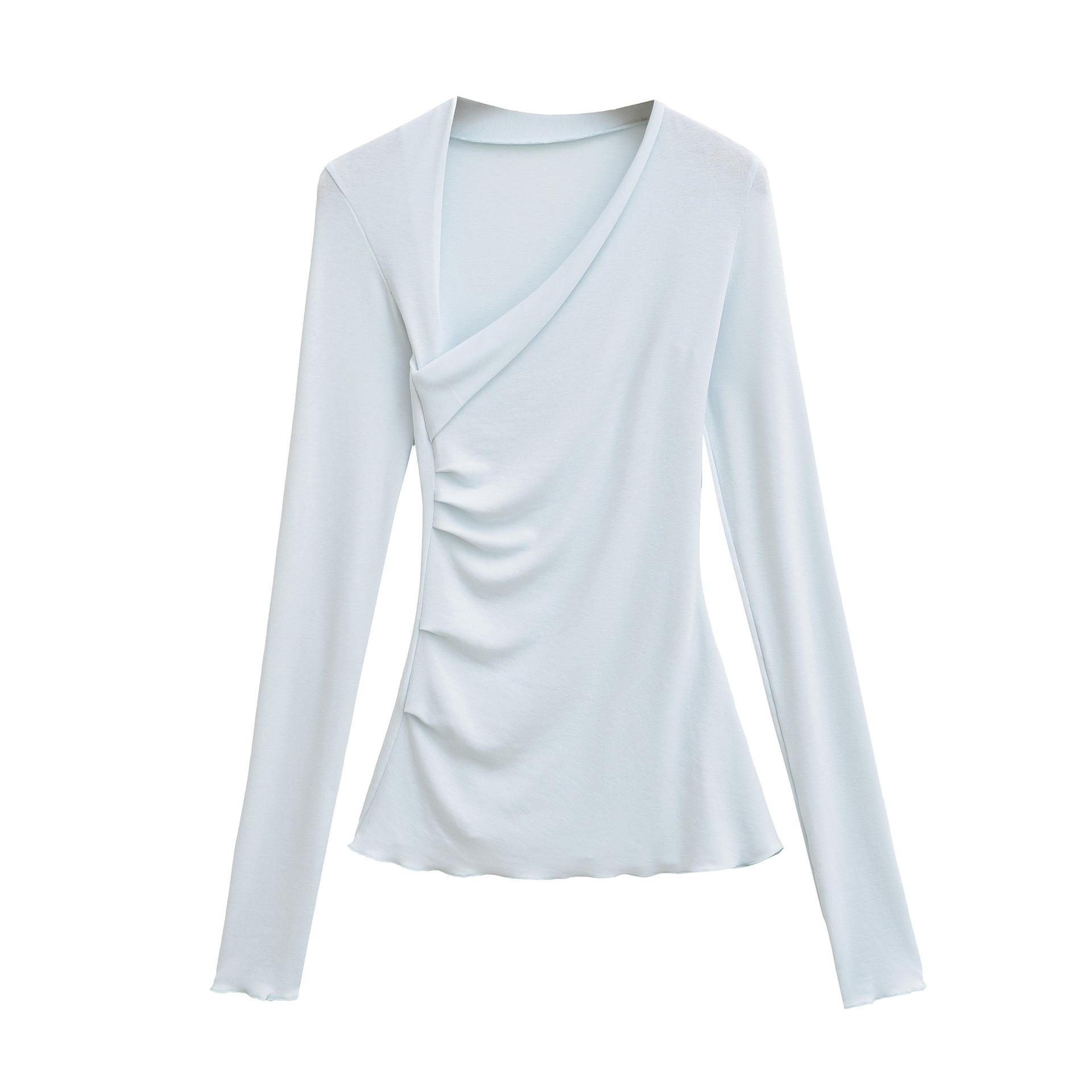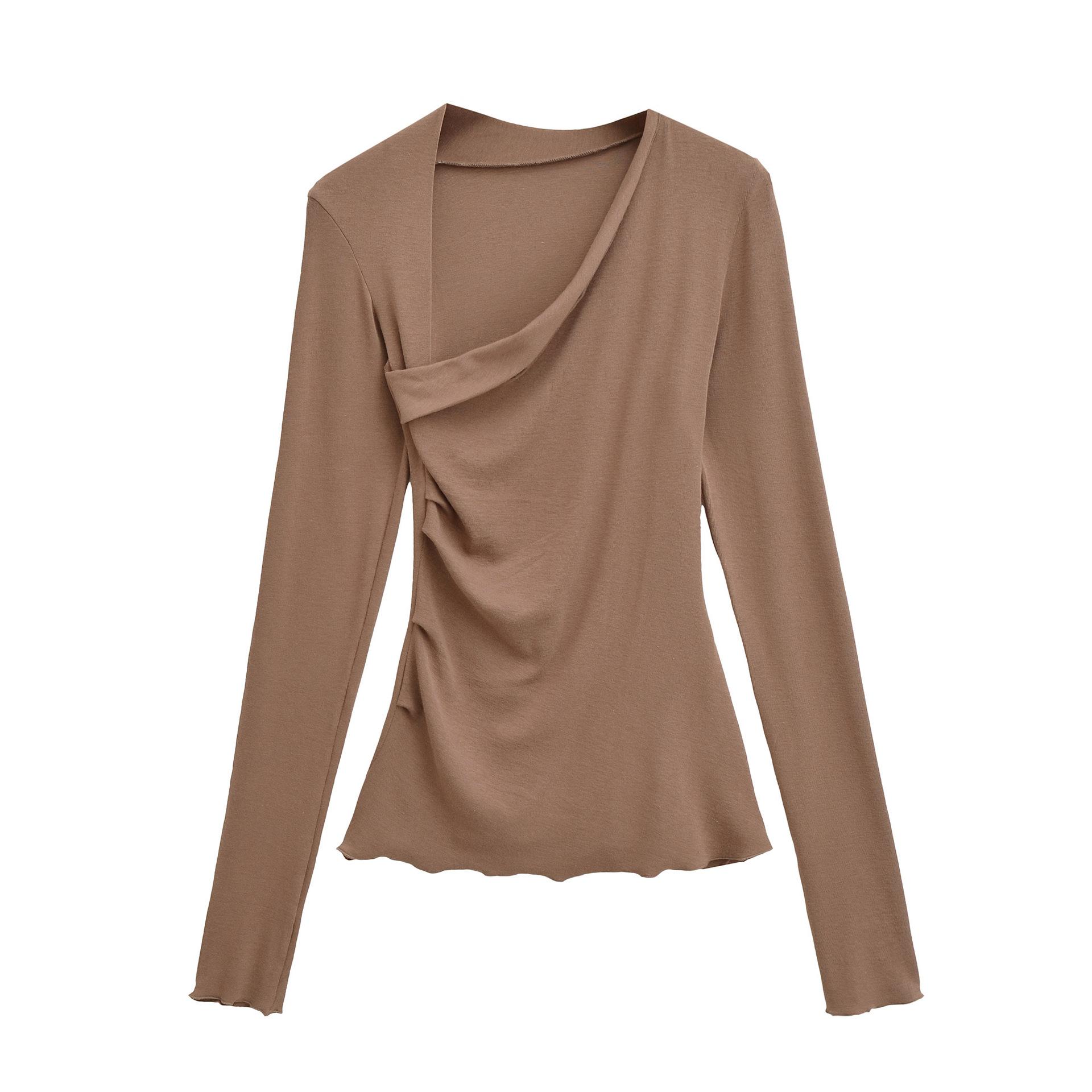 Camiseta Irregular de un Hombro y Manga Larga para Mujer Otoño Nueva Adelgazante Capa Base