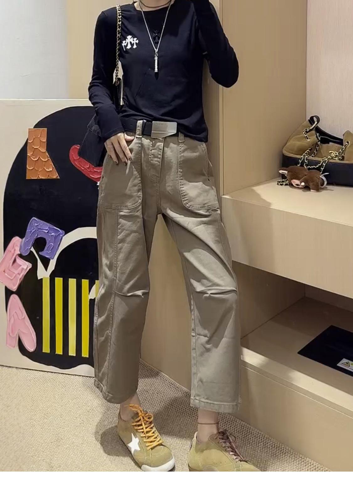 Jeans rectos de cintura alta para mujer 2025 otoño nuevo estilo talla grande a la moda versátiles adelgazantes nueve puntos casuales pantalones de trabajo