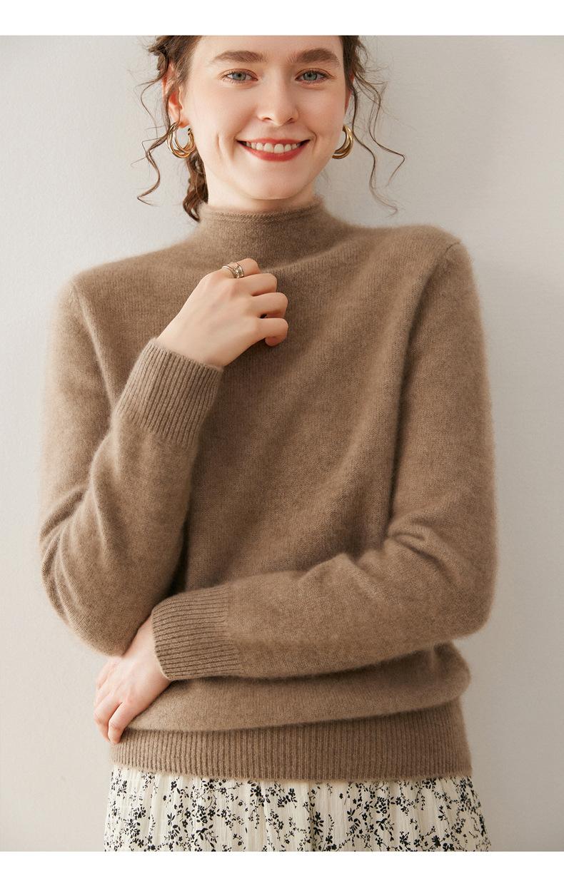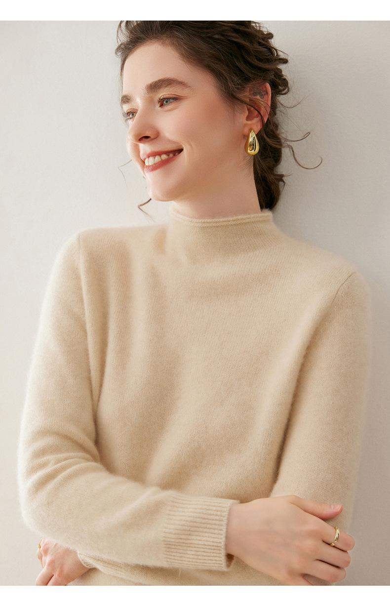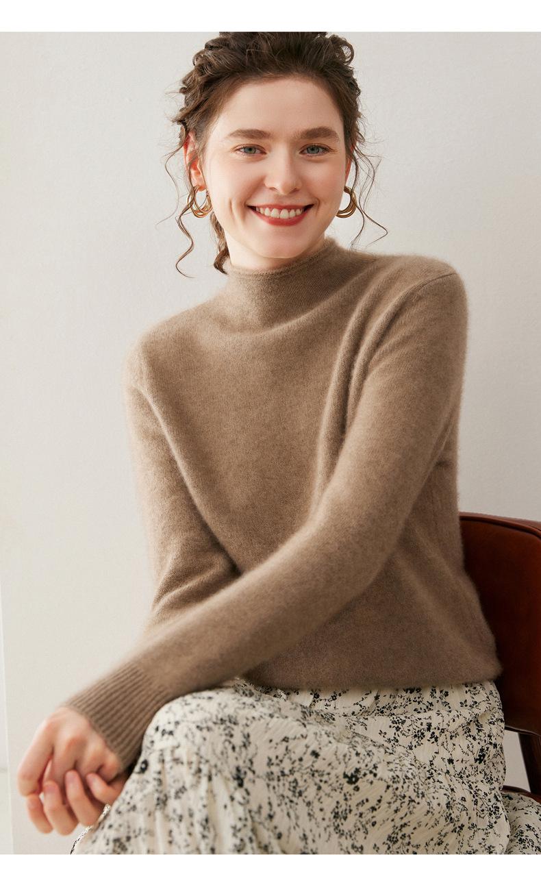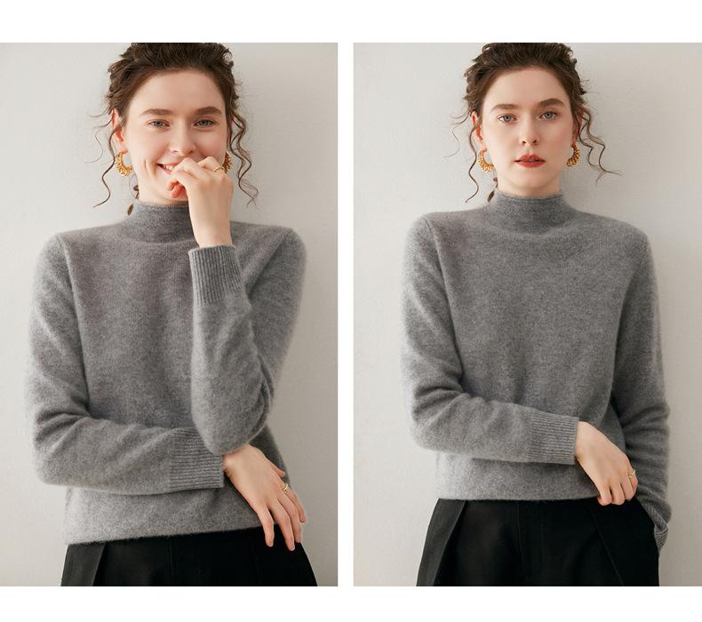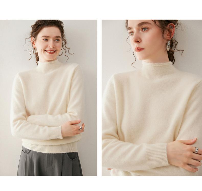 Nuevo Suéter de Cachemira para Mujer de Otoño e Invierno Espesado Cuello Alto Enrollado Medio Suéter Casual Holgado Talla Grande Camisa Base Tejida