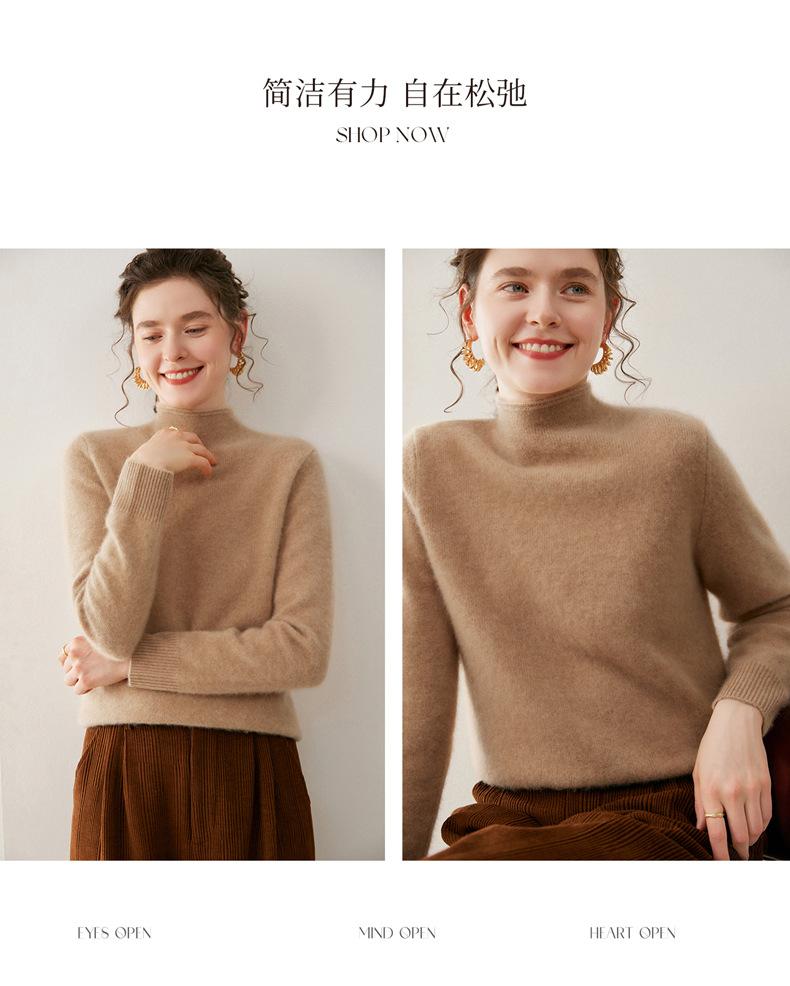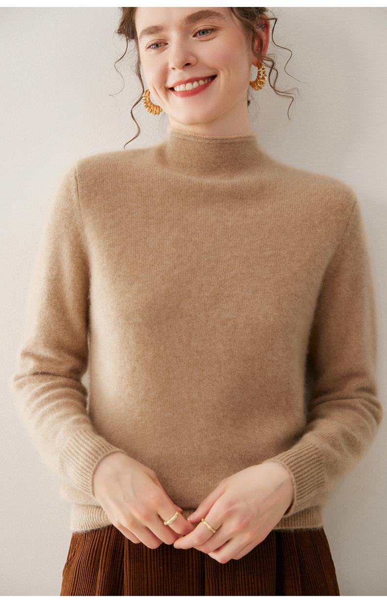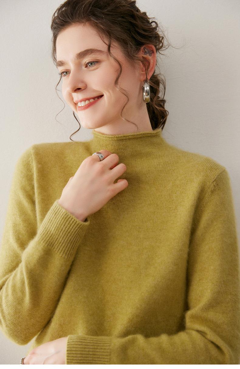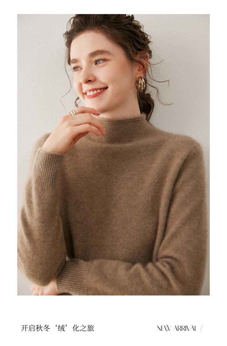Nuevo Suéter de Cachemira para Mujer de Otoño e Invierno Espesado Cuello Alto Enrollado Medio Suéter Casual Holgado Talla Grande Camisa Base Tejida