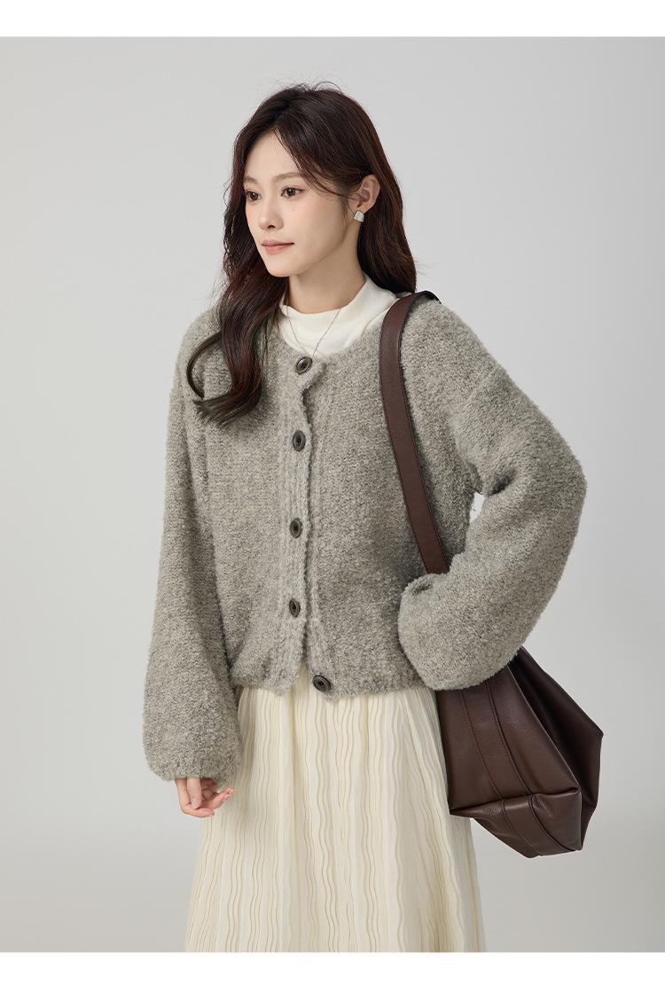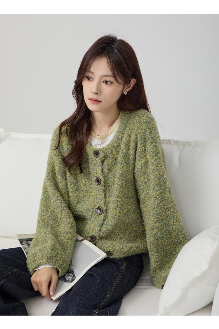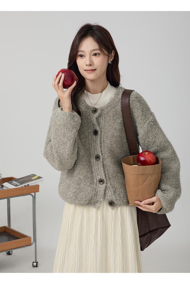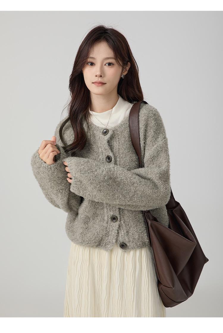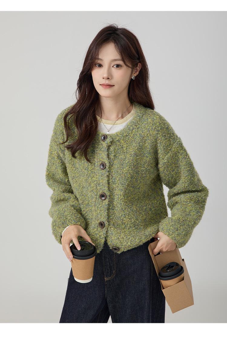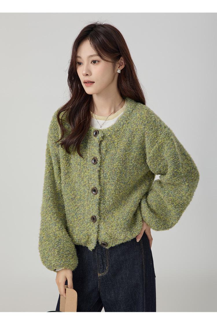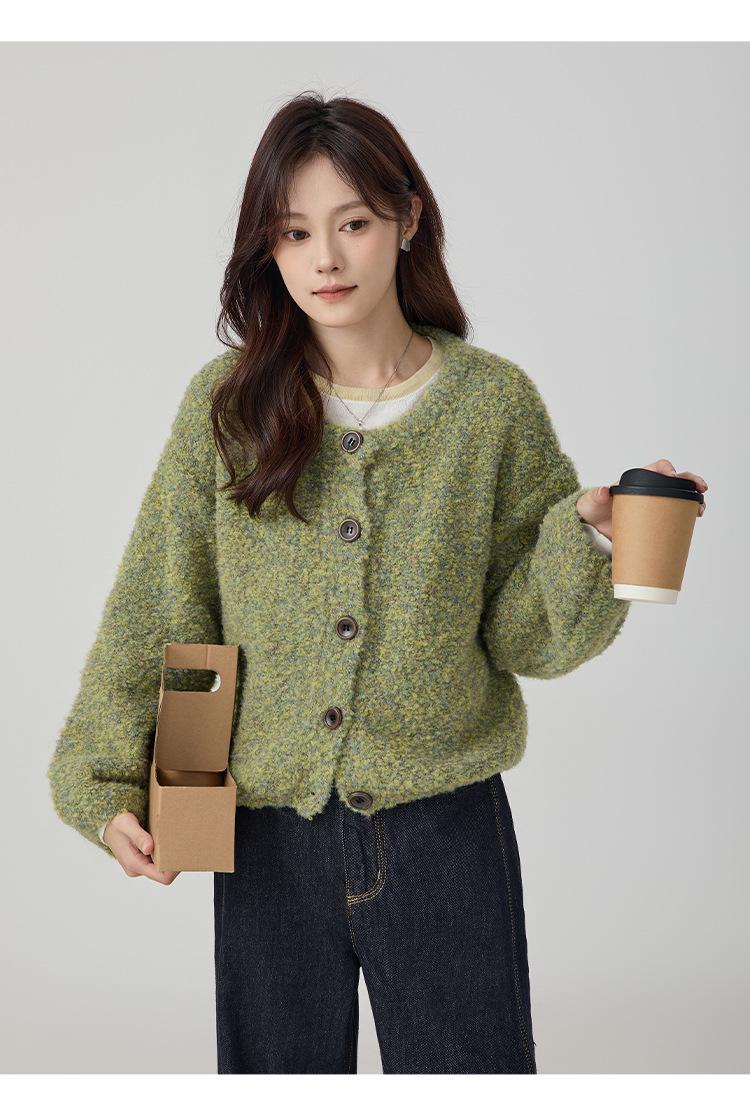 Sentido del Diseño Nicho Adelgazante Otoño Invierno Estilo Holgado Perezoso Cuello Redondo Tejido Cárdigan Corto Top Abrigo Mujer Trendy