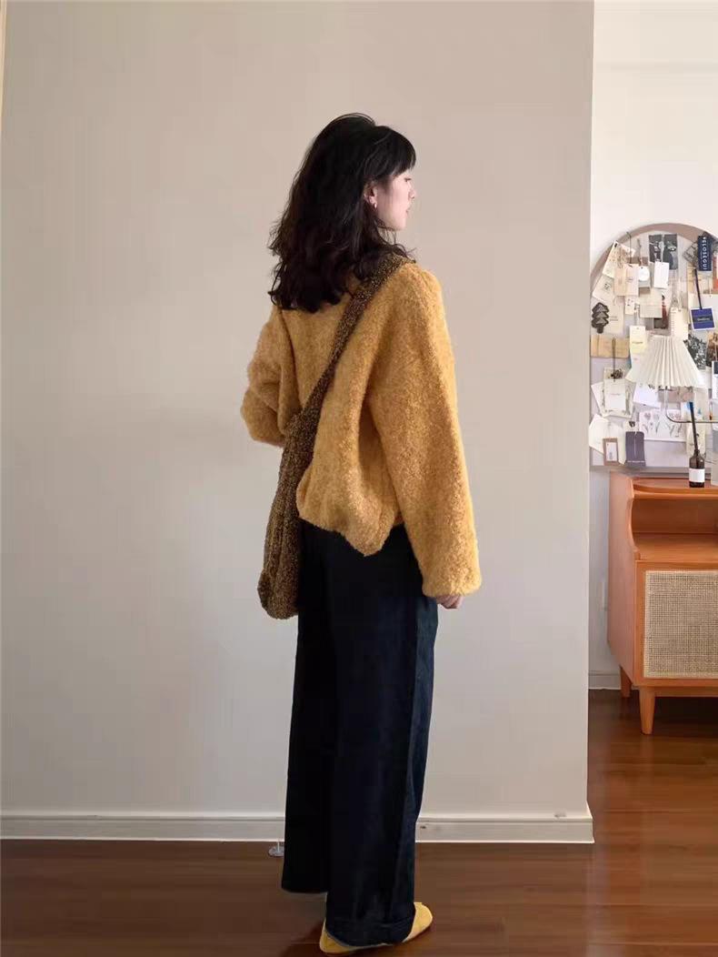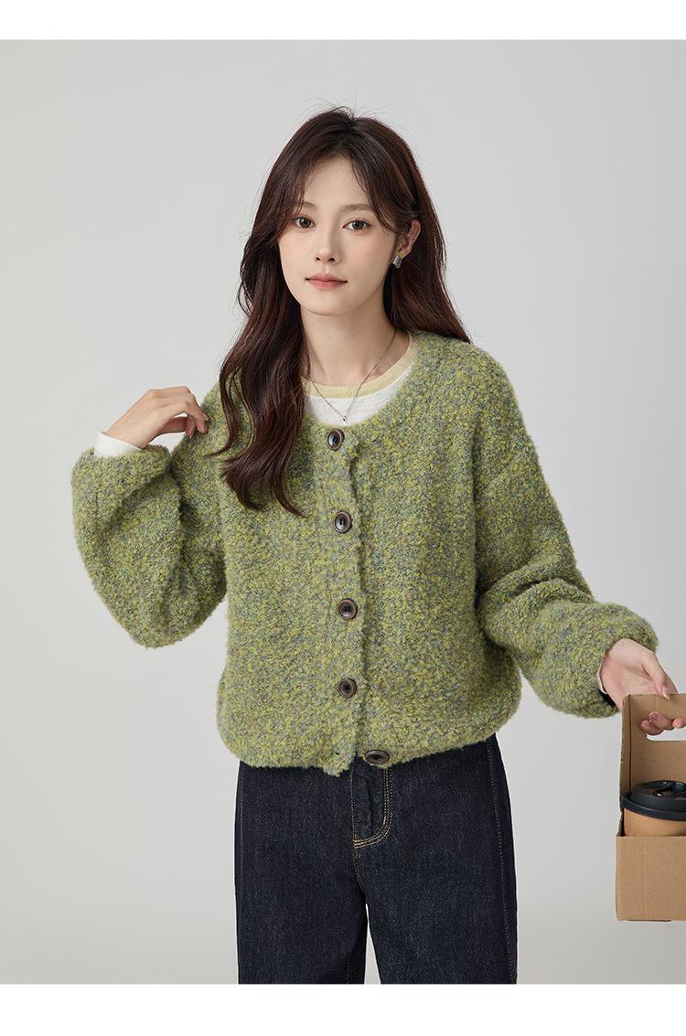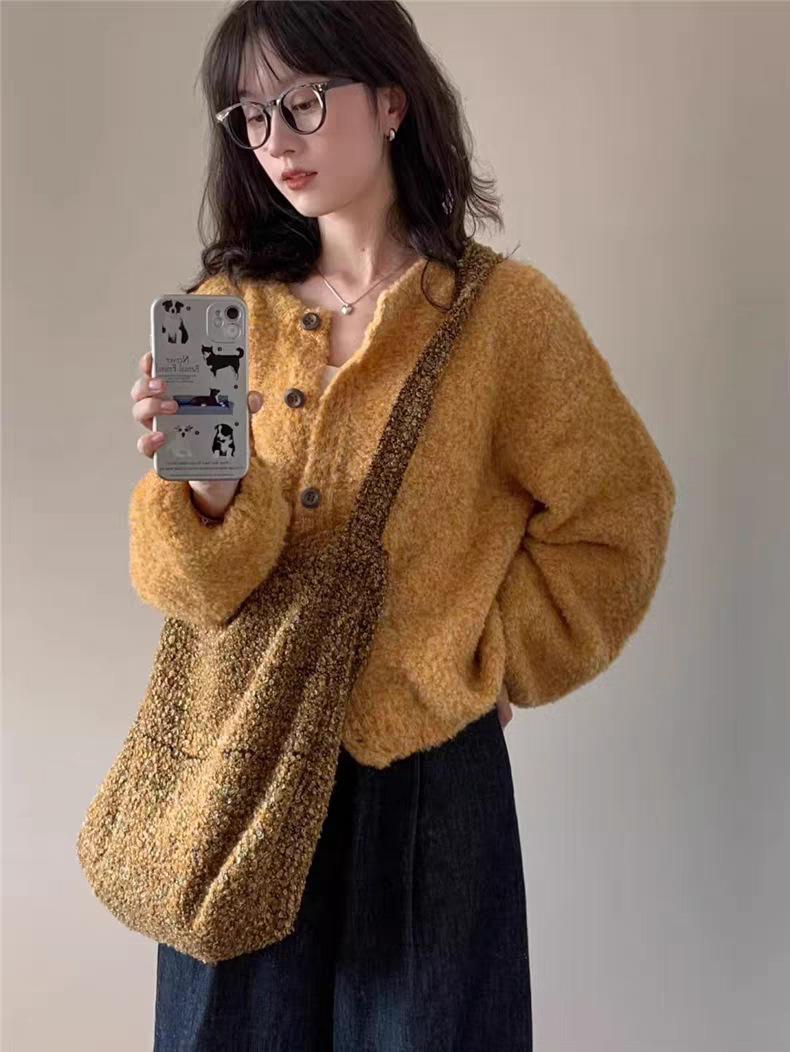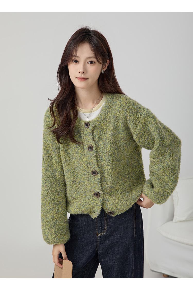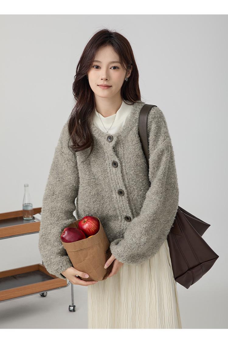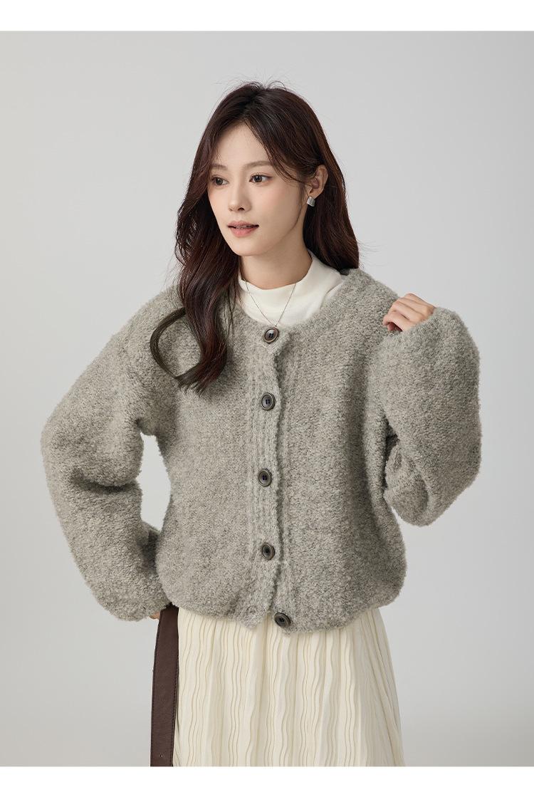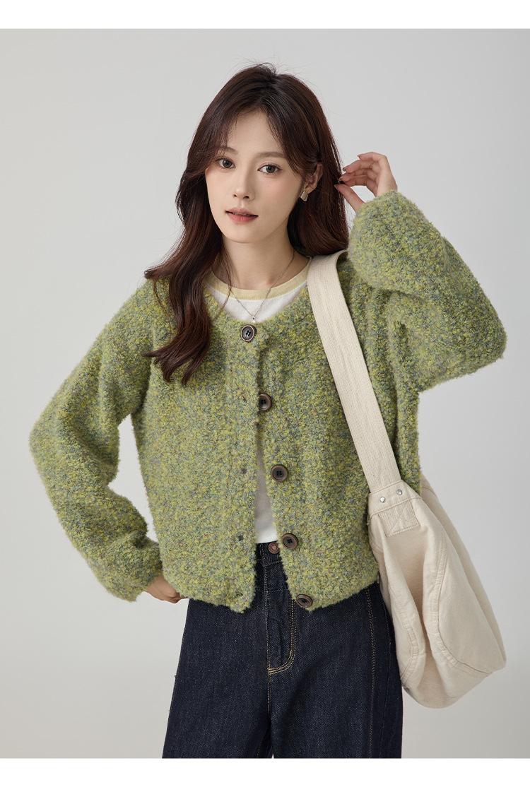 Sentido del Diseño Nicho Adelgazante Otoño Invierno Estilo Holgado Perezoso Cuello Redondo Tejido Cárdigan Corto Top Abrigo Mujer Trendy
