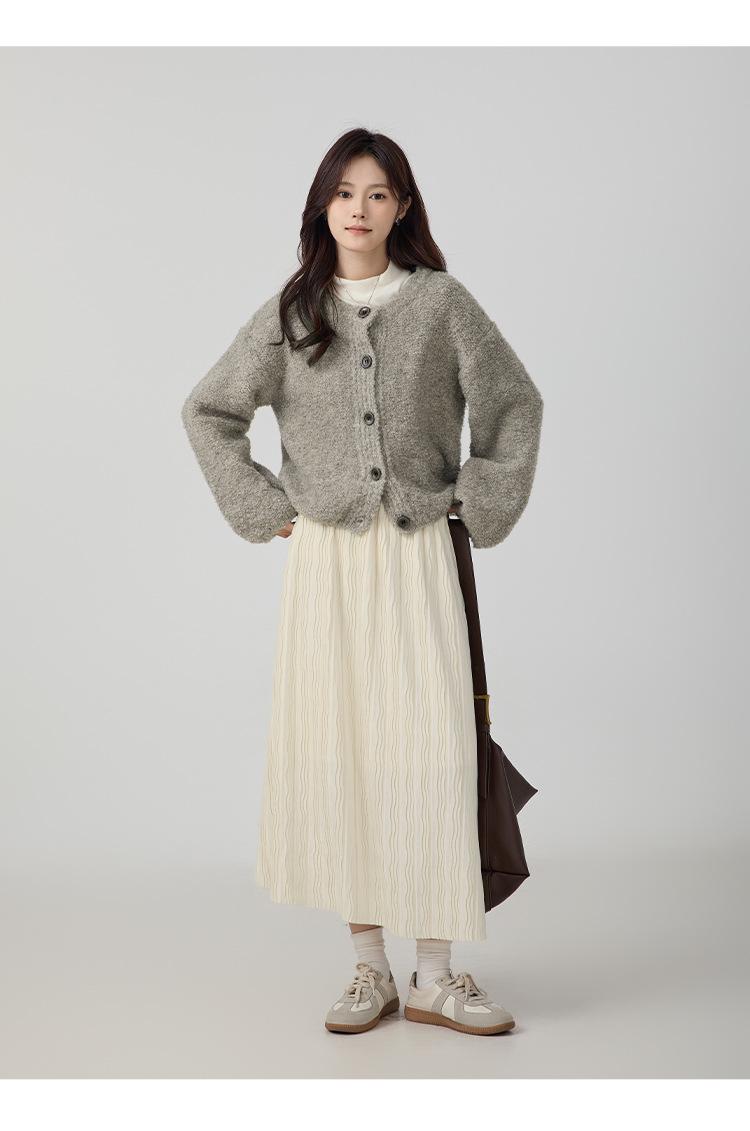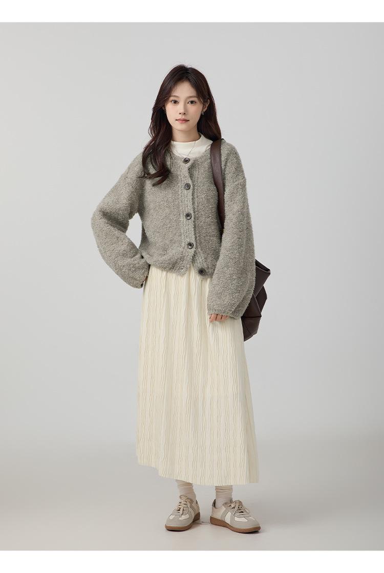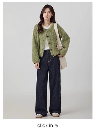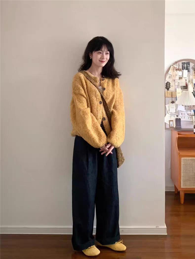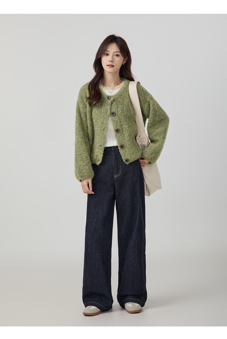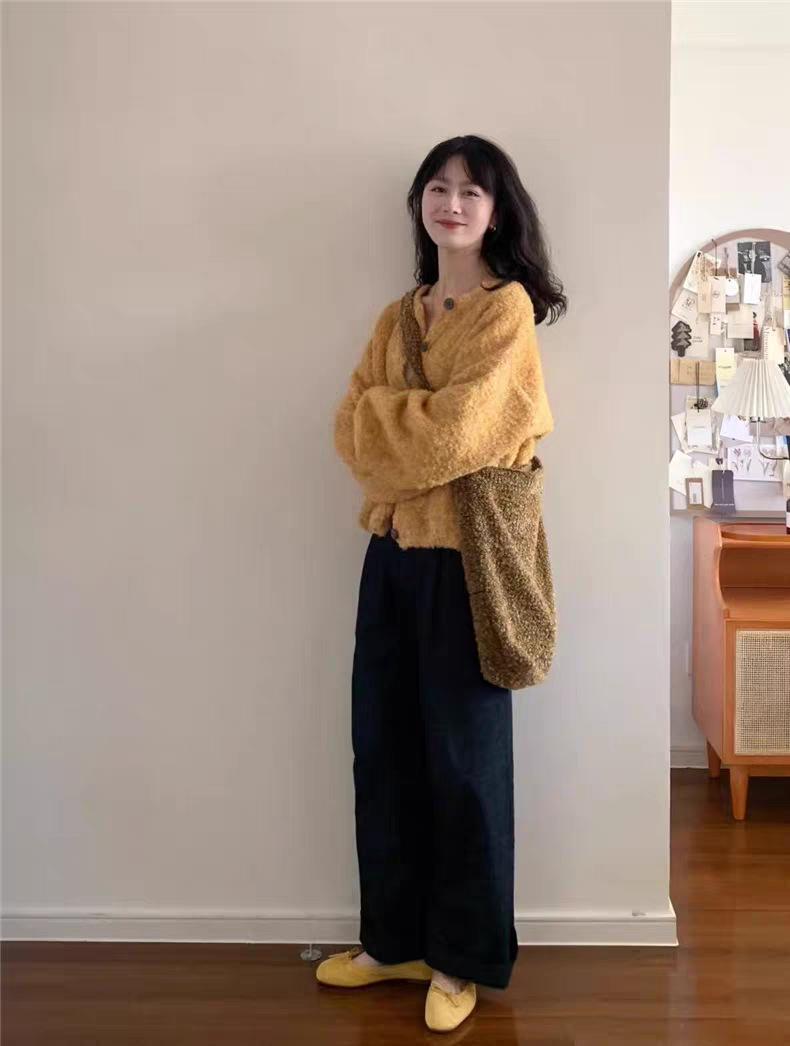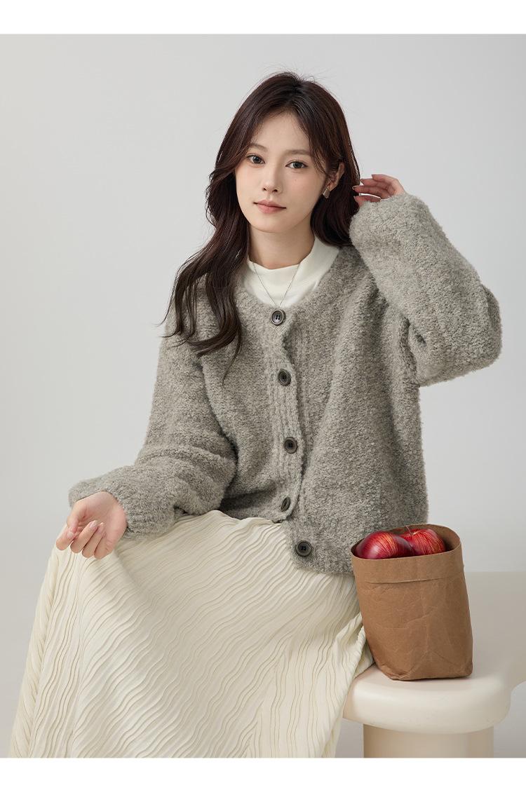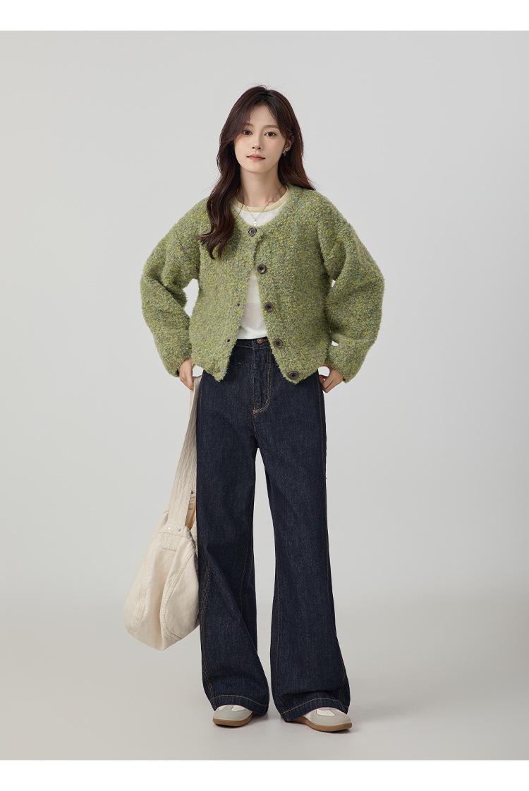 Sentido del Diseño Nicho Adelgazante Otoño Invierno Estilo Holgado Perezoso Cuello Redondo Tejido Cárdigan Corto Top Abrigo Mujer Trendy