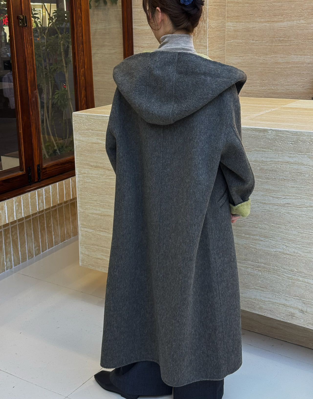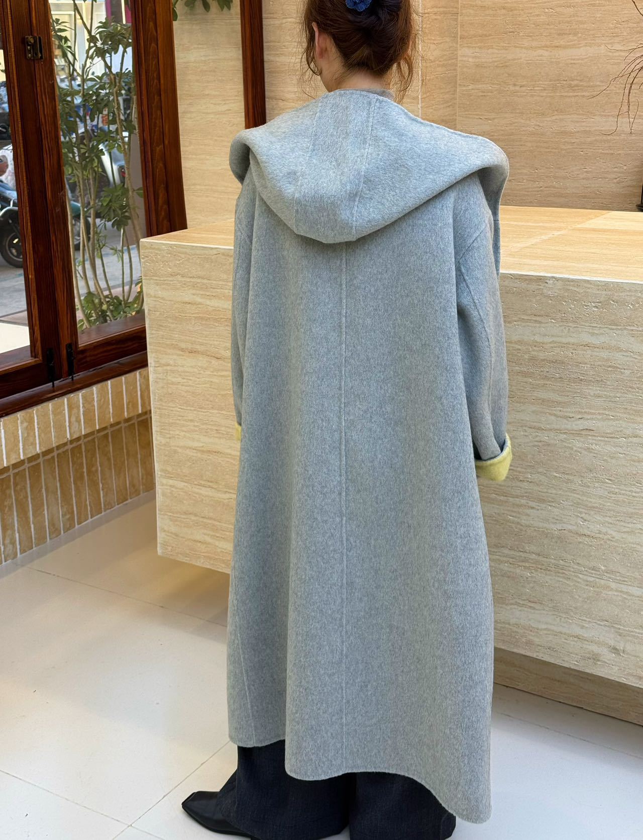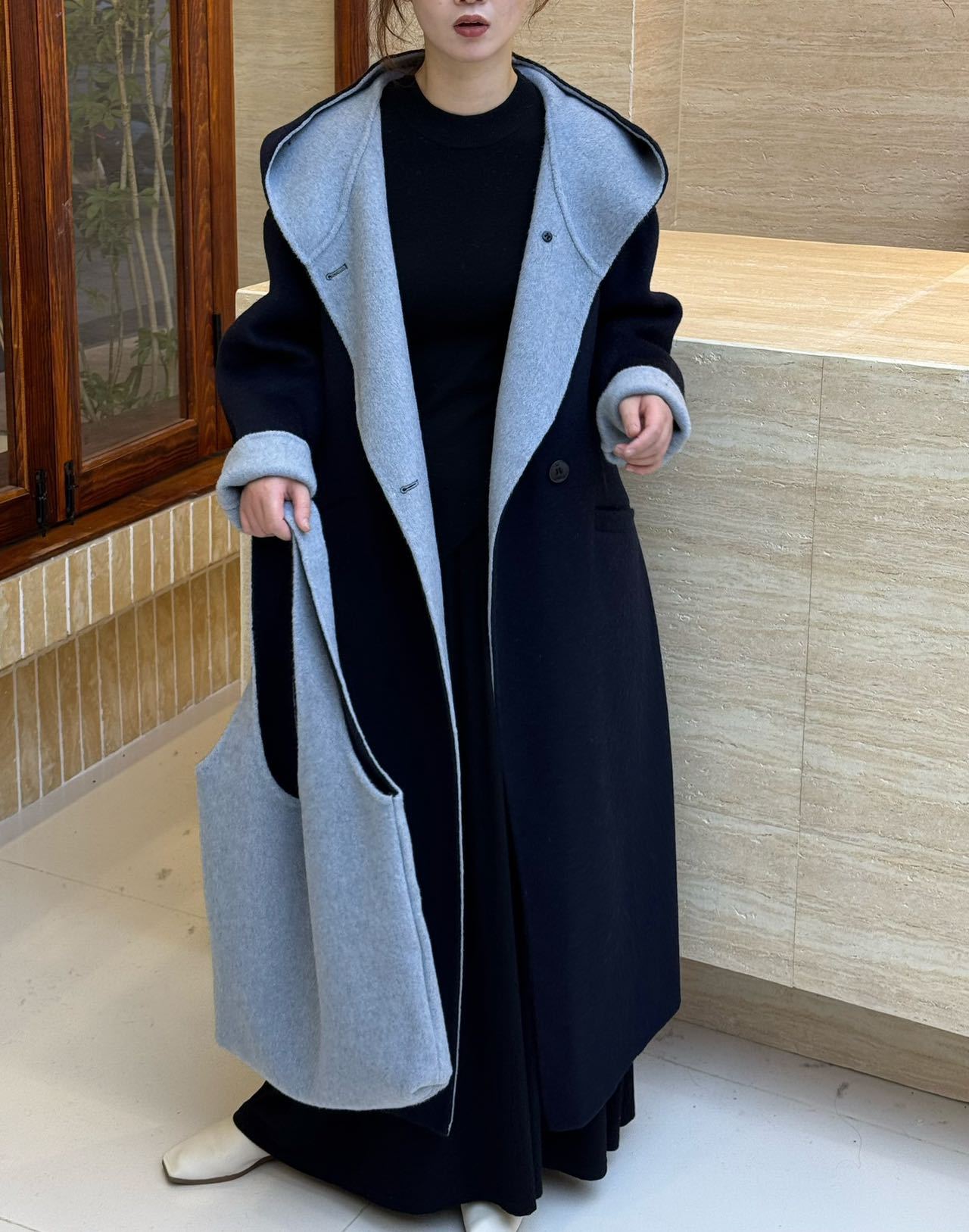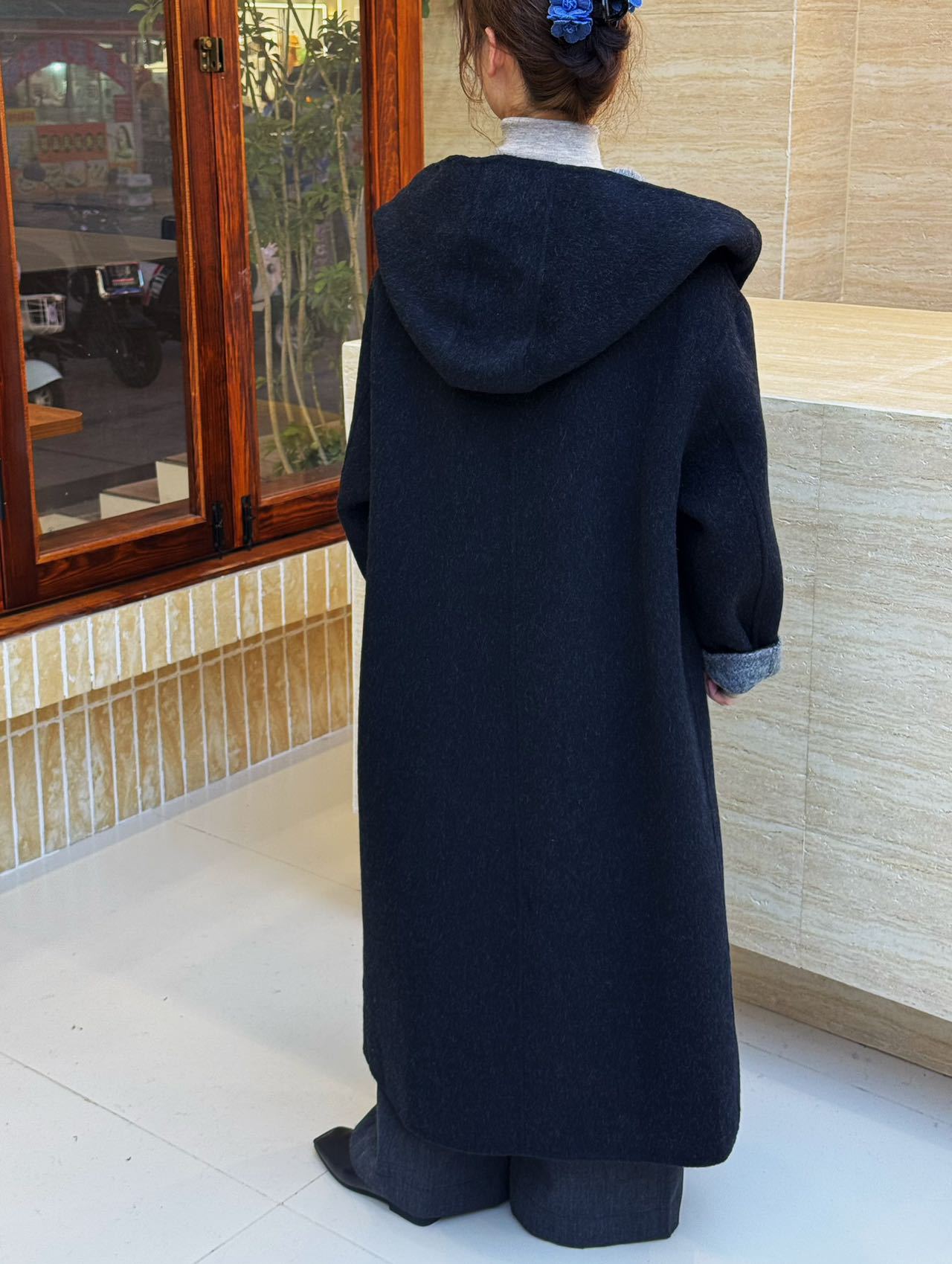 Nuevo Estilo Coreano Temperamento Sencillo Versátil Bata con Capucha de Dos Colores Estilo Moda de Alta Gama Abrigo de Lana de Doble Vista Exterior Mujer