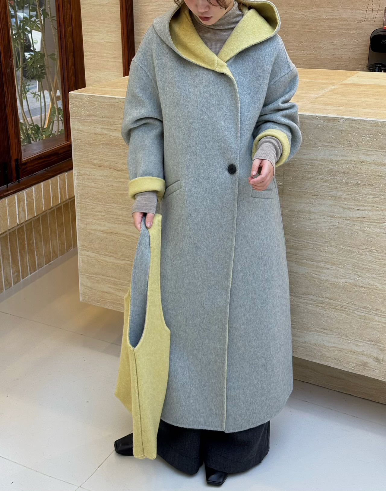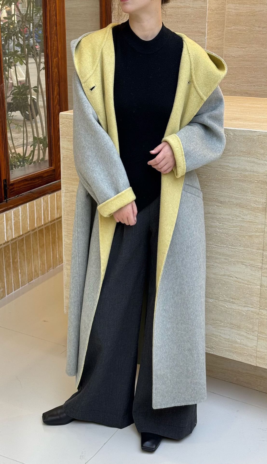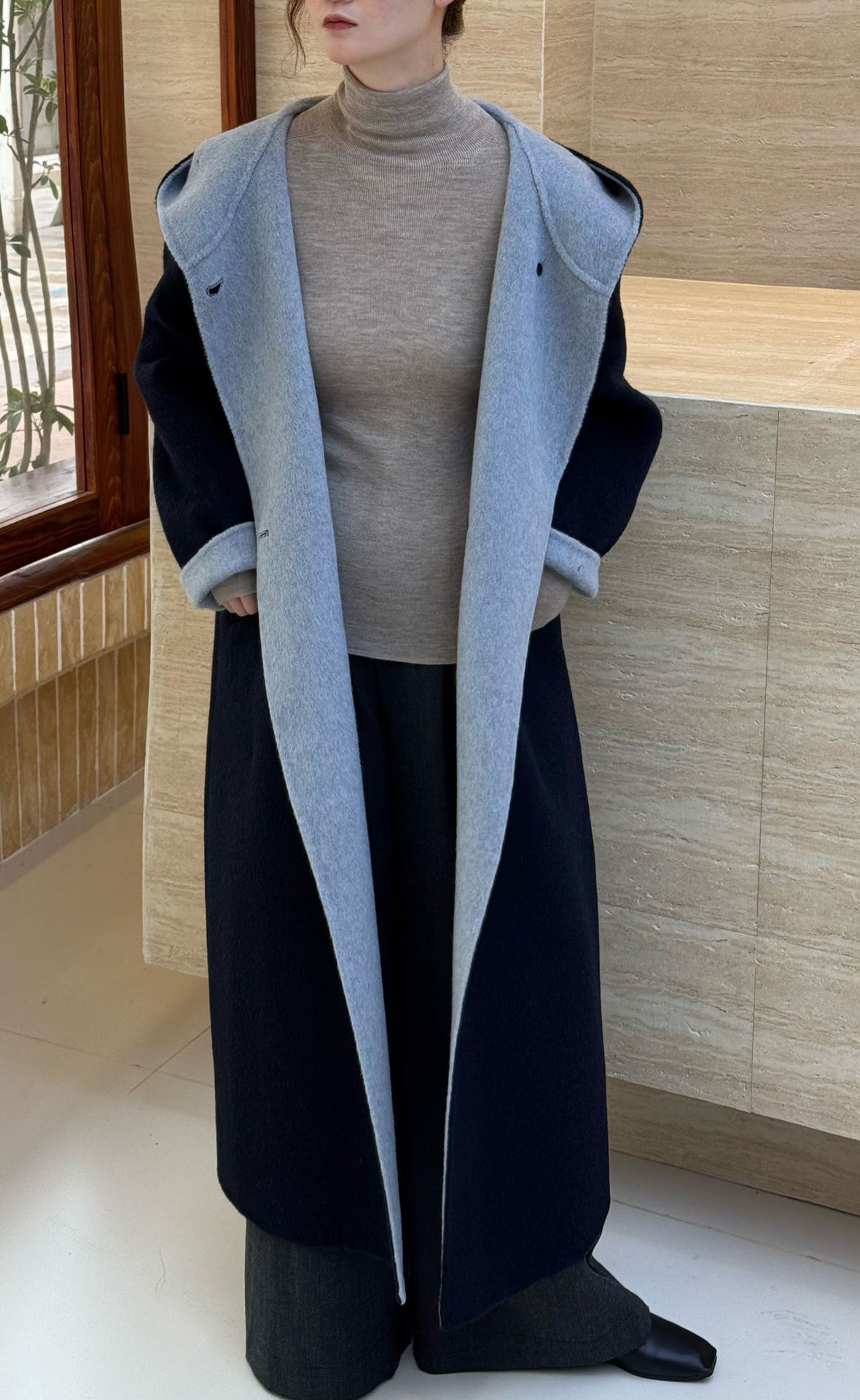 Nuevo Estilo Coreano Temperamento Sencillo Versátil Bata con Capucha de Dos Colores Estilo Moda de Alta Gama Abrigo de Lana de Doble Vista Exterior Mujer
