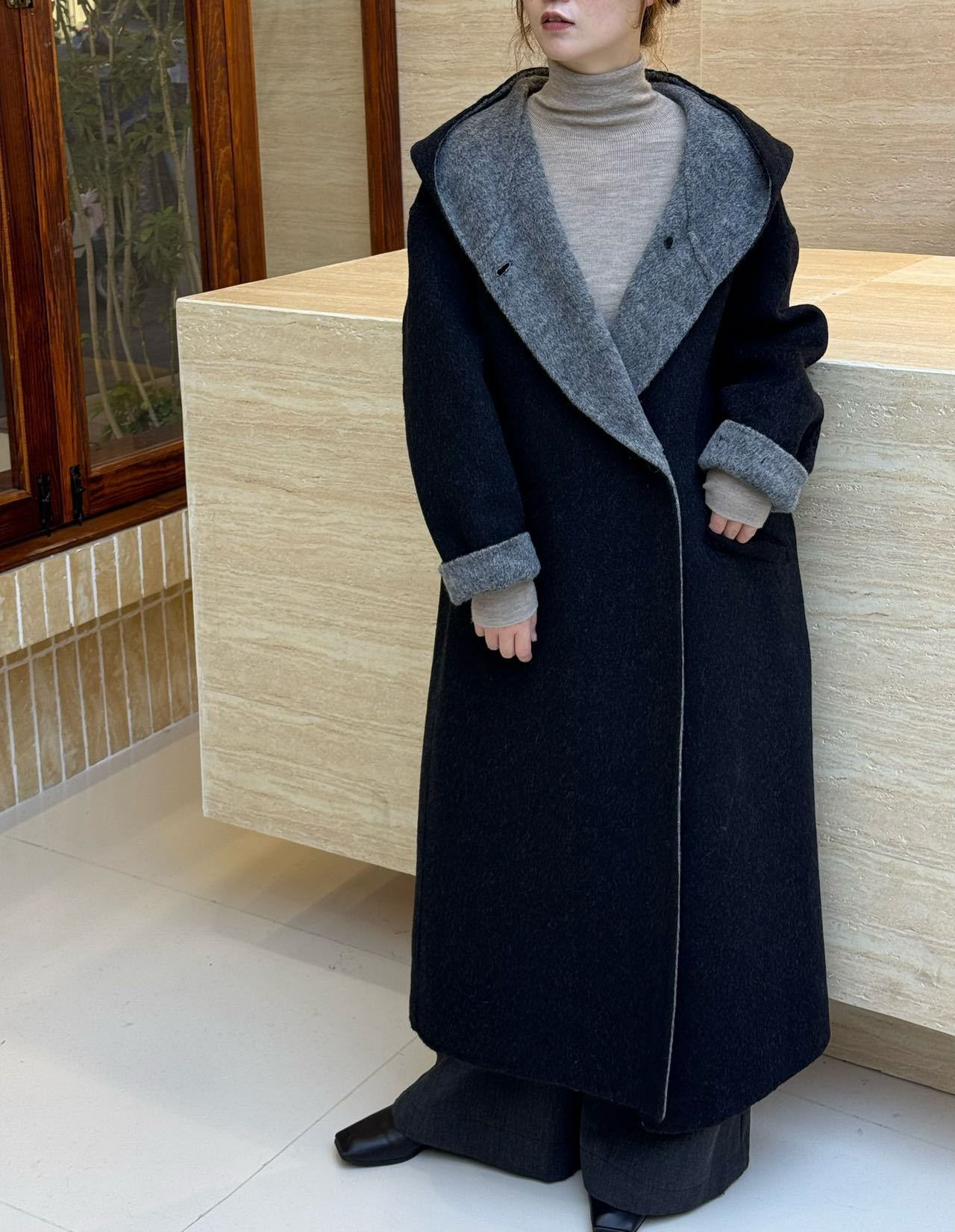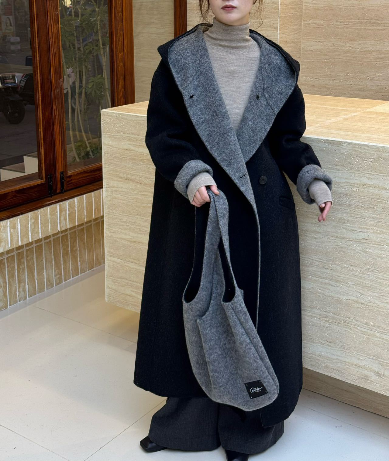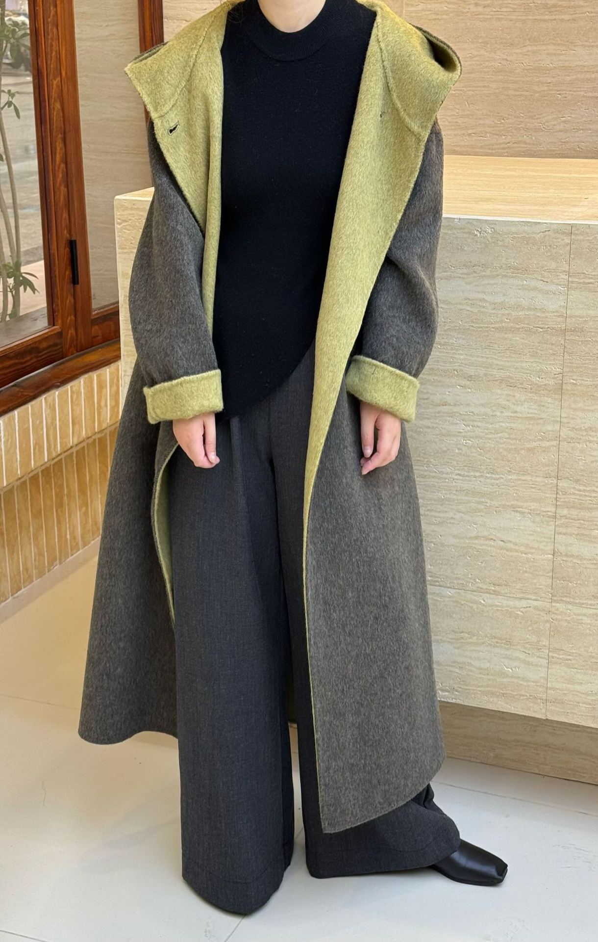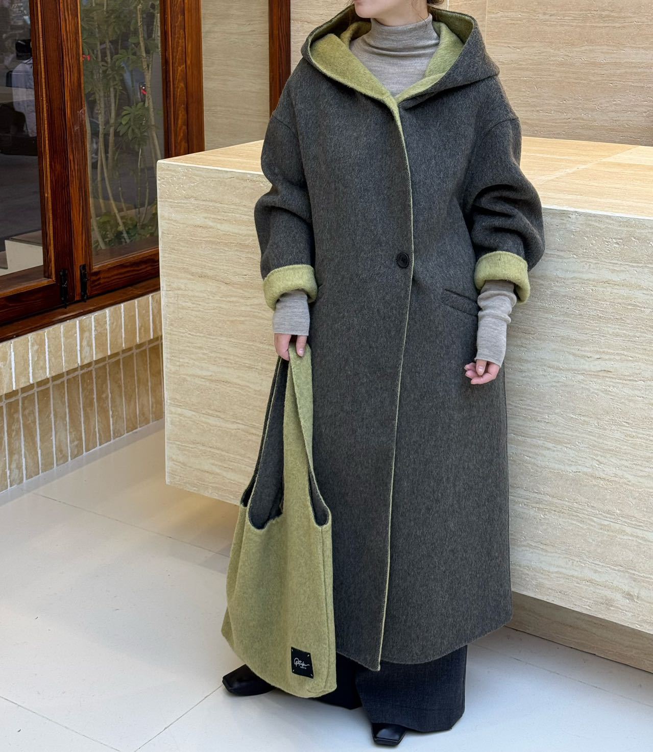 Nuevo Estilo Coreano Temperamento Sencillo Versátil Bata con Capucha de Dos Colores Estilo Moda de Alta Gama Abrigo de Lana de Doble Vista Exterior Mujer