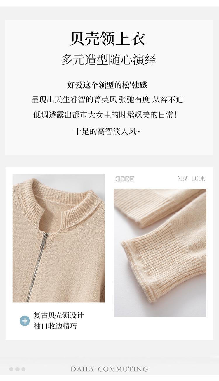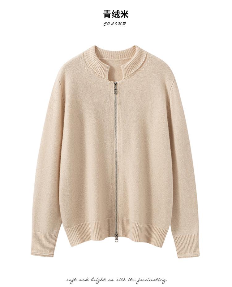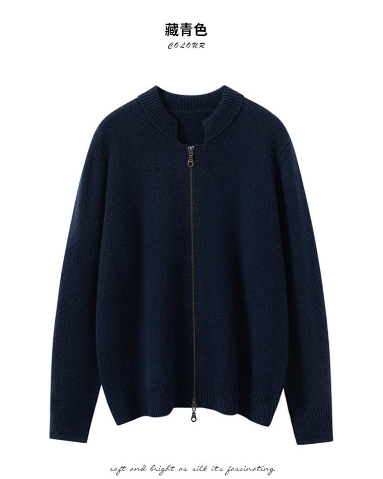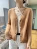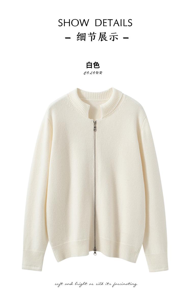 Cárdigan de Punto de Cachemira Nuevo Otoño/Invierno Moda Commute Versátil Suelto Adelgazante Cierre Color Sólido Cuello Festoneado Mujer