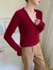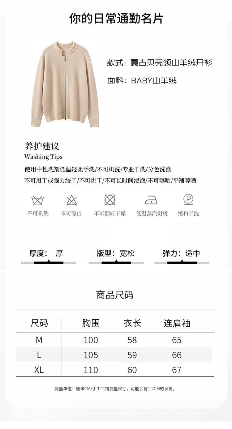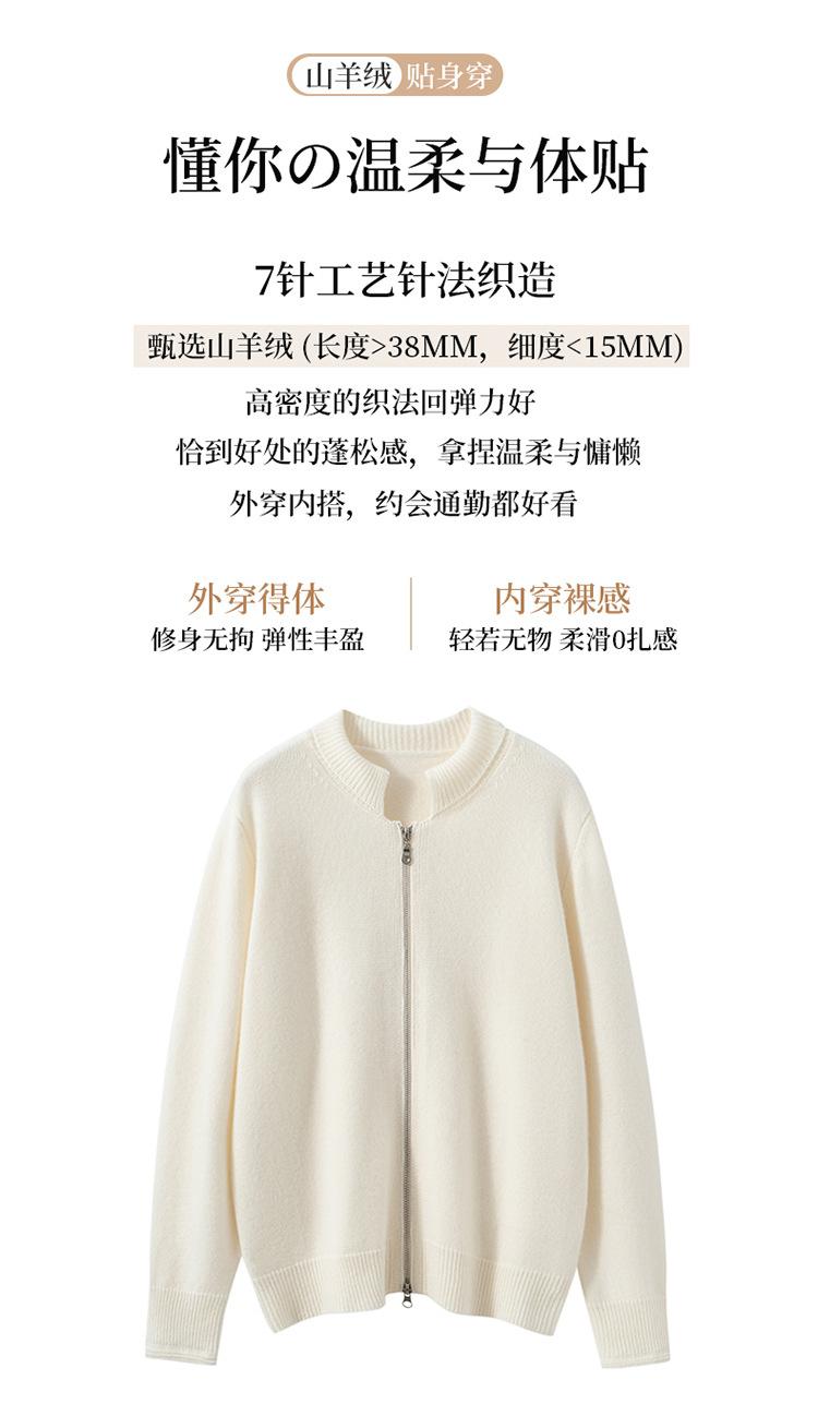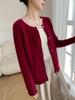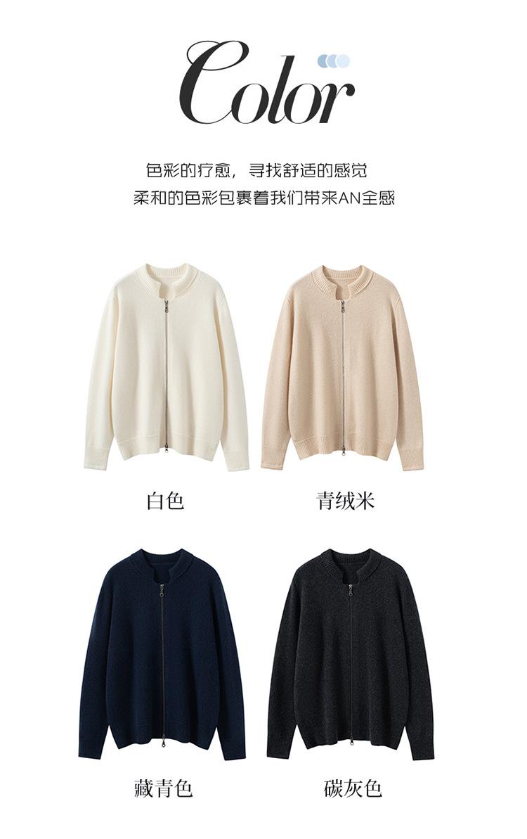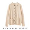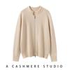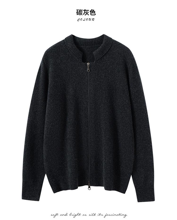 Cárdigan de Punto de Cachemira Nuevo Otoño/Invierno Moda Commute Versátil Suelto Adelgazante Cierre Color Sólido Cuello Festoneado Mujer