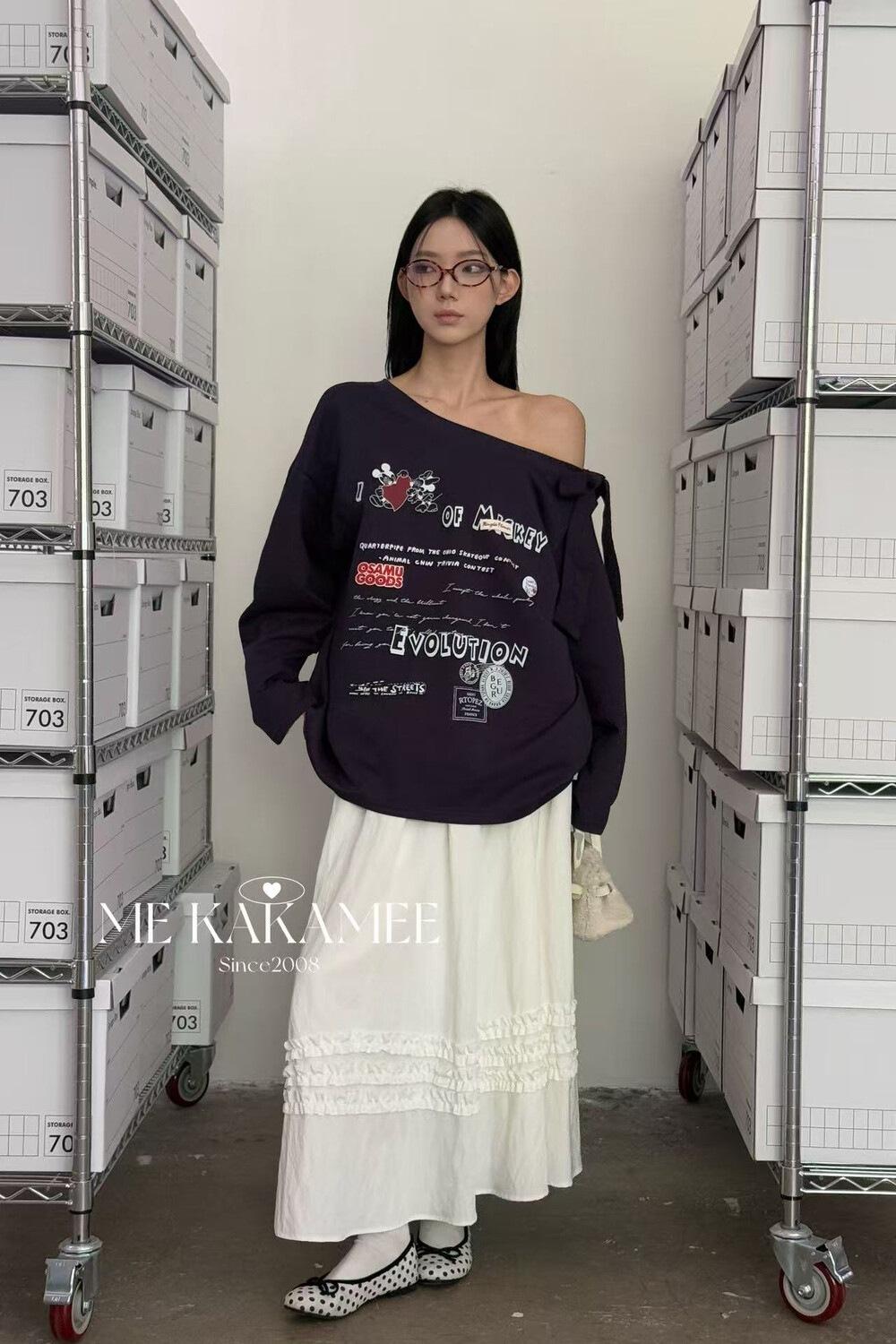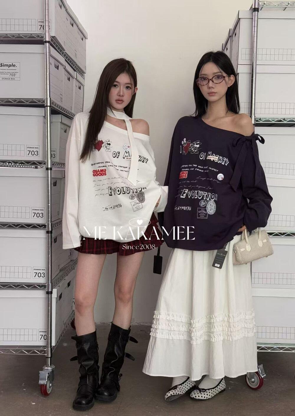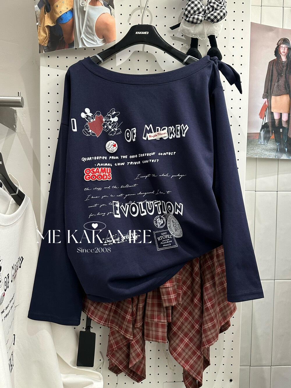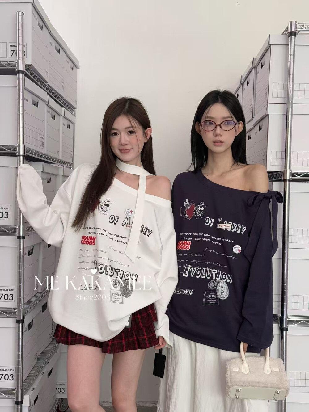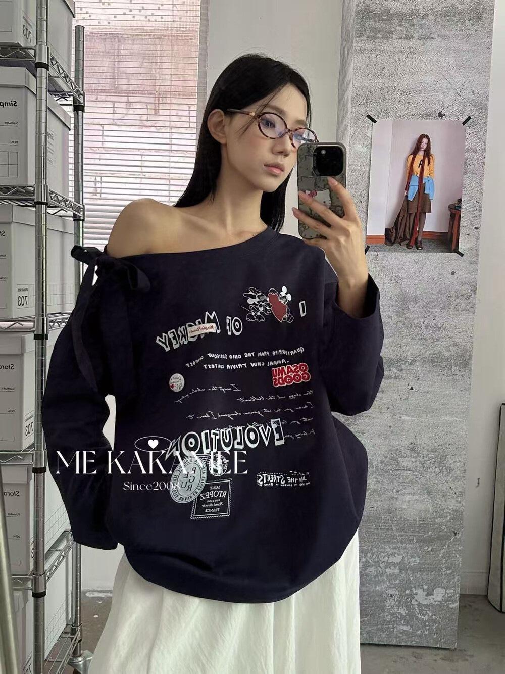 ME KAKAMEE trece líneas otoño caricatura MQ correa para el cuello hombro diagonal holgada camiseta de manga larga (con corbata) 8866