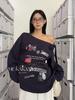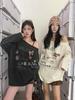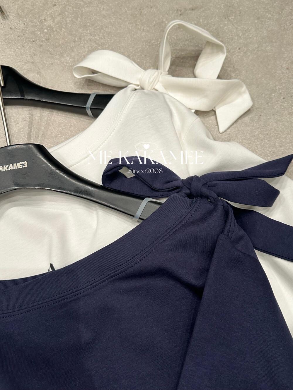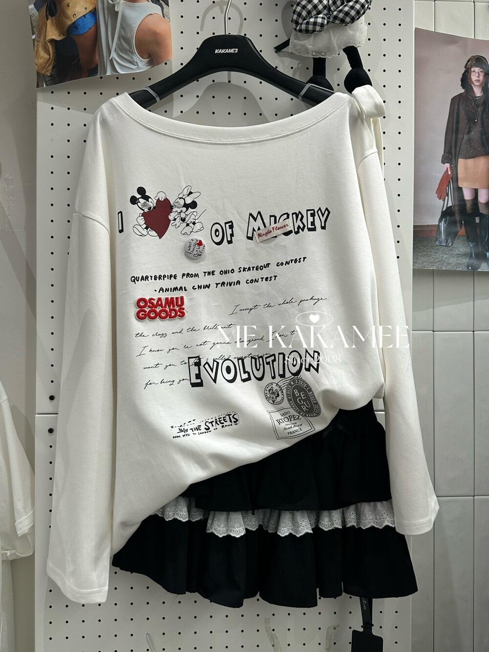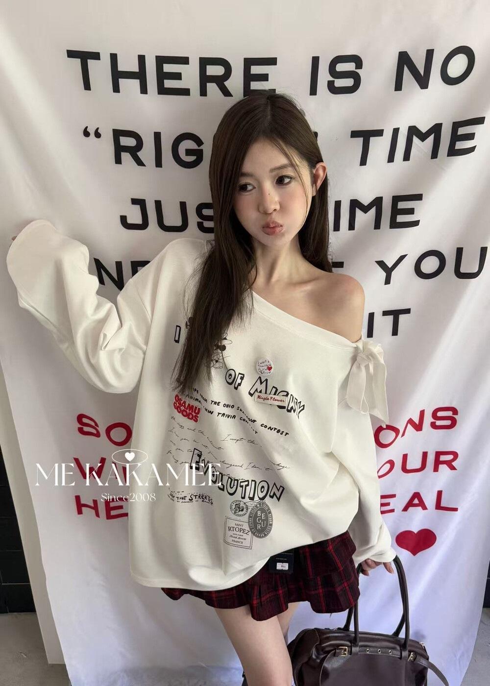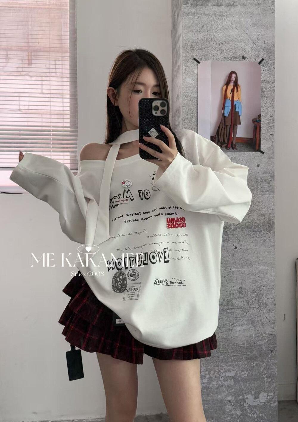 ME KAKAMEE trece líneas otoño caricatura MQ correa para el cuello hombro diagonal holgada camiseta de manga larga (con corbata) 8866