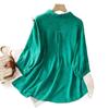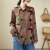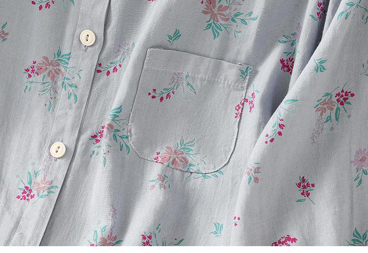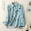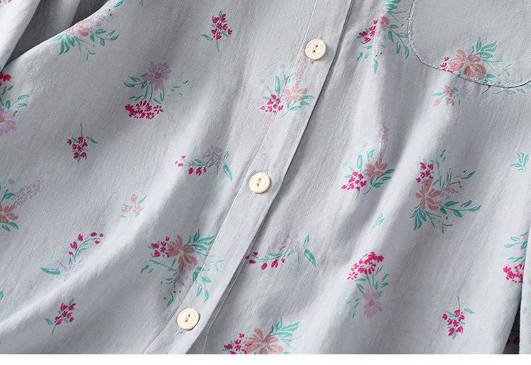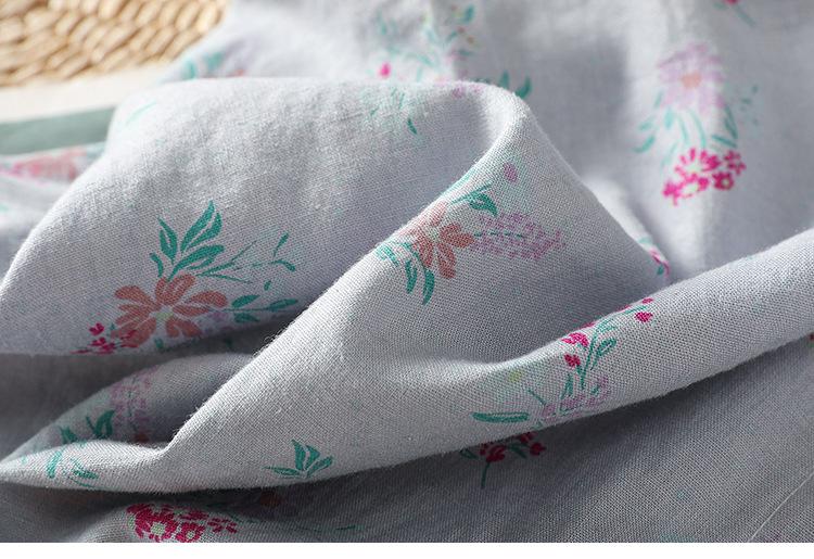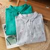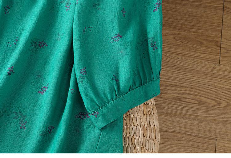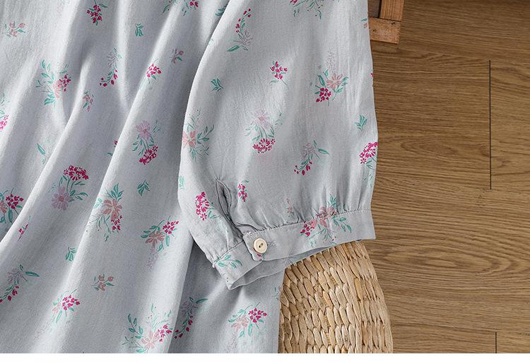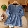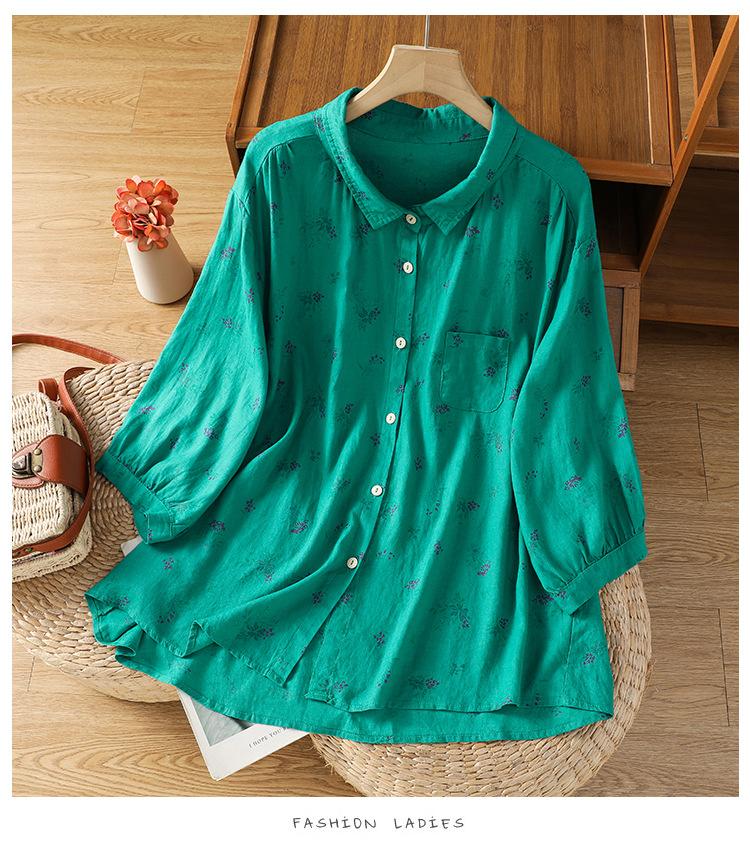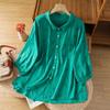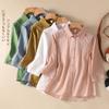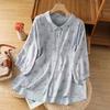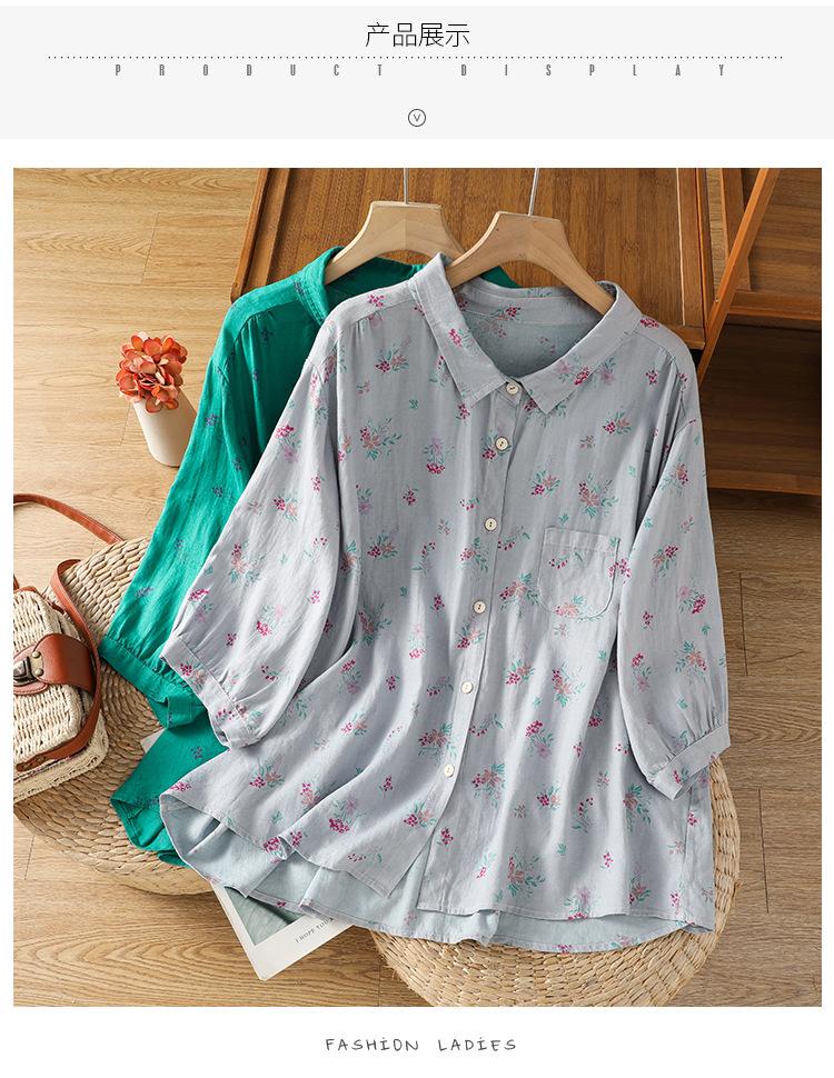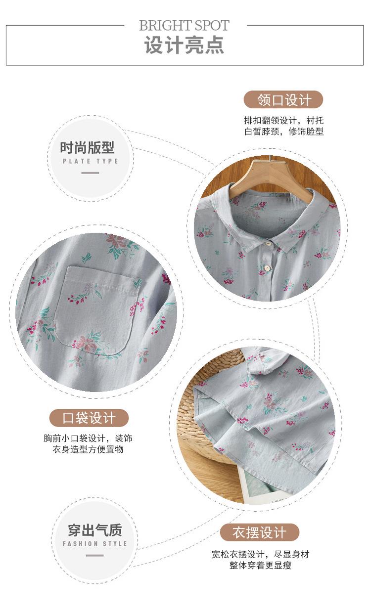 Nuevo en stock foto real estampado literario retro camisa de lino de algodón para mujer camisa con solapa temperamento delgada manga corta top mujer