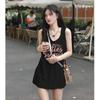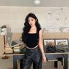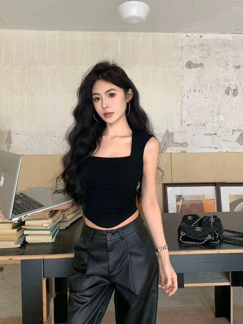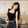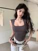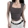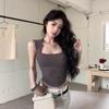 Playera sin mangas dulce y picante para niña, camiseta de verano para mujer, corte ajustado, diseño nicho, cuello cuadrado, gris, top básico corto