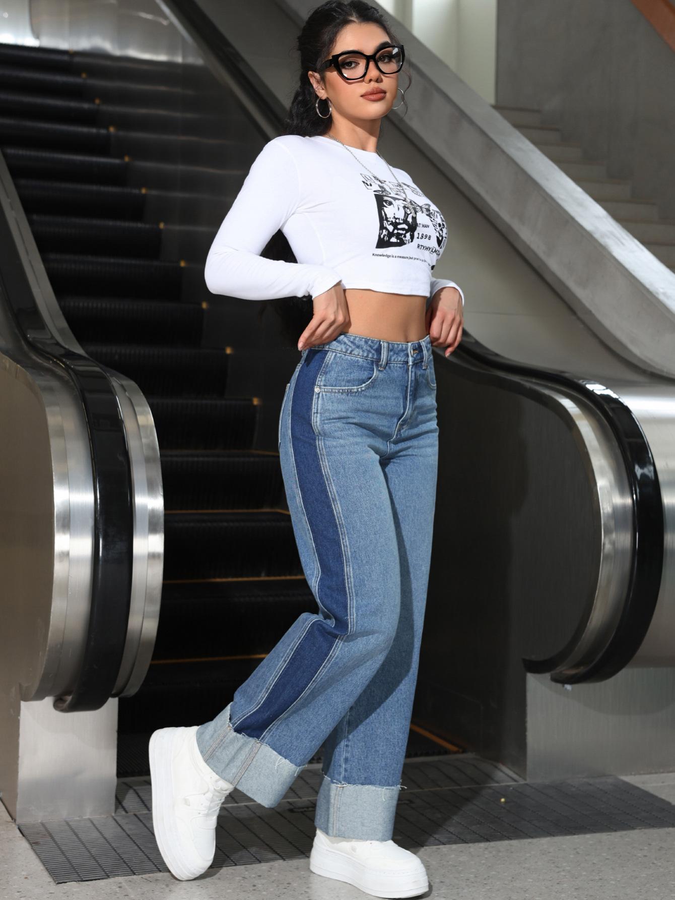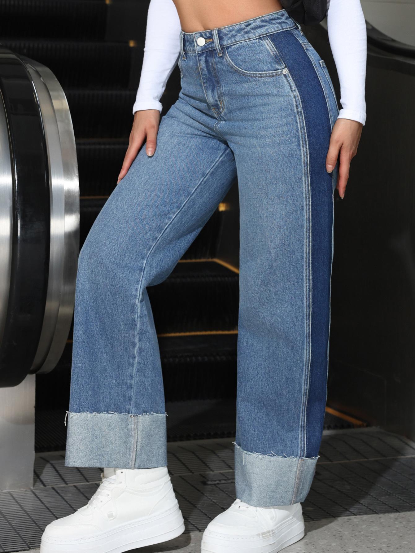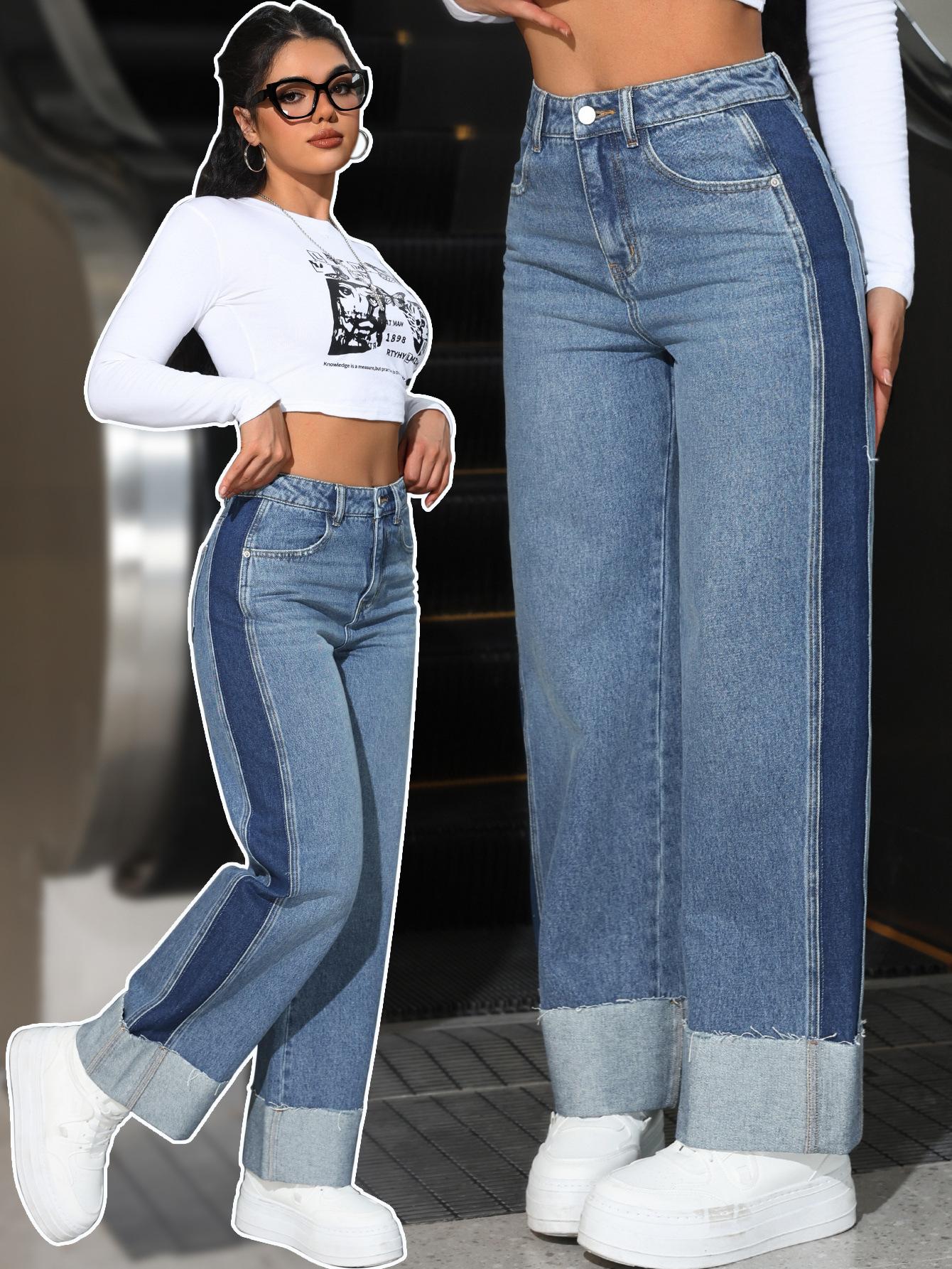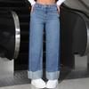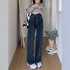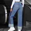 Primavera Nuevo Jeans de Mujer Sueltos Adelgazantes Diseño de Rizo Nicho Cintura Alta Rectos Recortados Pantalones de Moda