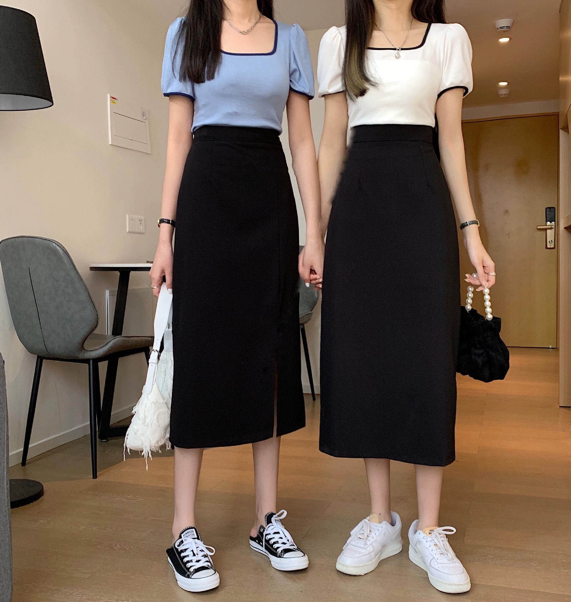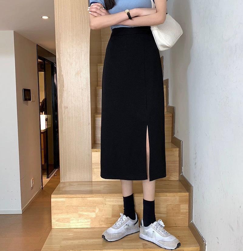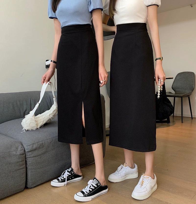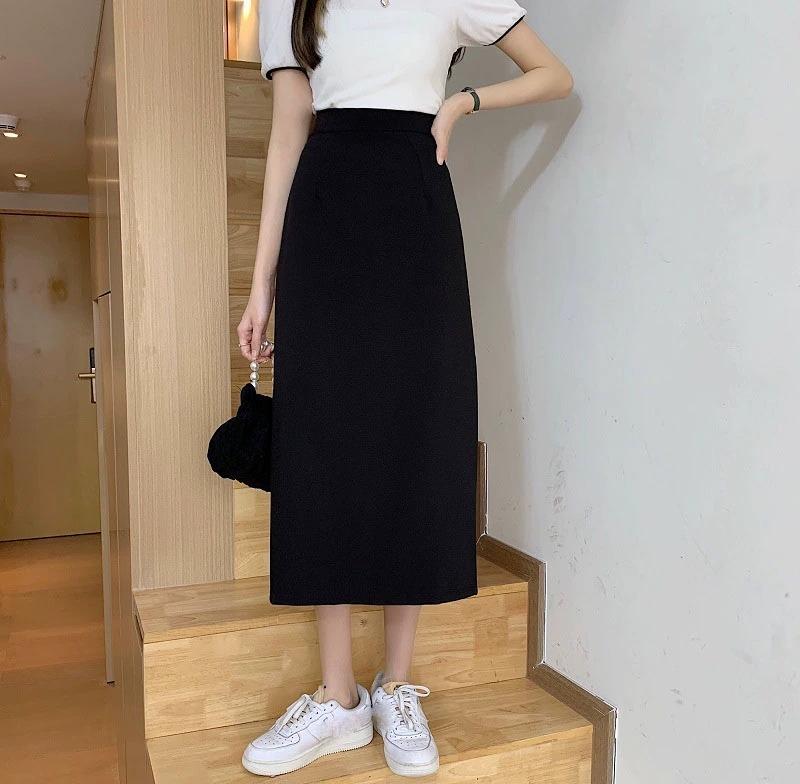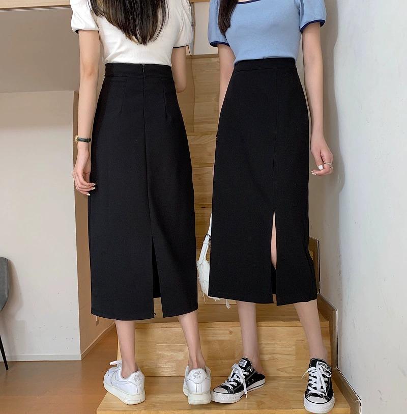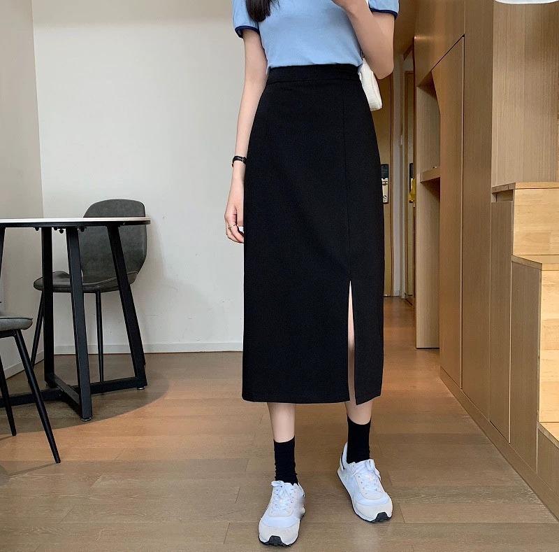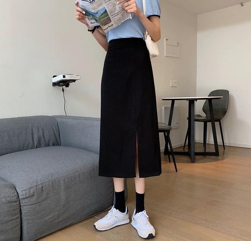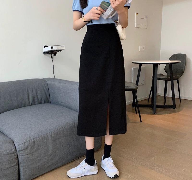 Falda Midi Negra Mujer Otoño Falda Larga Línea A 2025 Nuevo Petite Cintura Alta Vestido Chic Diseño Abertura Trasera