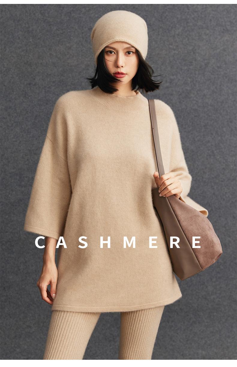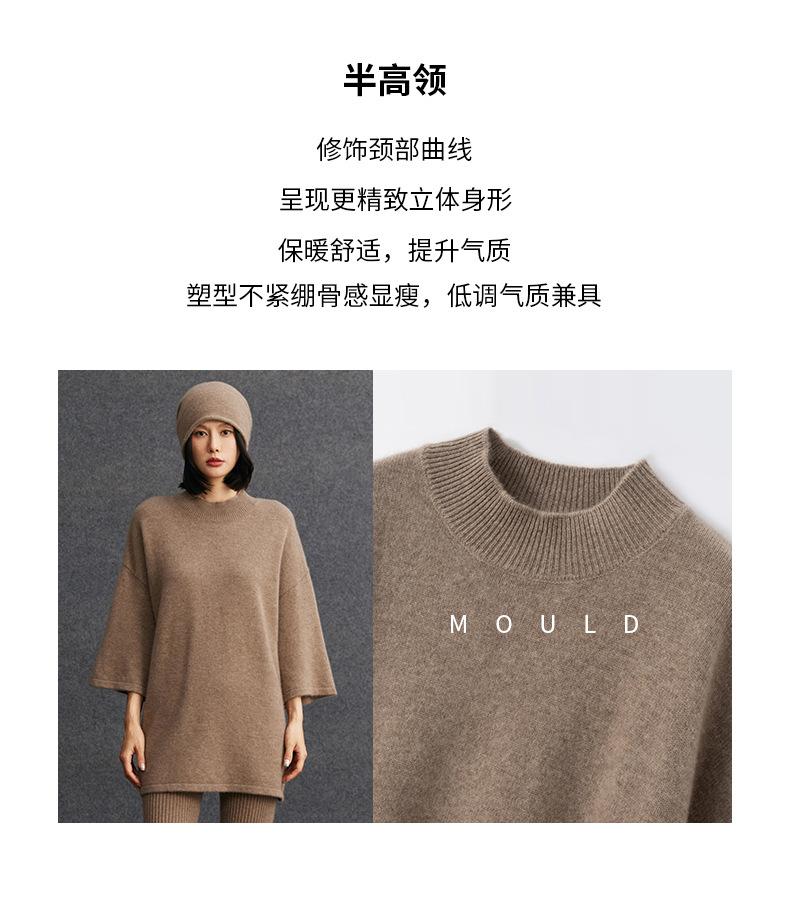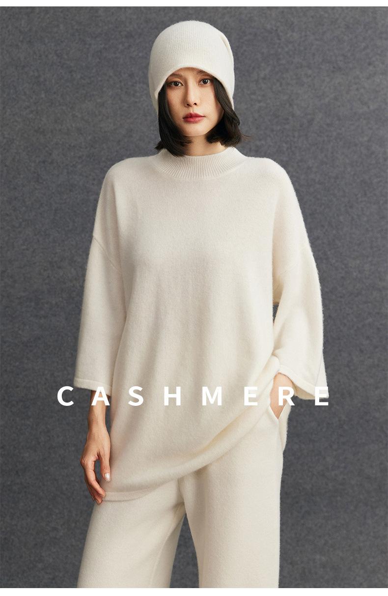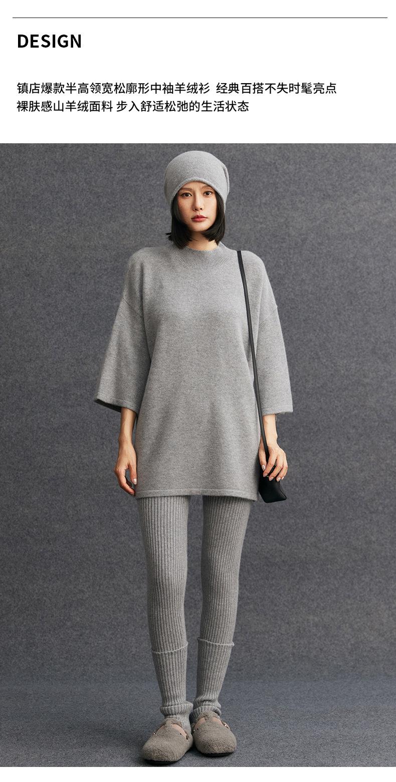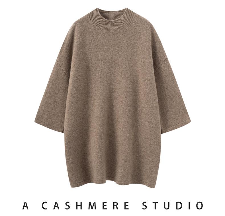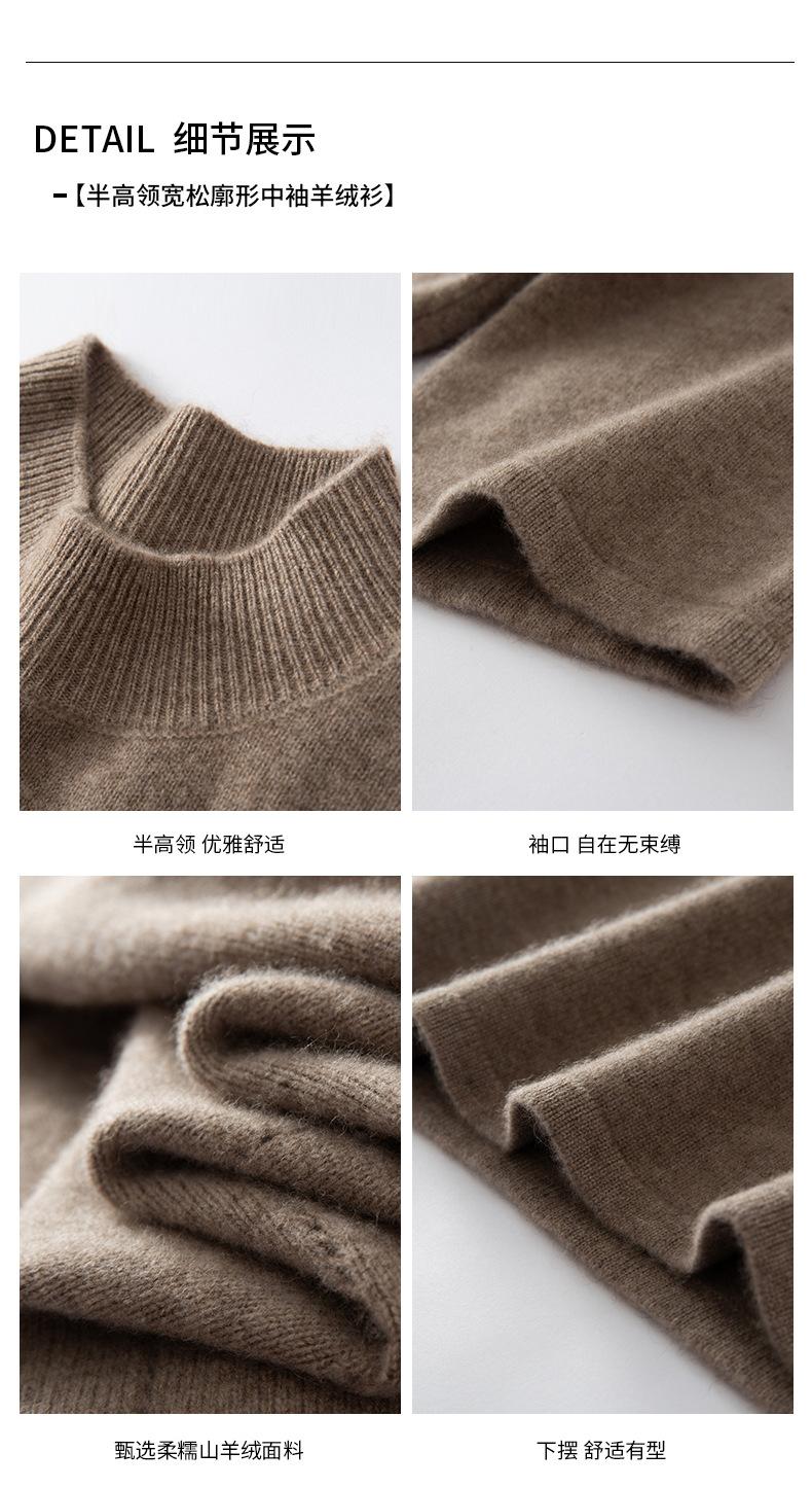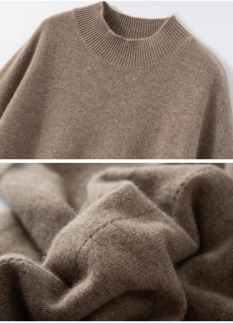 Cachemira para Mujer Cuello Medio Alto Holgado Casual Minimalista Capa Base Estilo Elegante Suéter de Cachemira Otoño e Invierno Nuevo Suéter de Punto