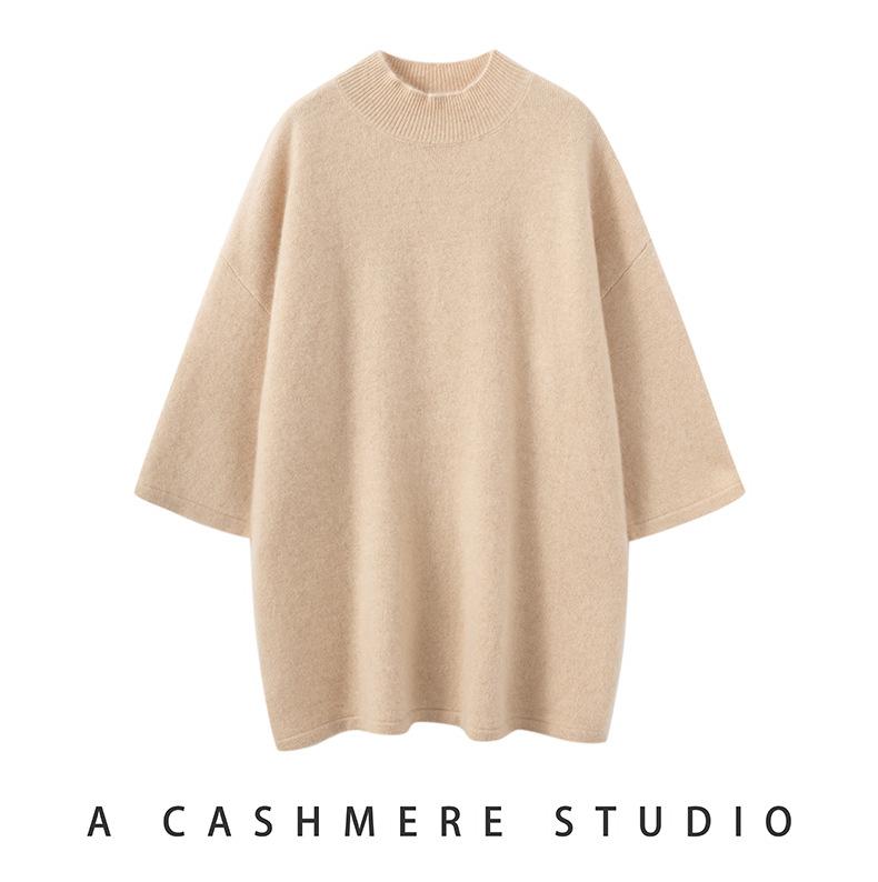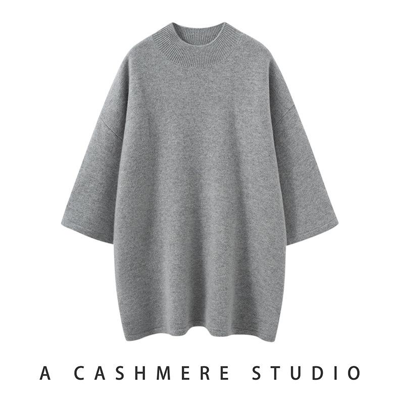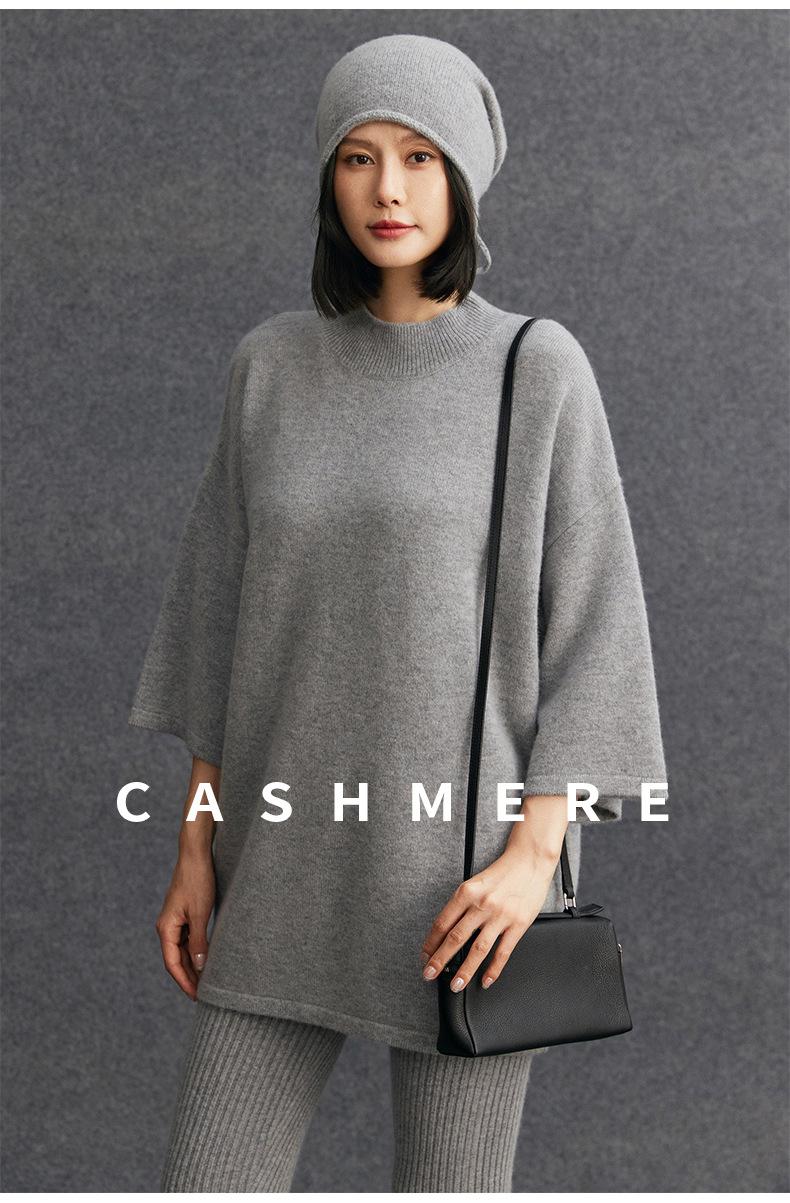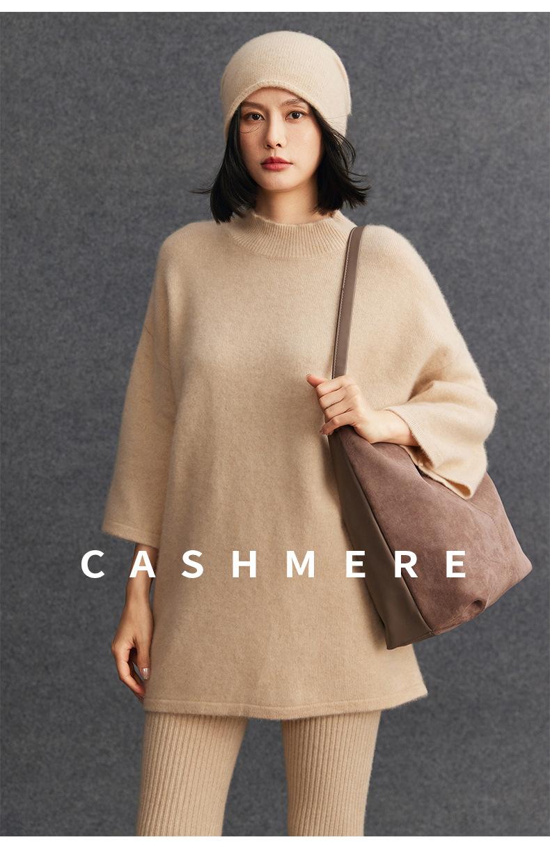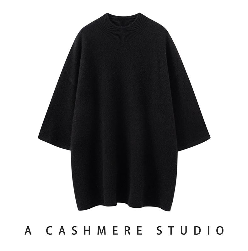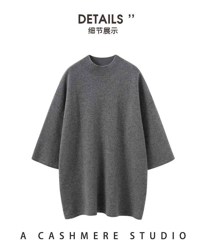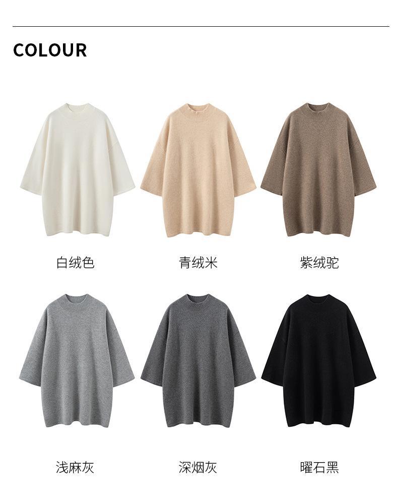 Cachemira para Mujer Cuello Medio Alto Holgado Casual Minimalista Capa Base Estilo Elegante Suéter de Cachemira Otoño e Invierno Nuevo Suéter de Punto