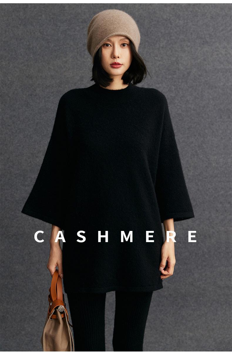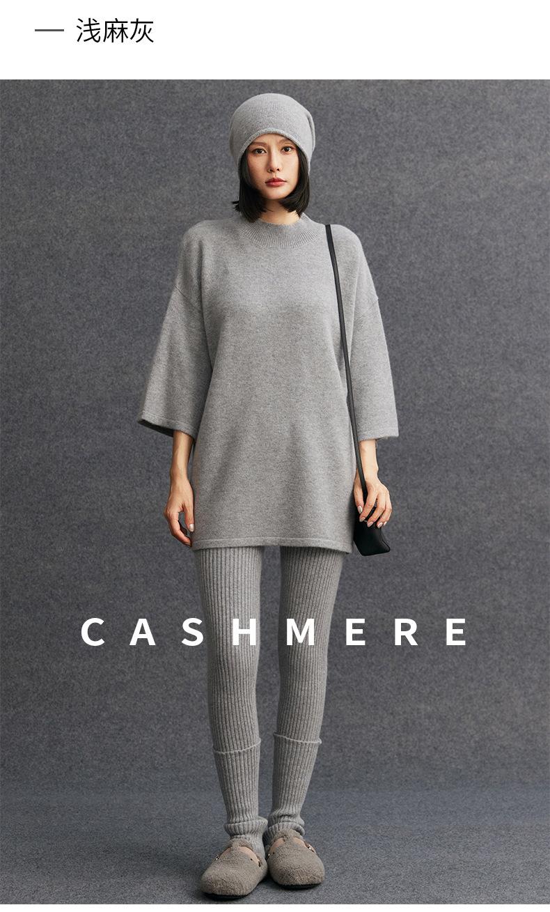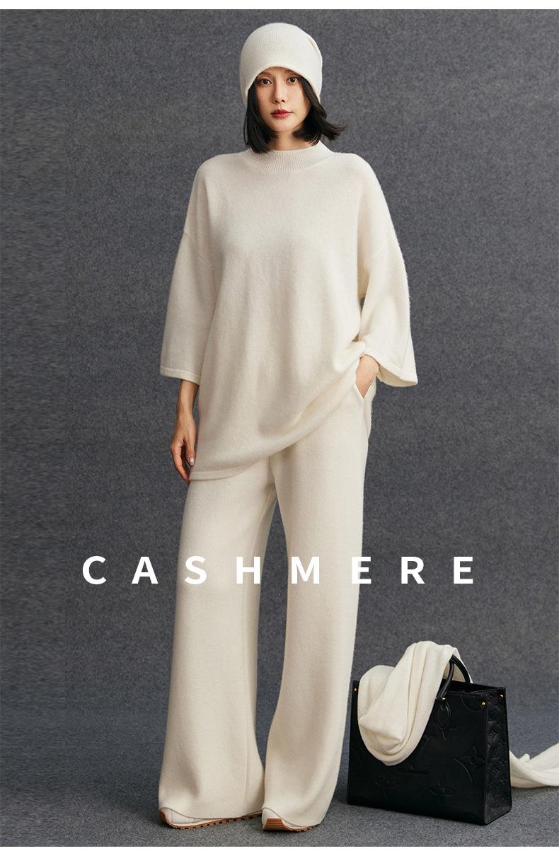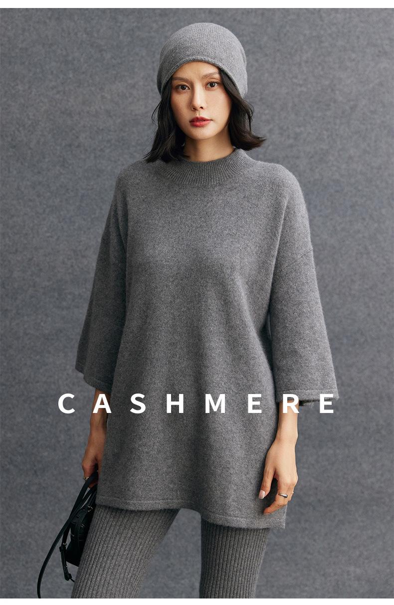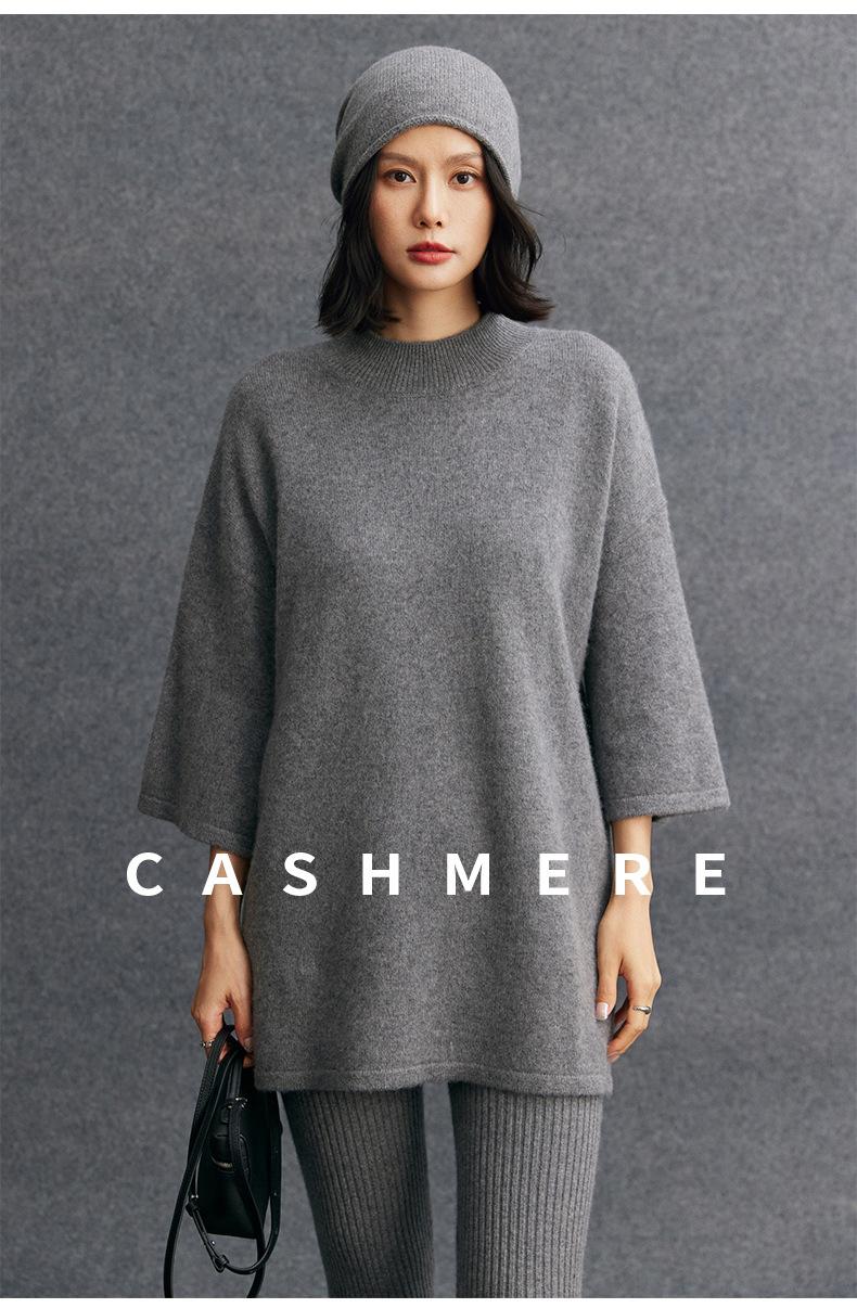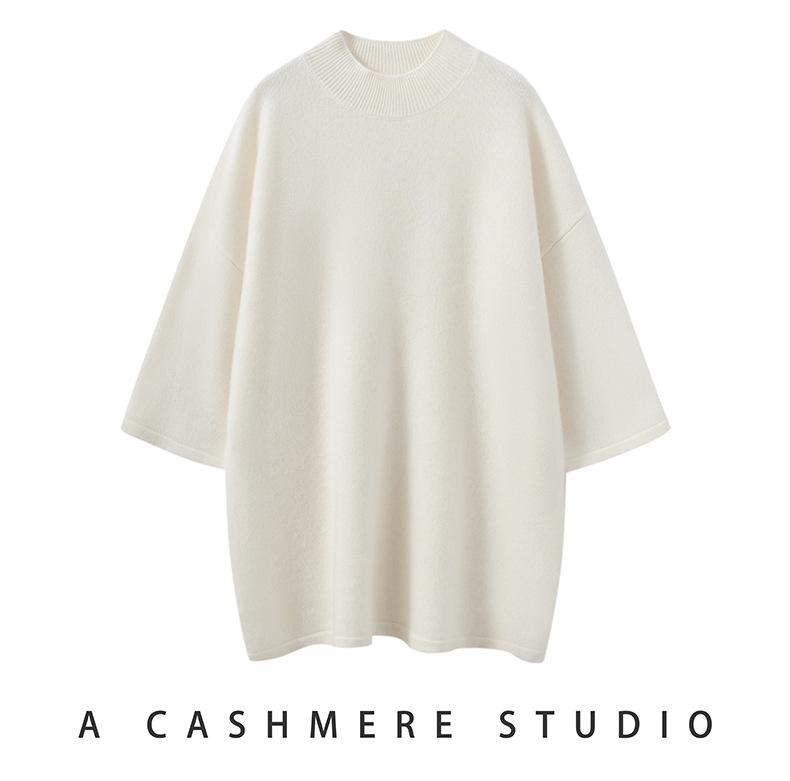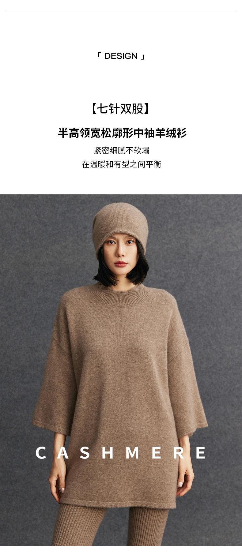 Cachemira para Mujer Cuello Medio Alto Holgado Casual Minimalista Capa Base Estilo Elegante Suéter de Cachemira Otoño e Invierno Nuevo Suéter de Punto
