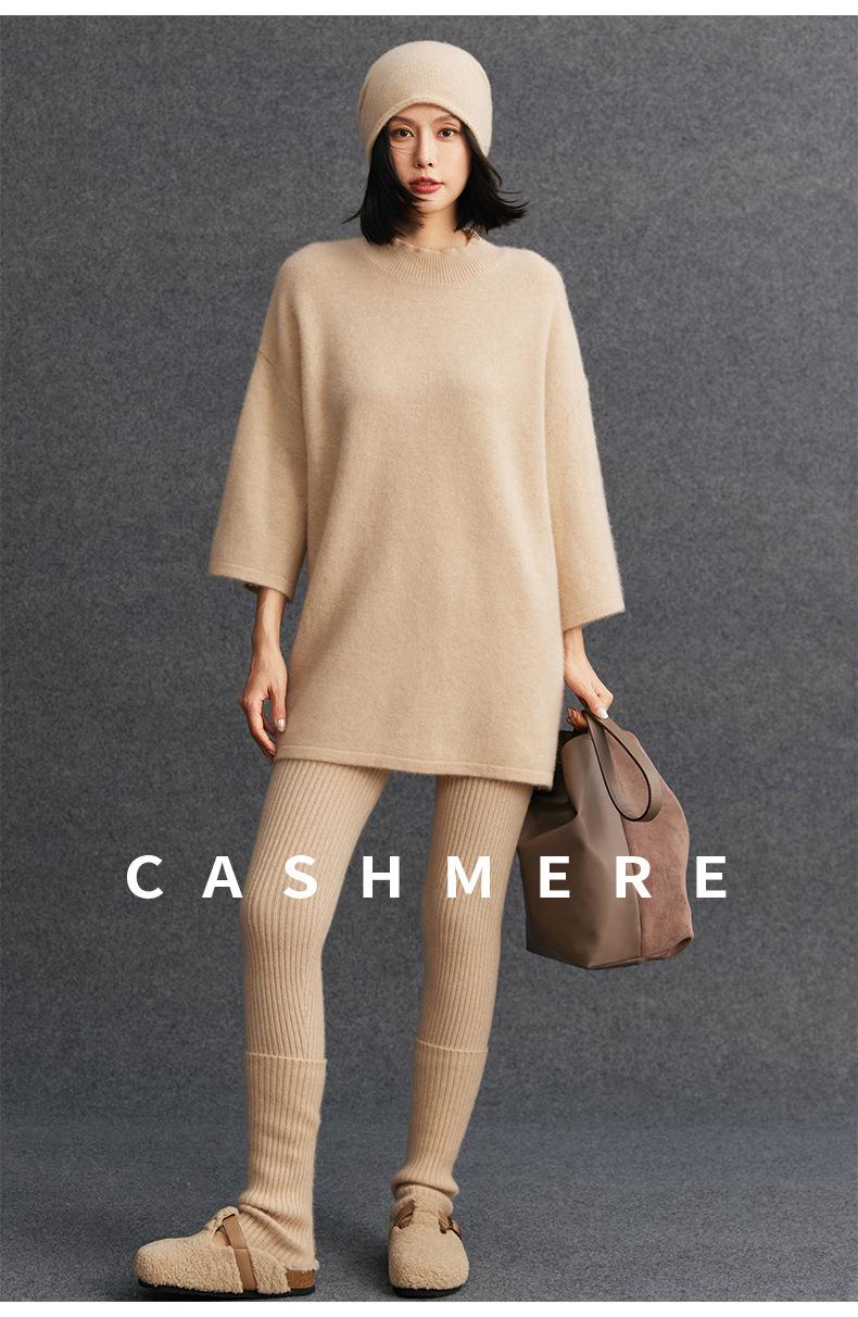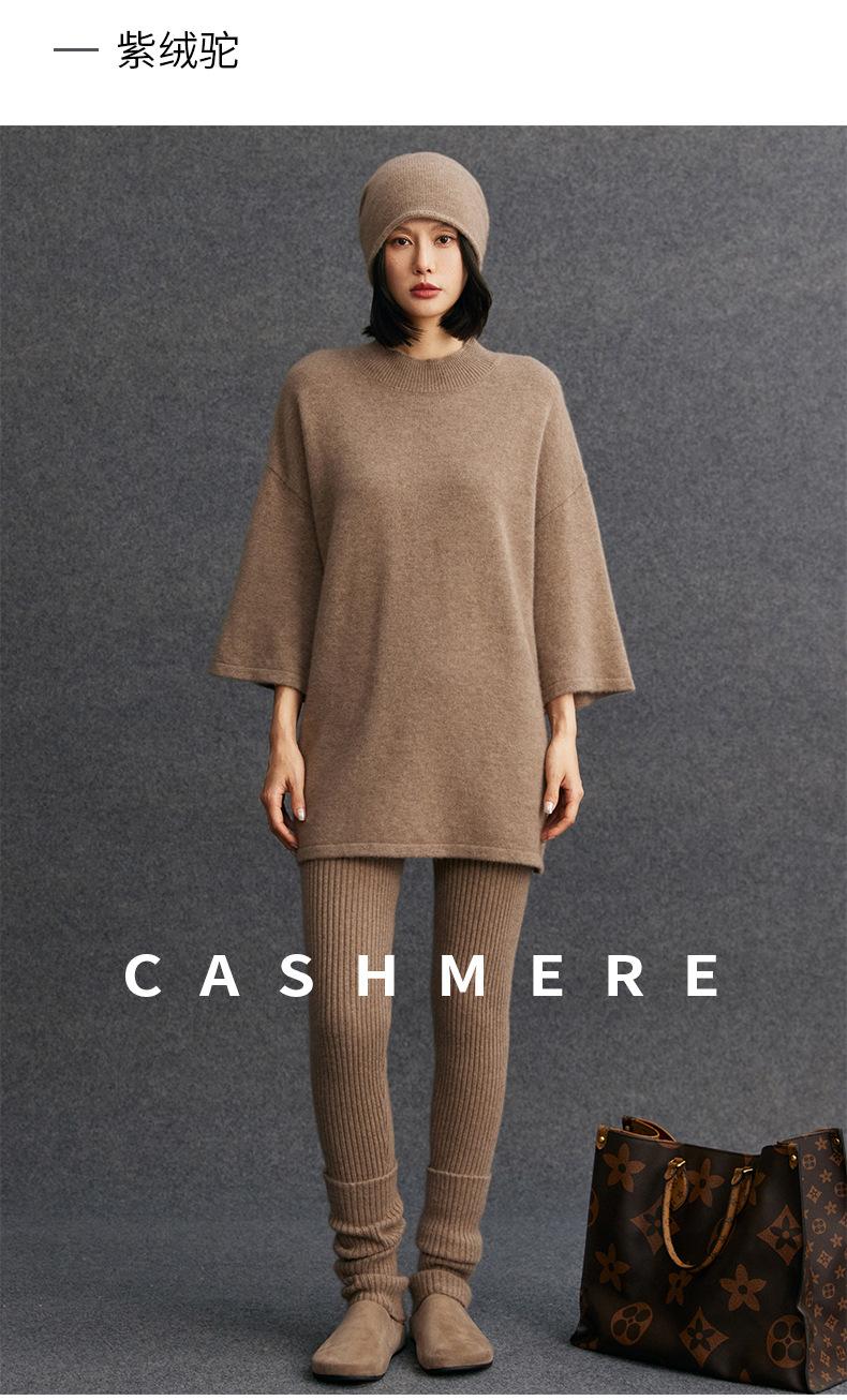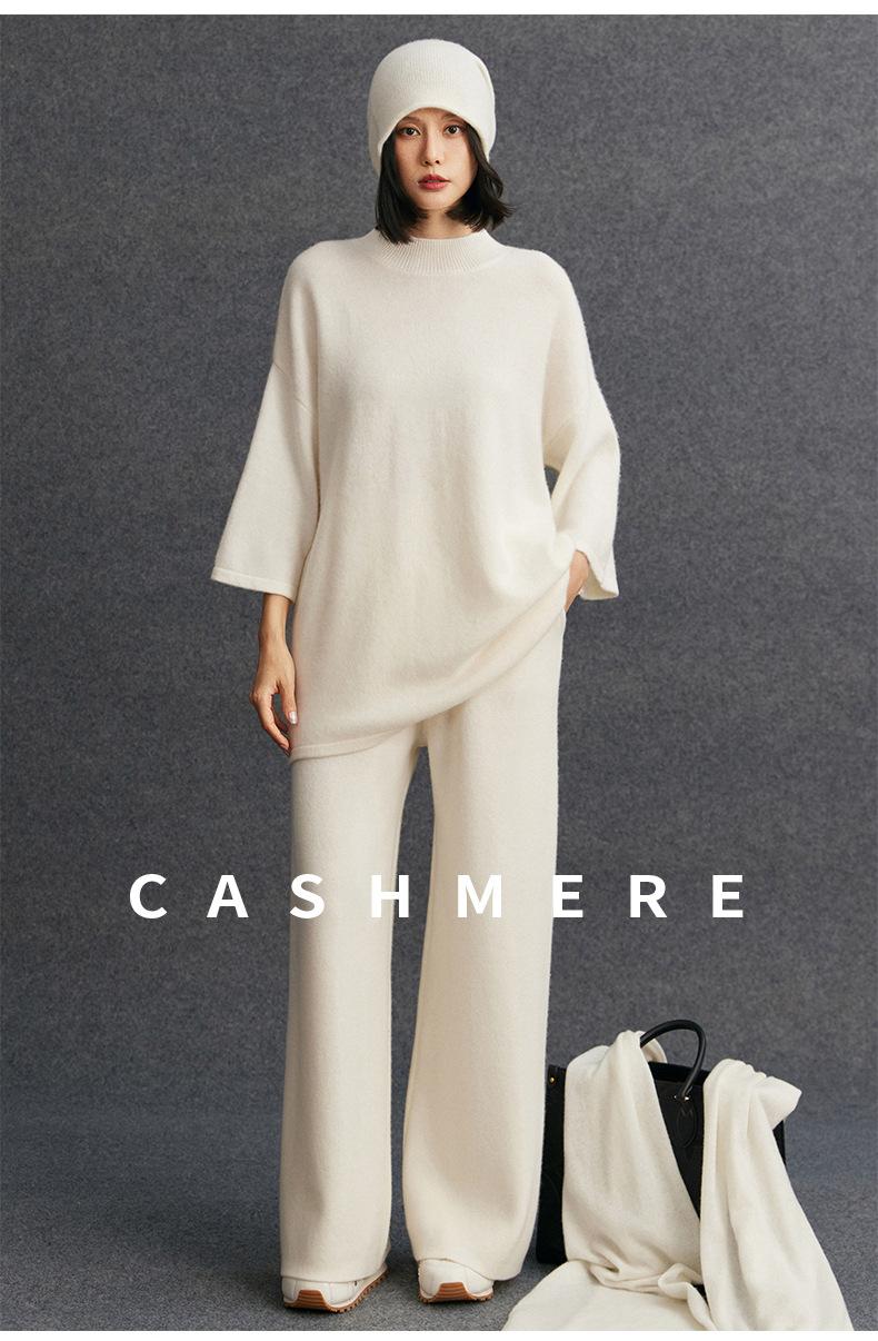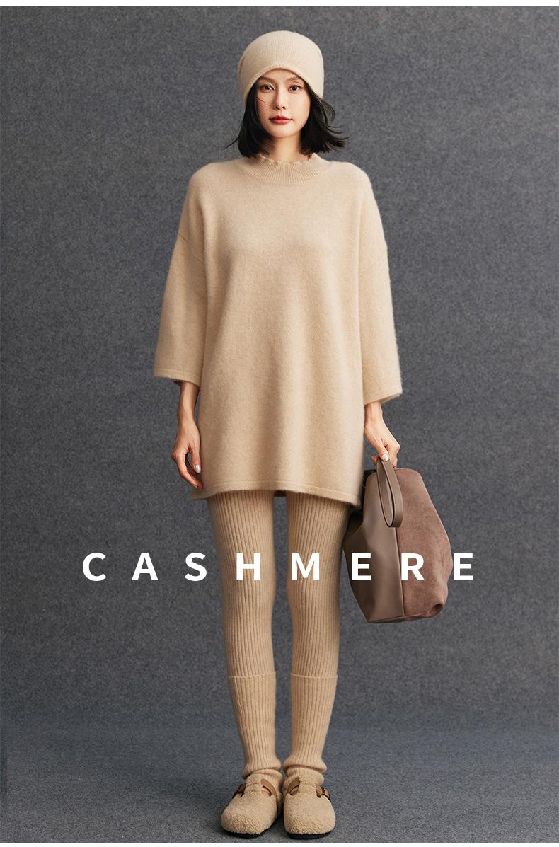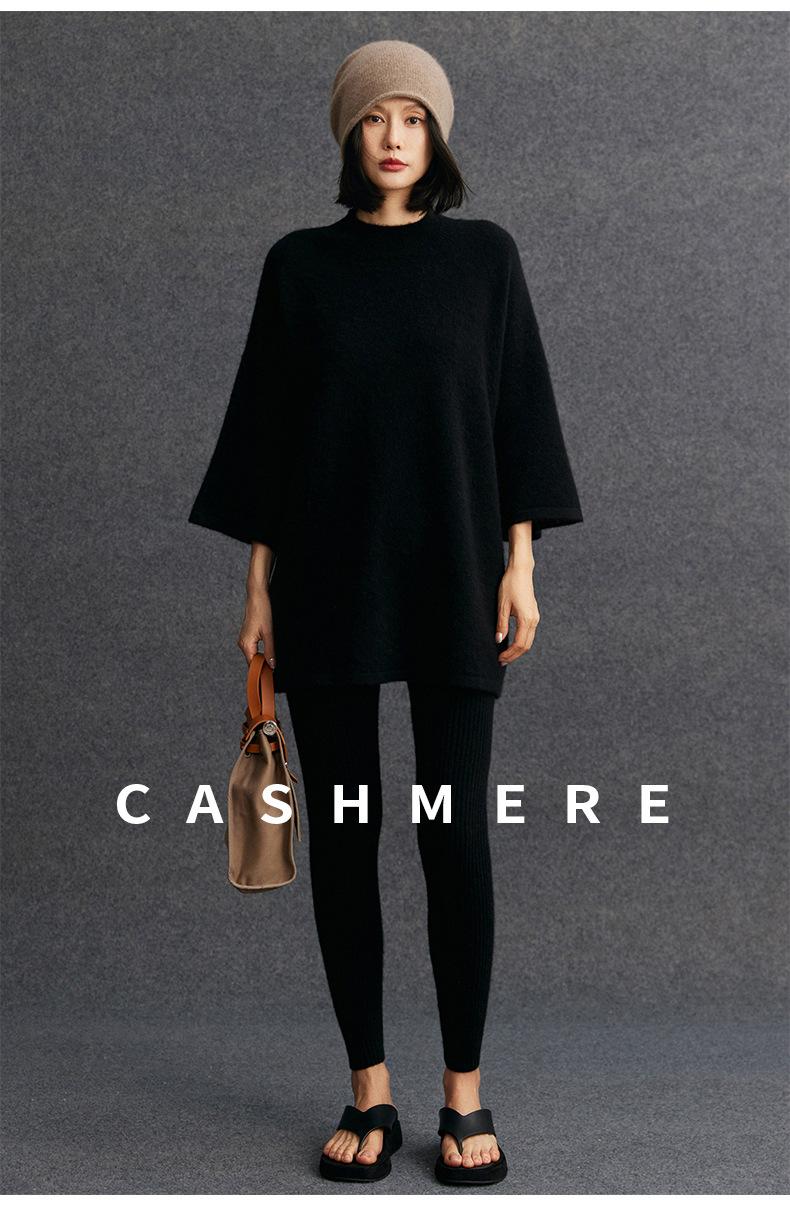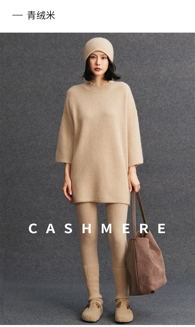 Cachemira para Mujer Cuello Medio Alto Holgado Casual Minimalista Capa Base Estilo Elegante Suéter de Cachemira Otoño e Invierno Nuevo Suéter de Punto