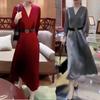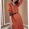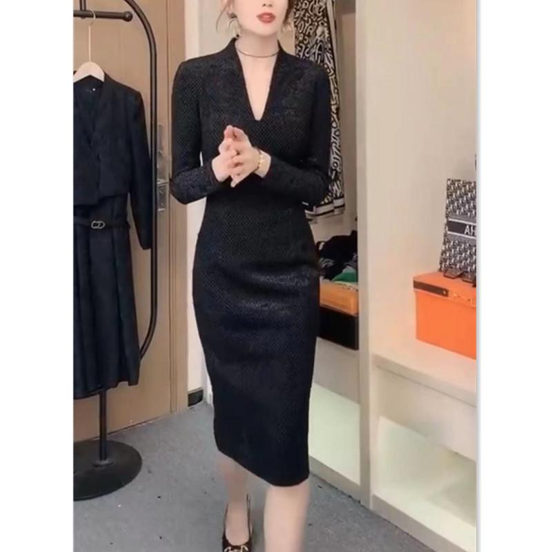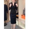 88093 Big Aimei Yiyuan 2023 Otoño e Invierno Nuevo Negro Slim-fit Cuello en V Vestido de Longitud Media Moda Adelgazante Mujeres