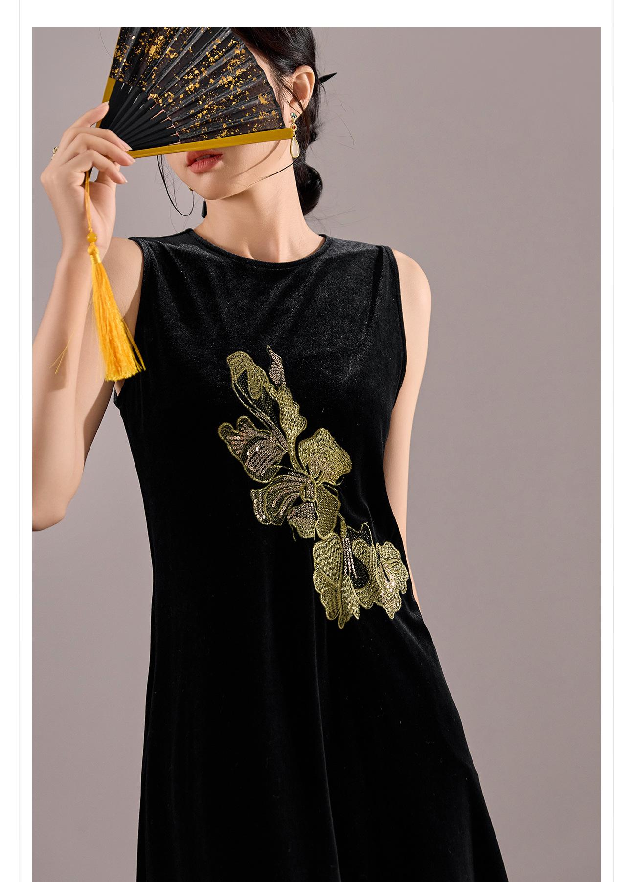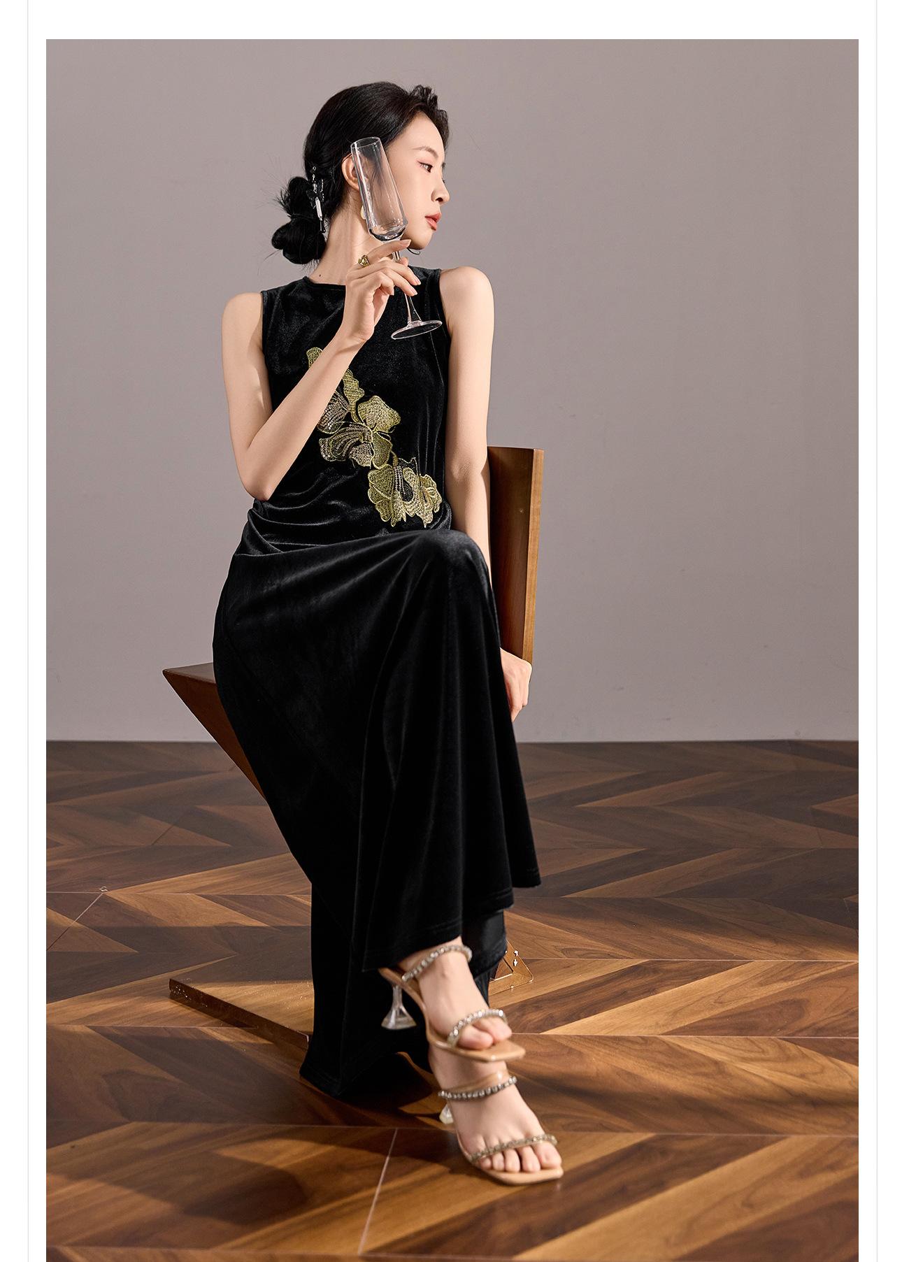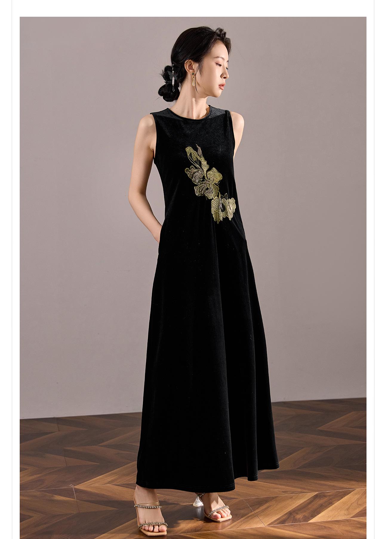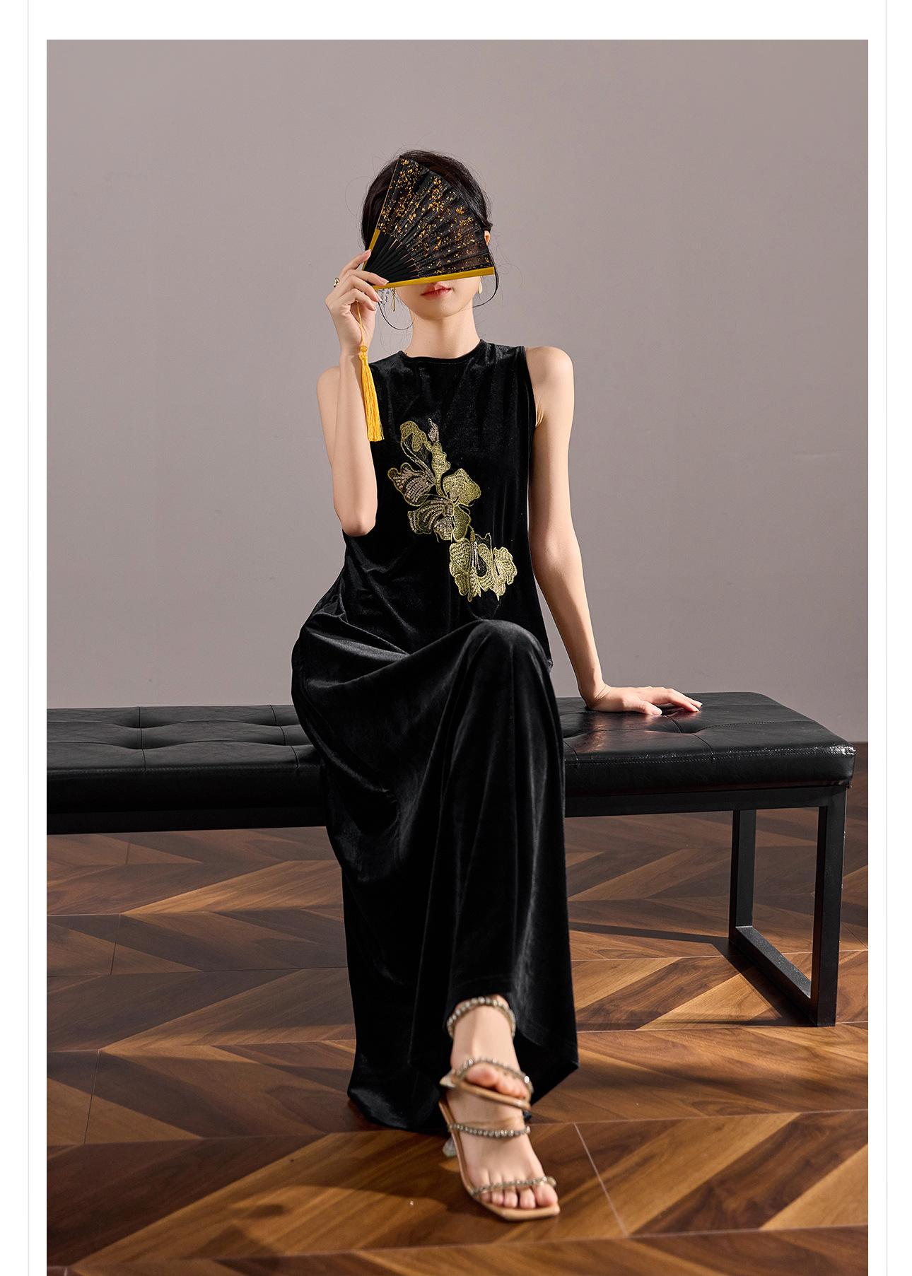 Otoño 2025 Nuevo Estilo Chino Alta Moda Falda Larga Vestido Nuevo Estilo Chino Lujo Ligero Bordado Sin Mangas Mx032