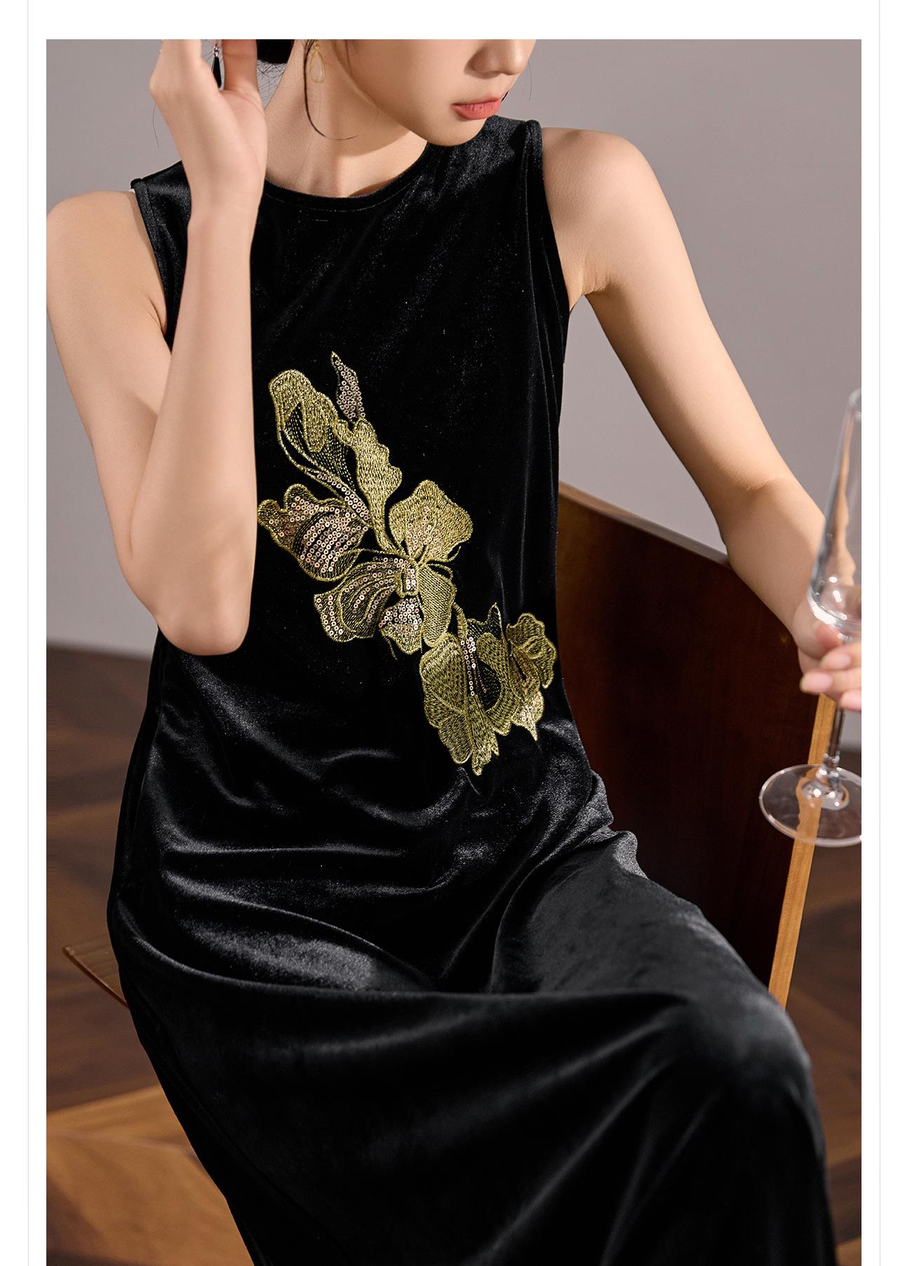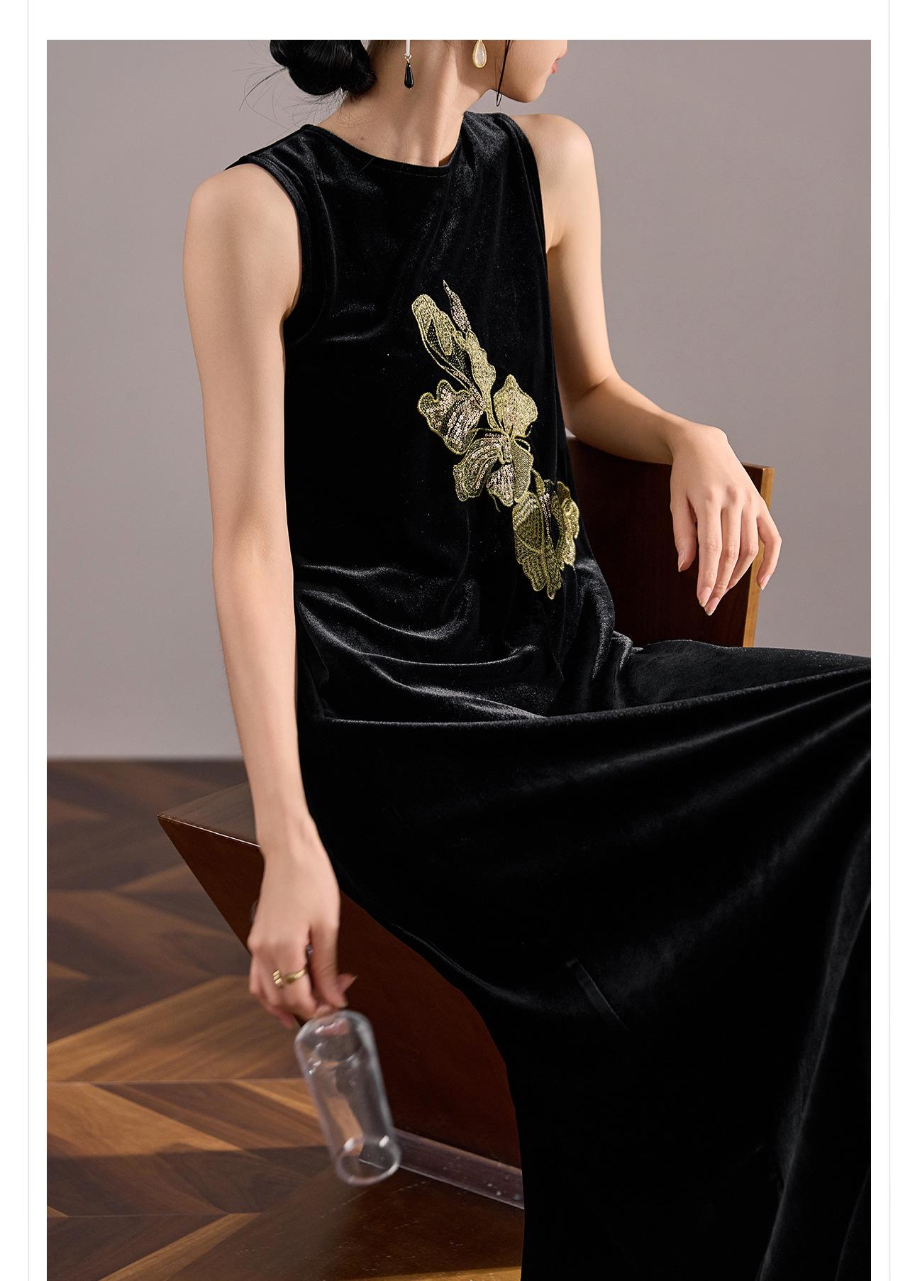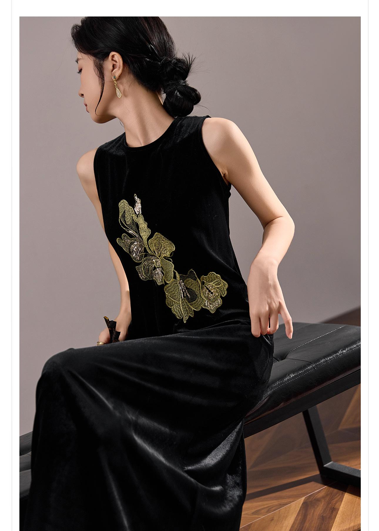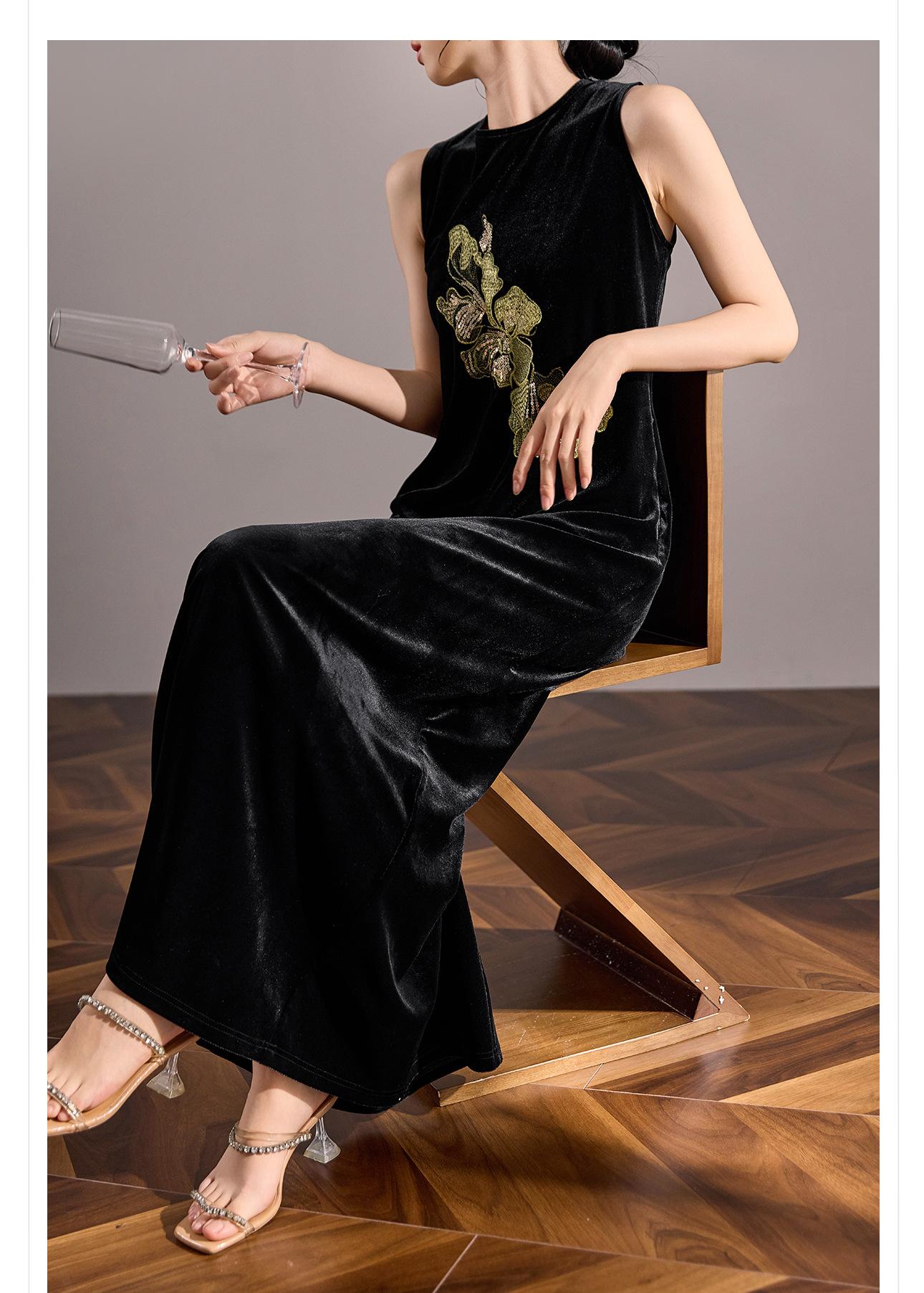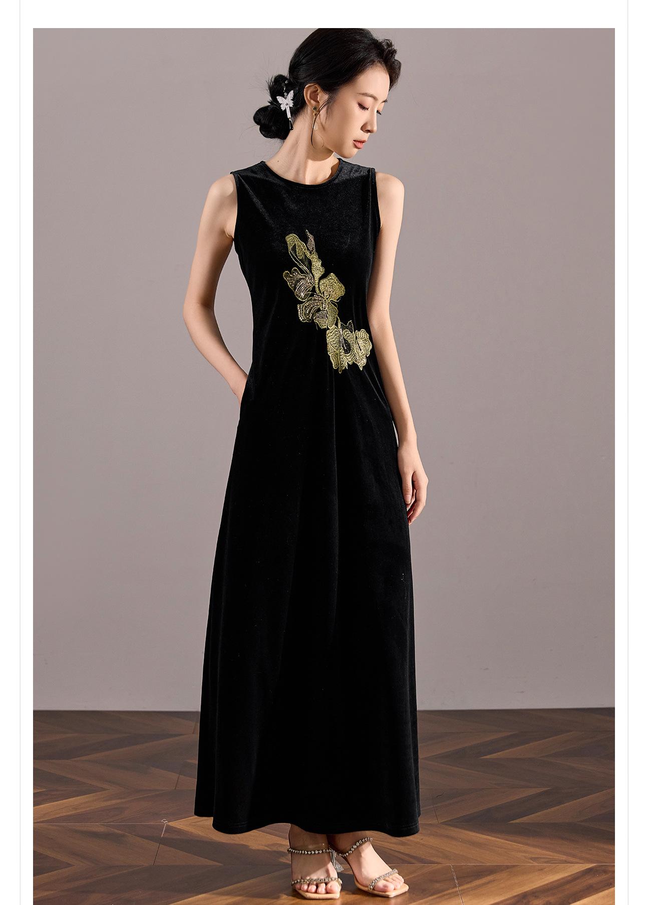 Otoño 2025 Nuevo Estilo Chino Alta Moda Falda Larga Vestido Nuevo Estilo Chino Lujo Ligero Bordado Sin Mangas Mx032