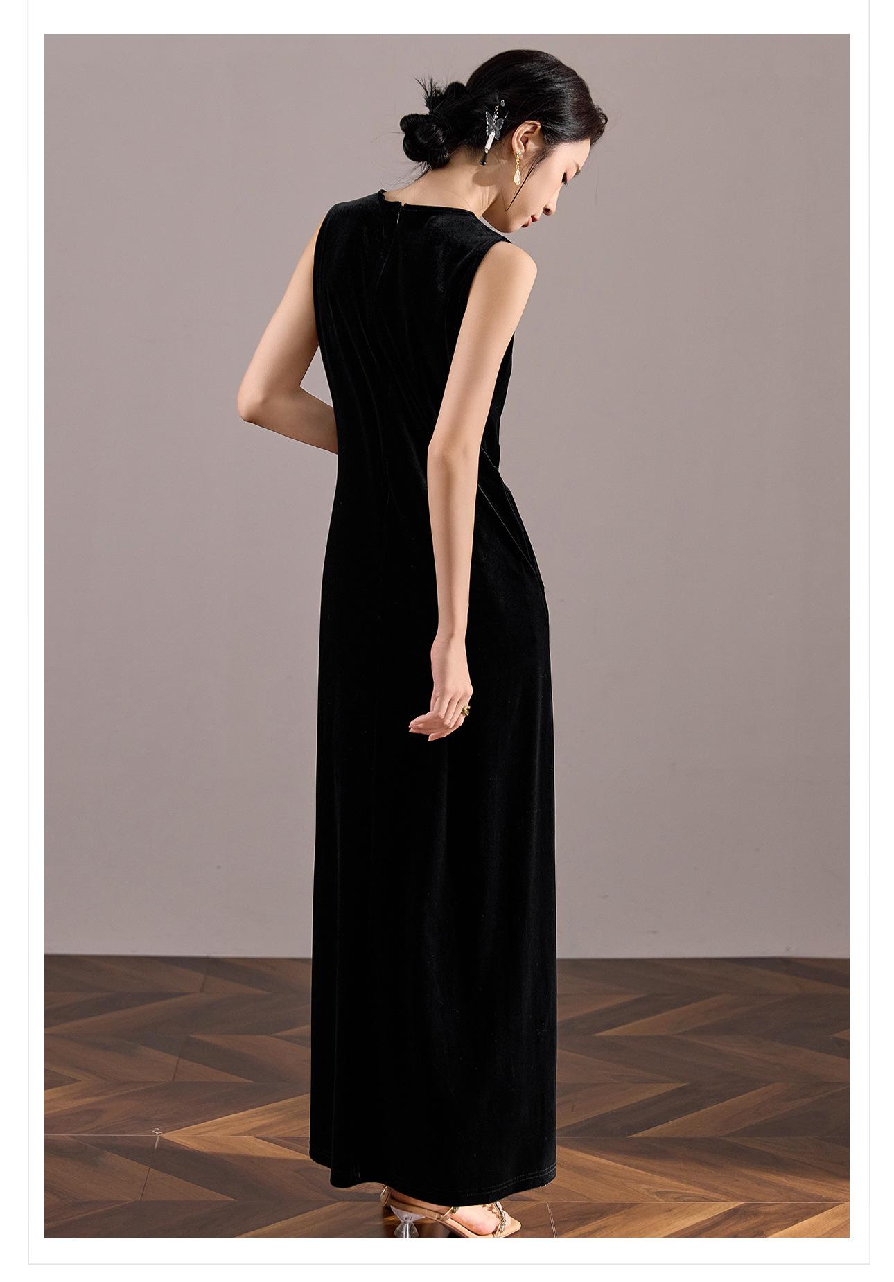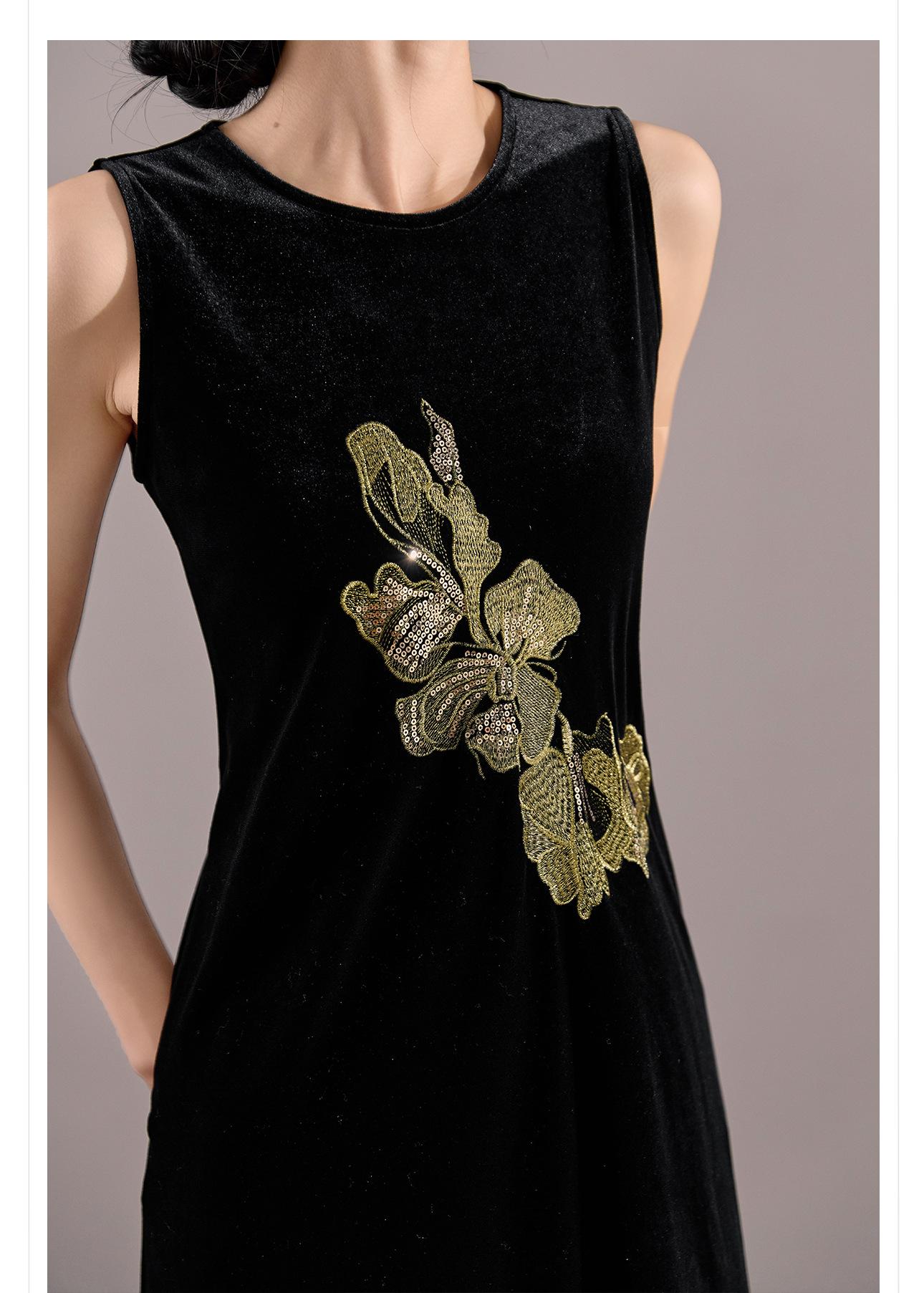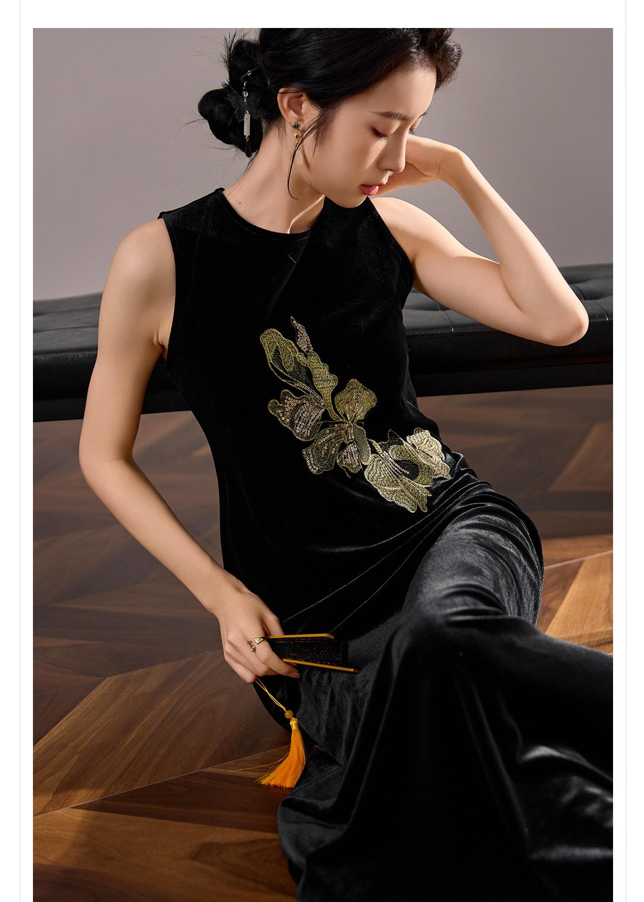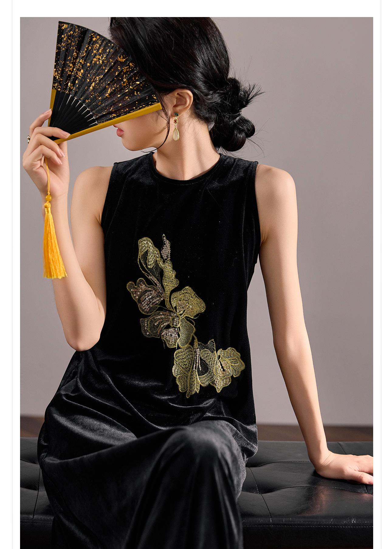 Otoño 2025 Nuevo Estilo Chino Alta Moda Falda Larga Vestido Nuevo Estilo Chino Lujo Ligero Bordado Sin Mangas Mx032