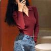 Para ella una cucharada de dulce otoño minimalista básico versátil multicolor capa base ropa interior suéter de punto de manga larga mujer 92369
