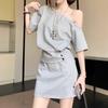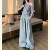 Ins estilo chica hot conjunto de chaleco tejido 2025 verano nuevo sexy hombros descubiertos ceñido a la cintura top camisola con cordones