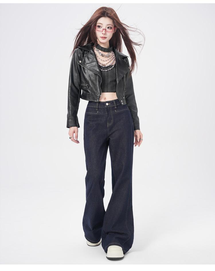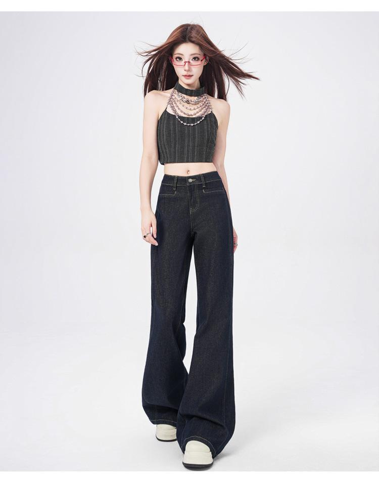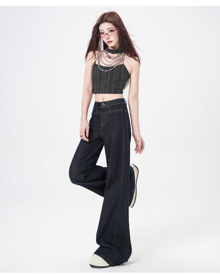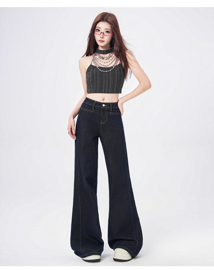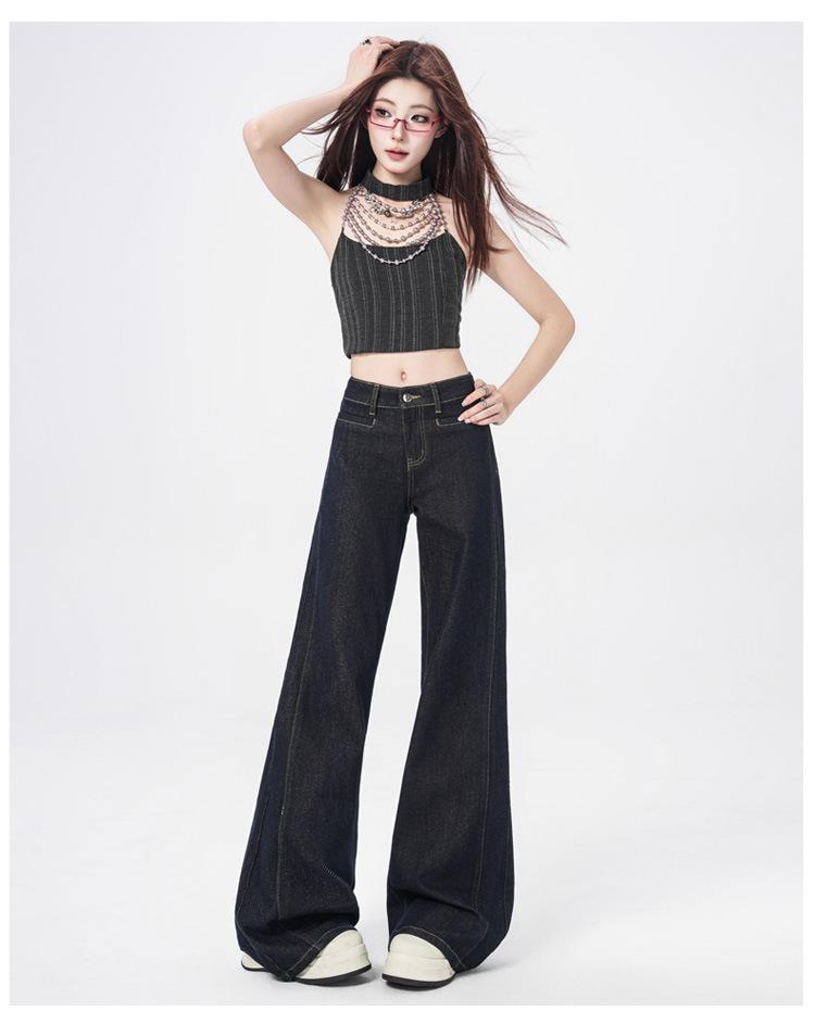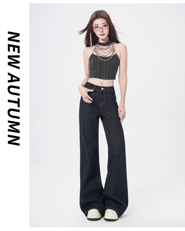 2025 Nuevo Jeans de Mezclilla Elásticos que No se Decoloran Micro-Acampanados Jeans para Mujer Azul Oscuro Pantalones Largos Mezclilla Algodón