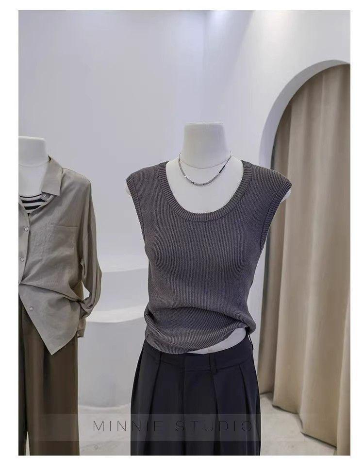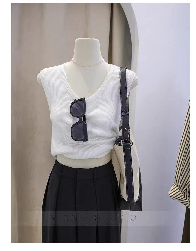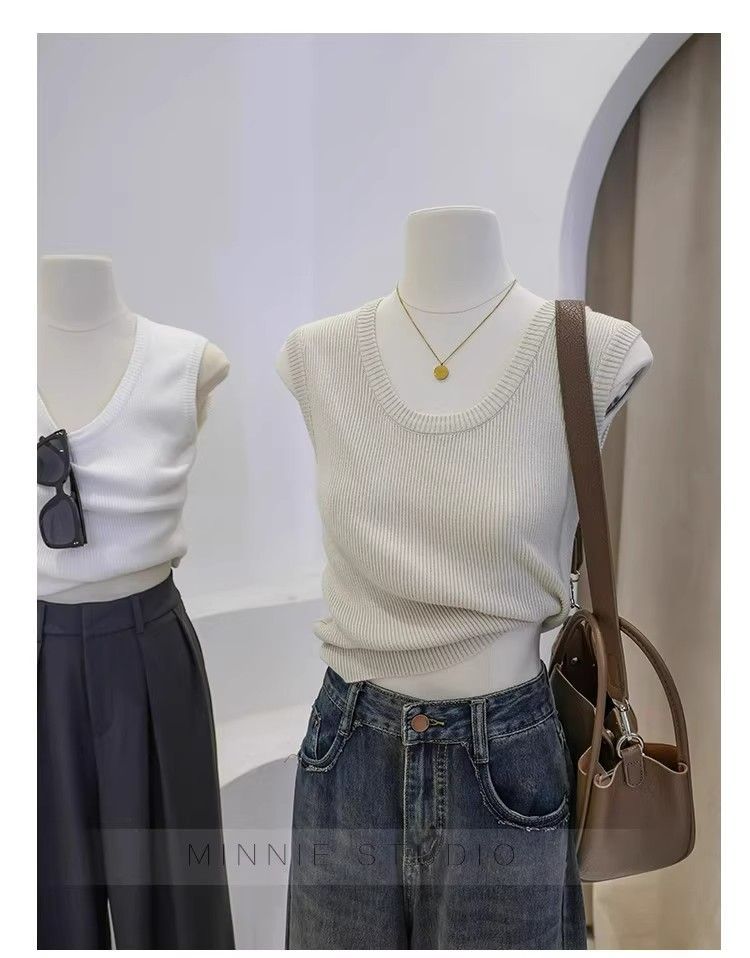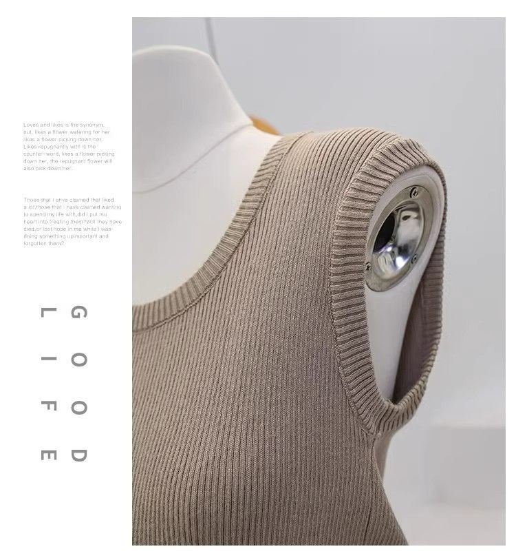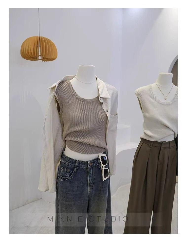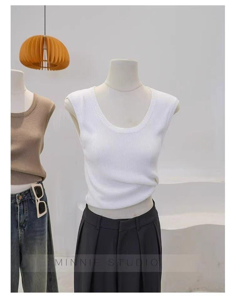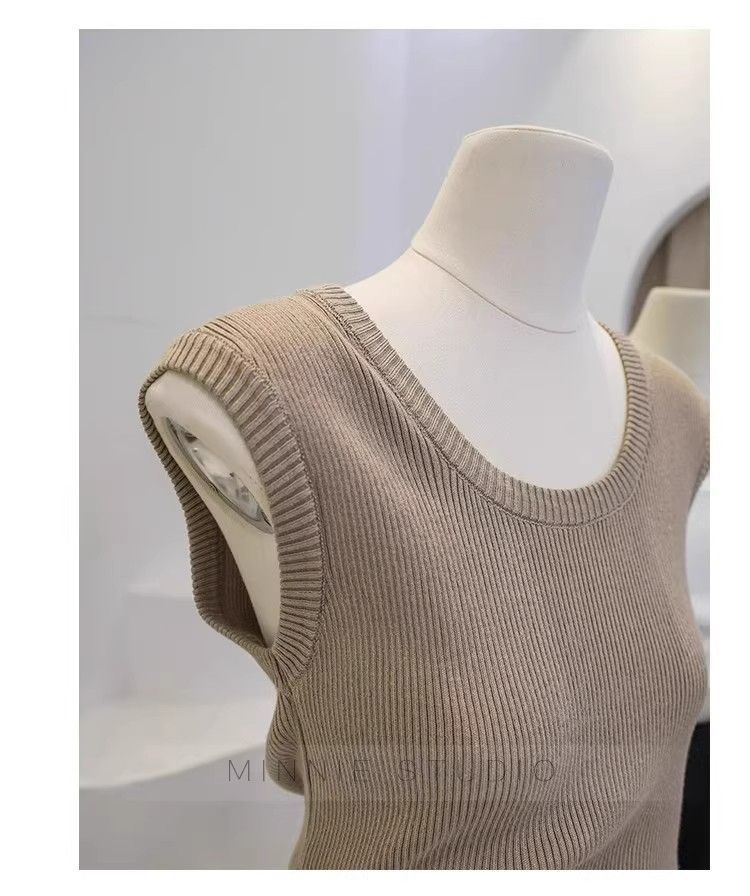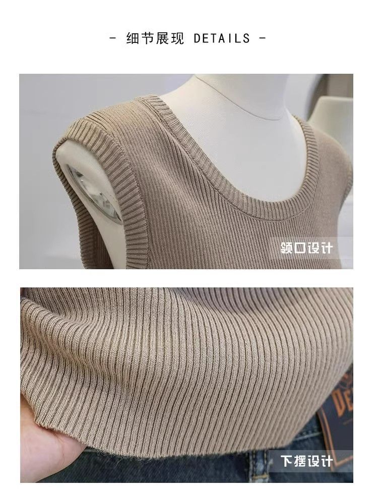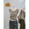 Camisola de punto con cuello en U para mujer, primavera y otoño, ropa interior, camiseta base, elástica pura, corte ajustado, adelgazante, top sin mangas