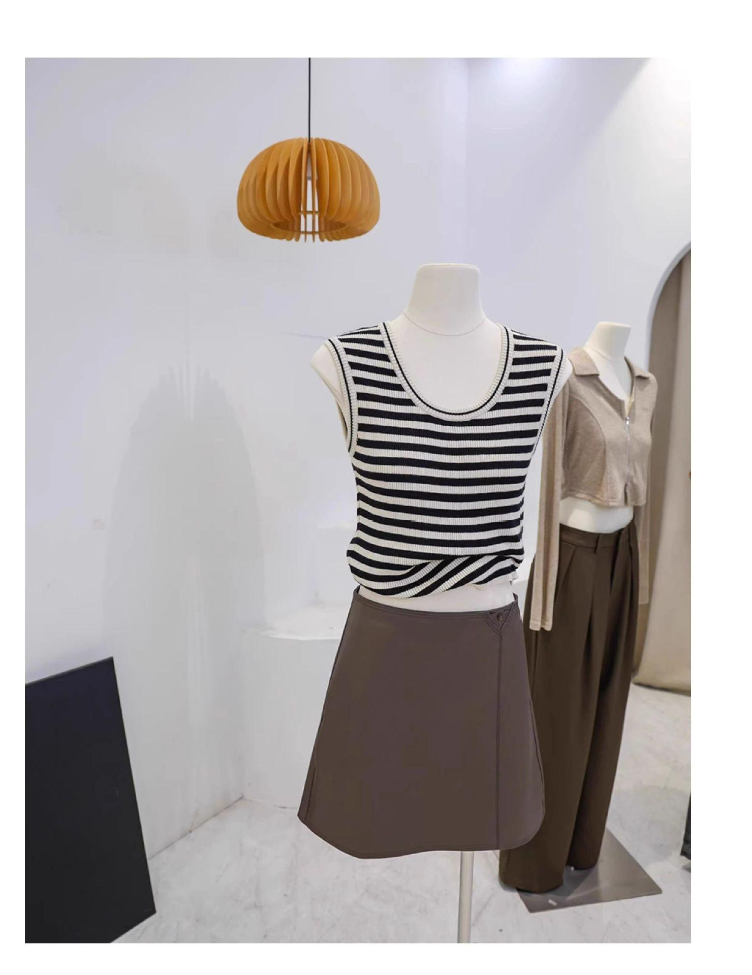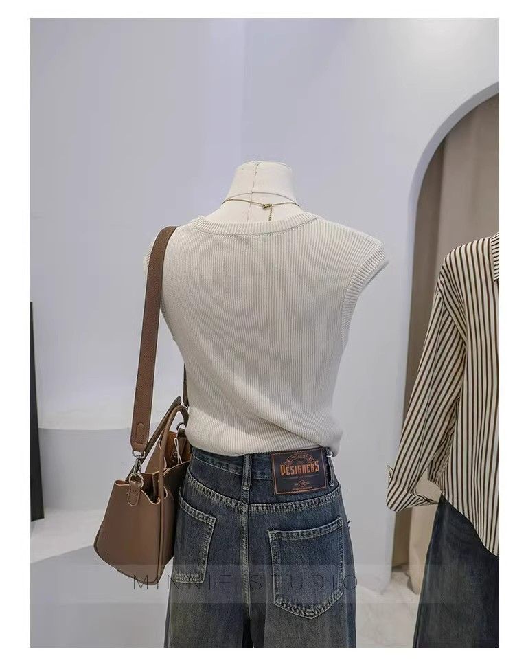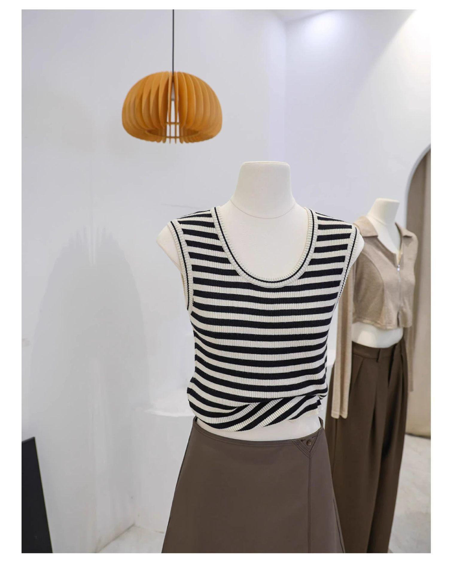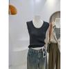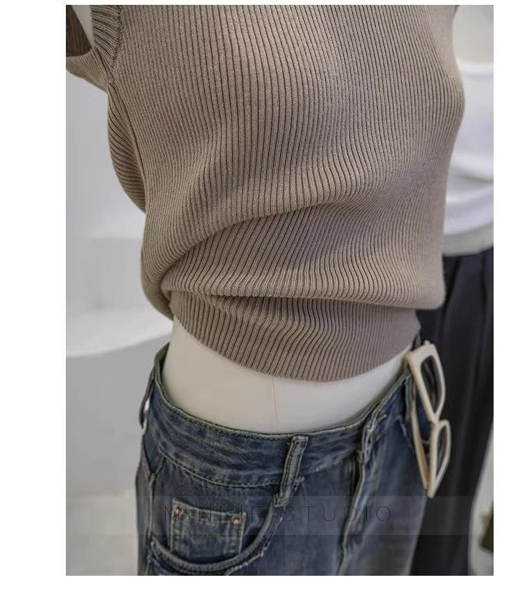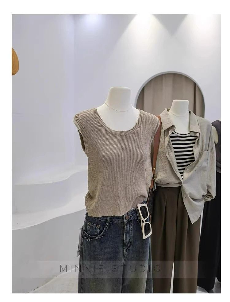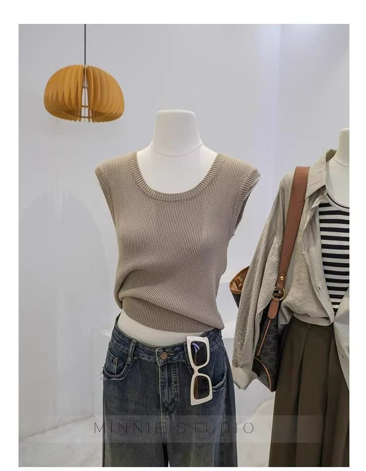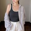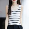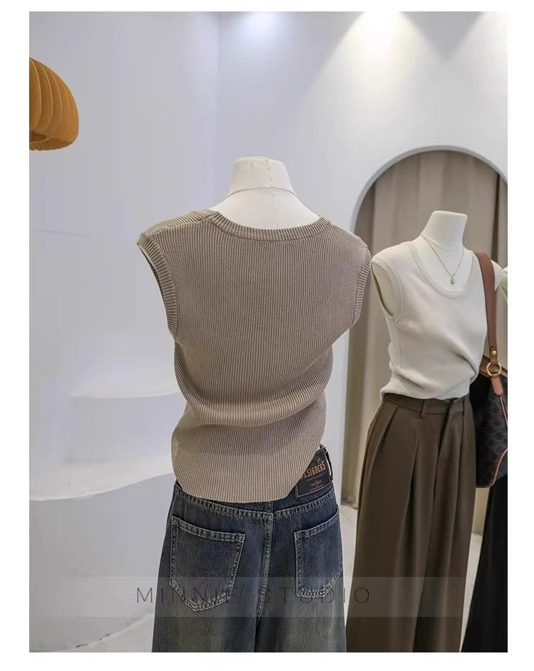 Camisola de punto con cuello en U para mujer, primavera y otoño, ropa interior, camiseta base, elástica pura, corte ajustado, adelgazante, top sin mangas