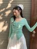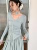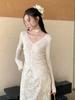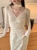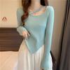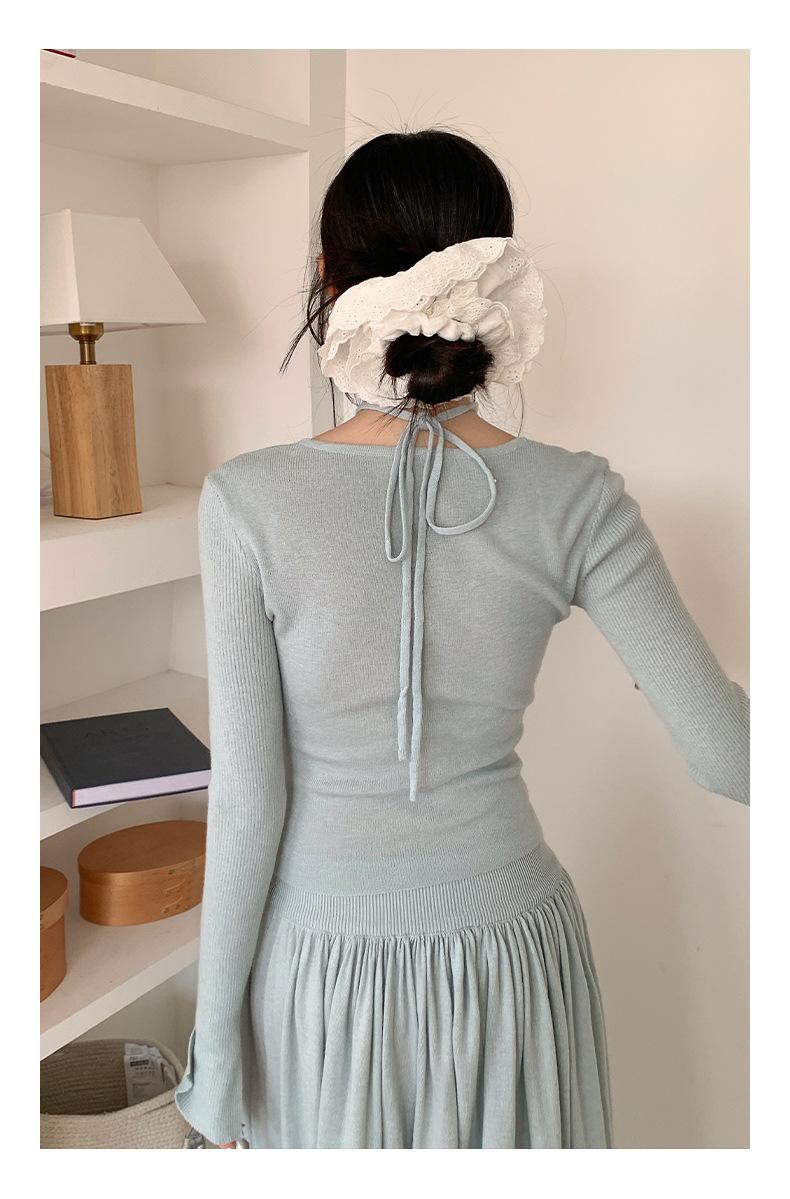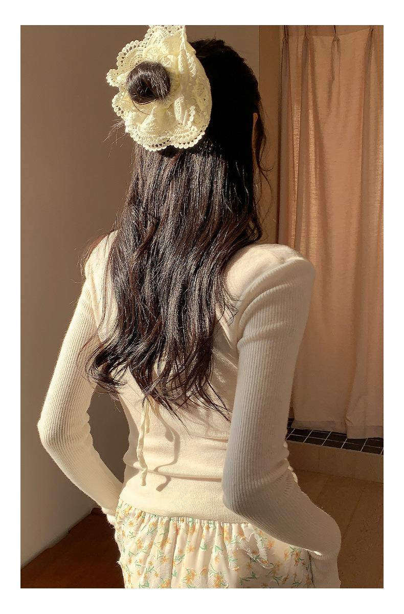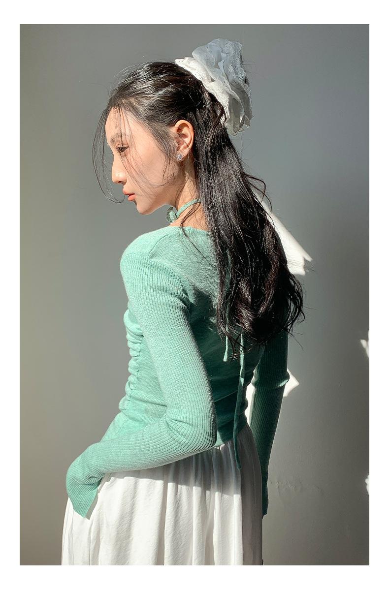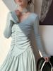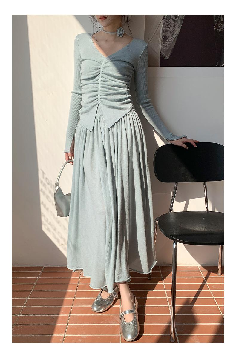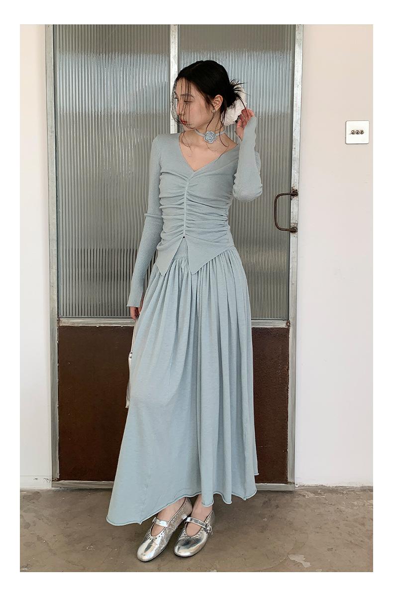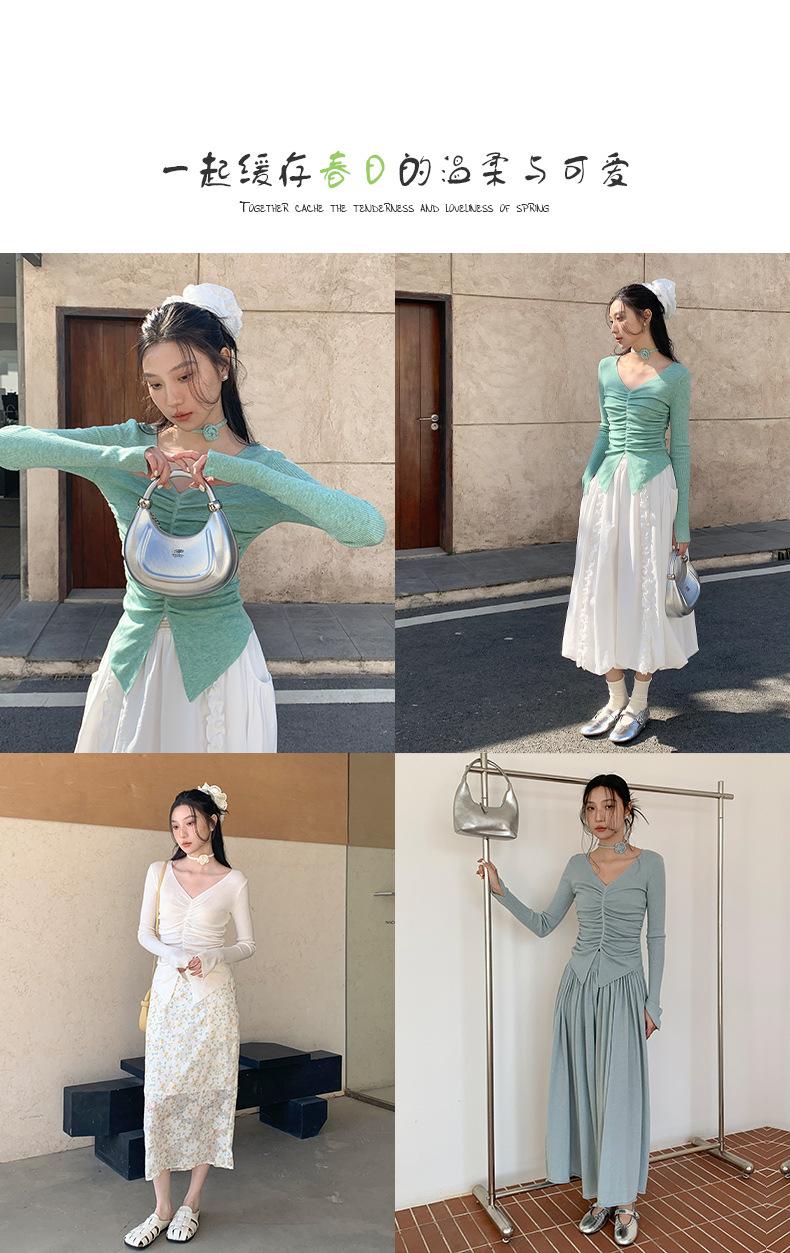 Yi Er Shan Chic Rosa Francés Sentido de Alta Gama Fruncido Adelgazante Cuello en V Suéter Tejido de Manga Larga para Mujer Temperamento 0342