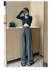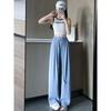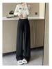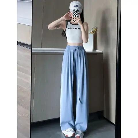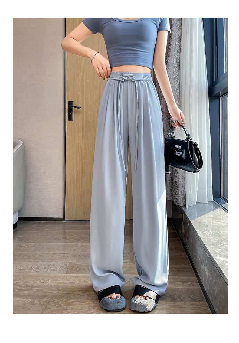 Pantalones de Verano de Pierna Ancha para Mujer Pantalones Drapeados para Mujer Verano Nuevo Pantalones Casuales con Lazo Cintura Alta Pierna Recta Largo hasta el Piso Pantalones de Traje