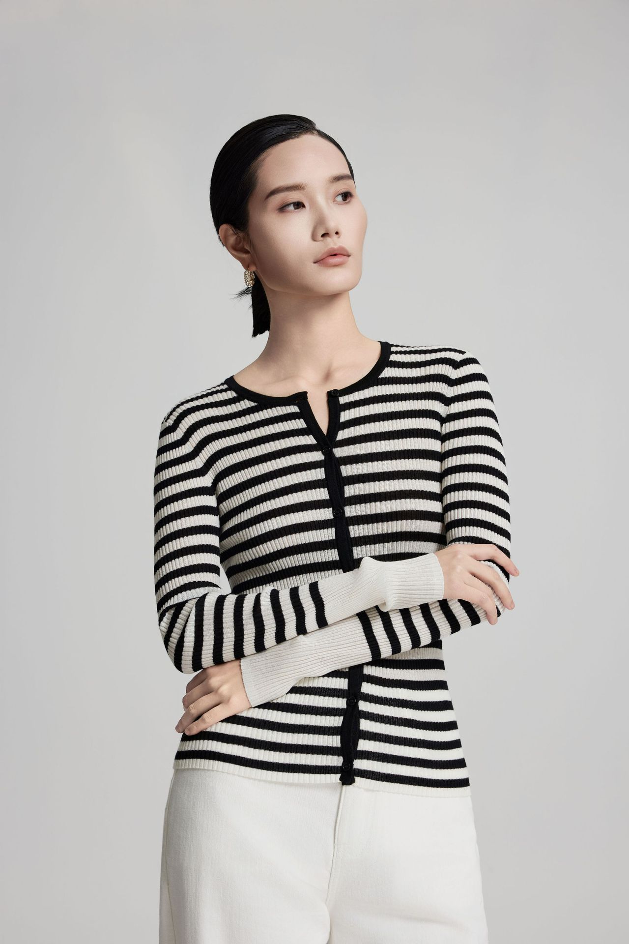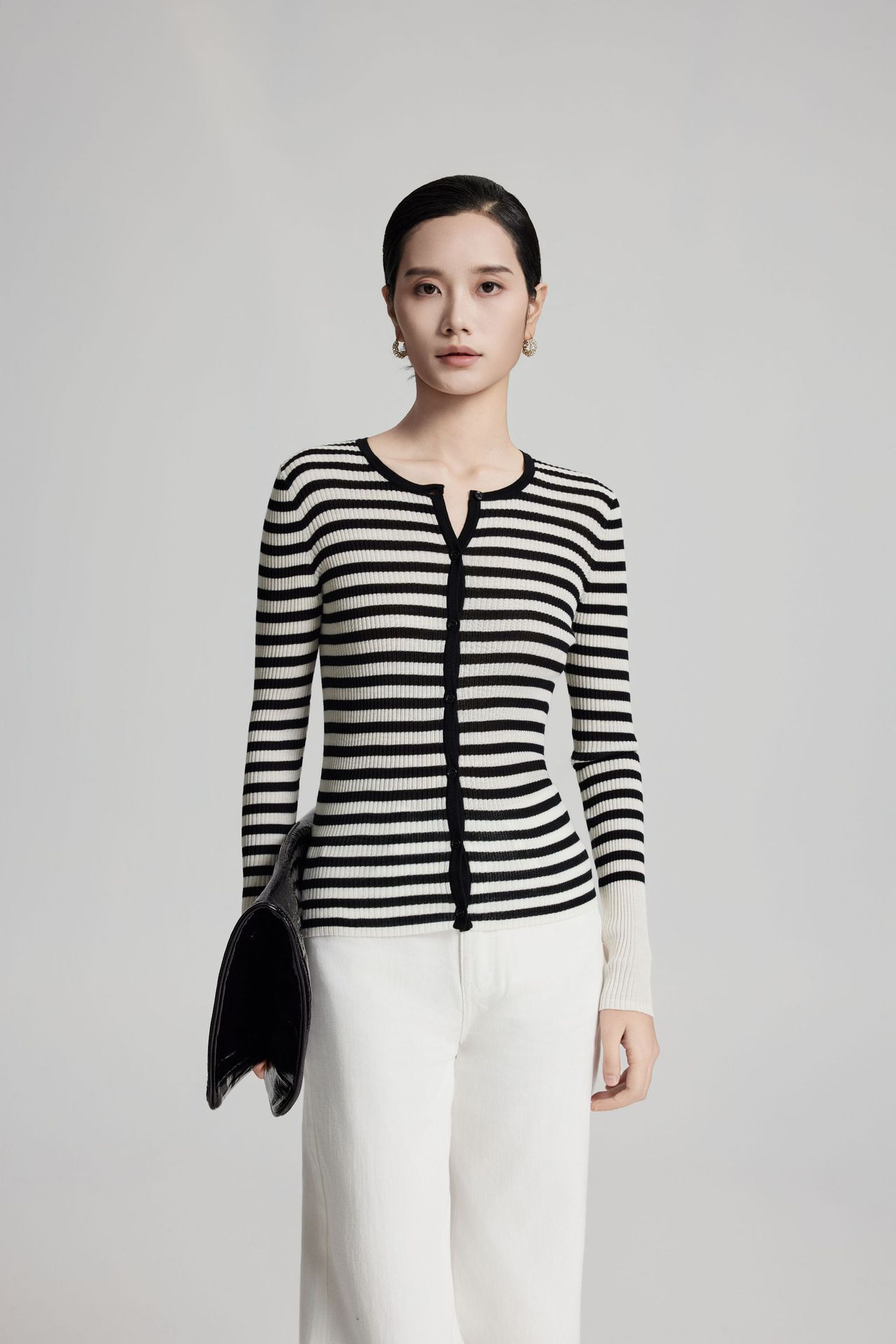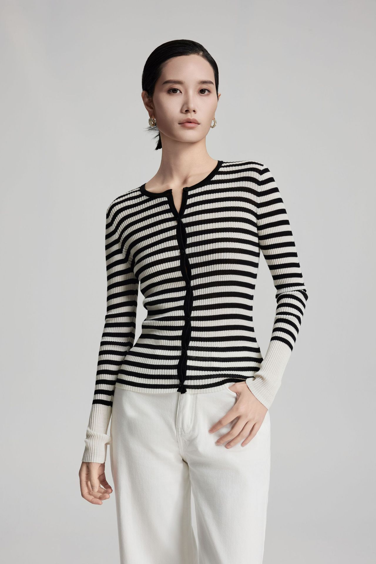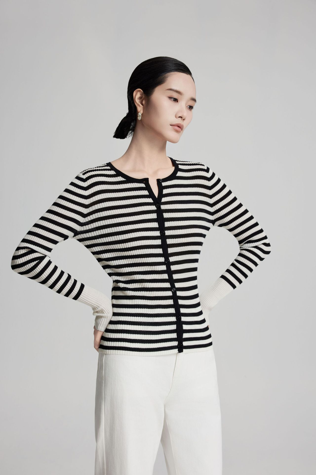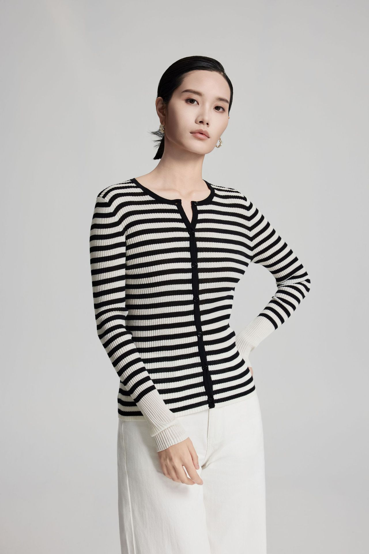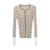 2025 Spring New Fashion Round Neck Striped Single-Breasted Wool Knit Cardigan Women's Outerwear