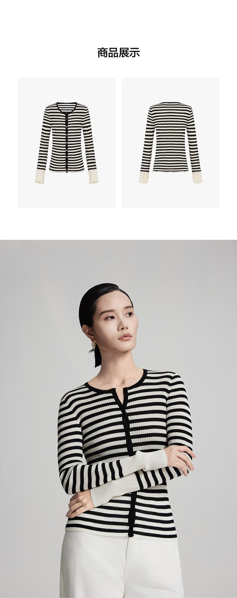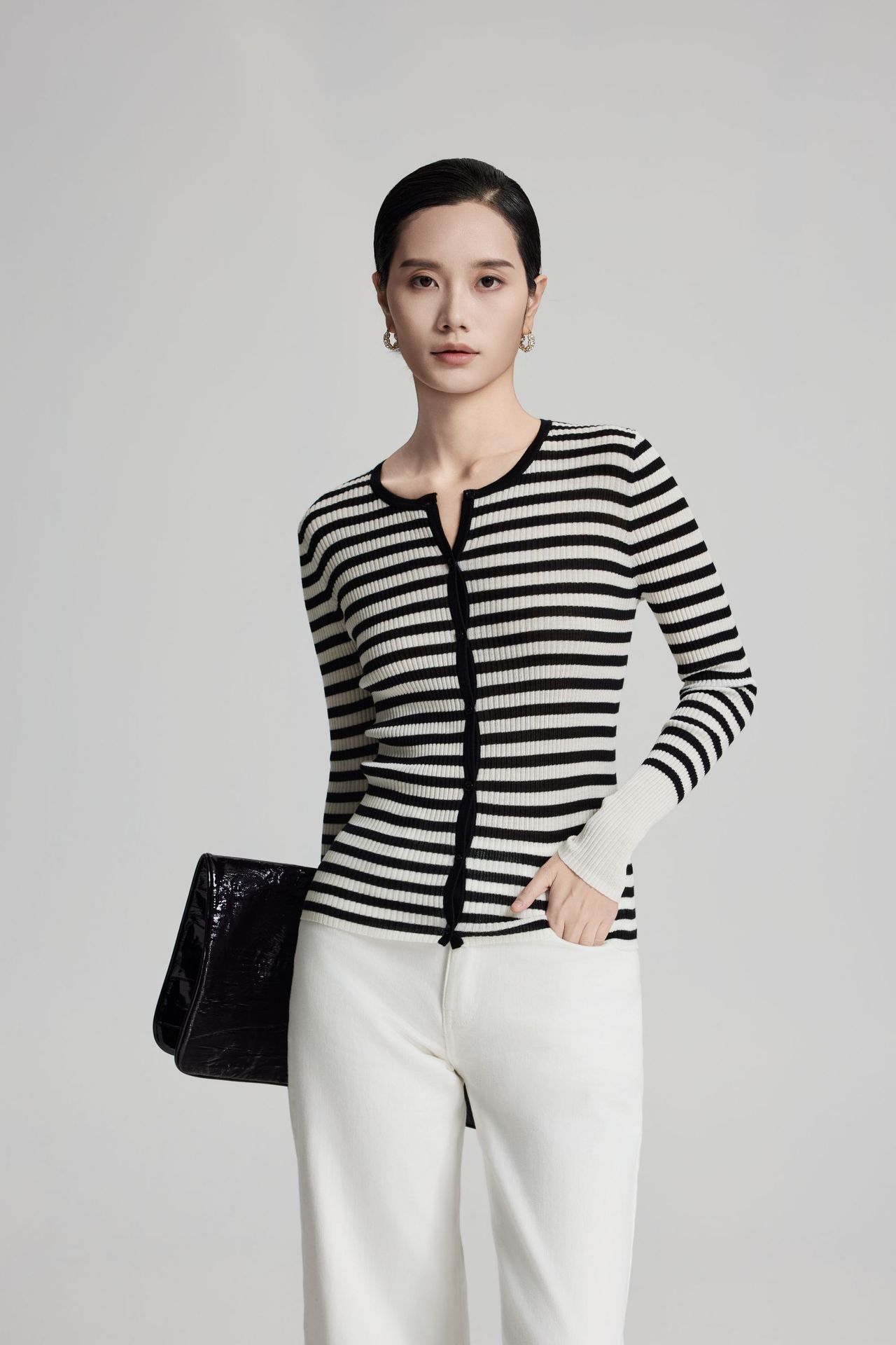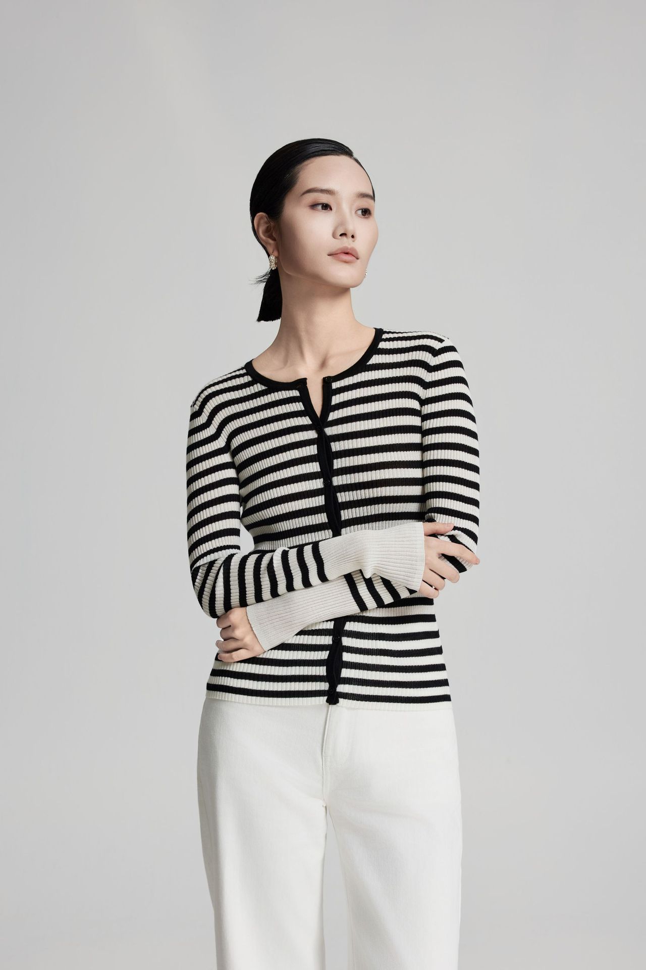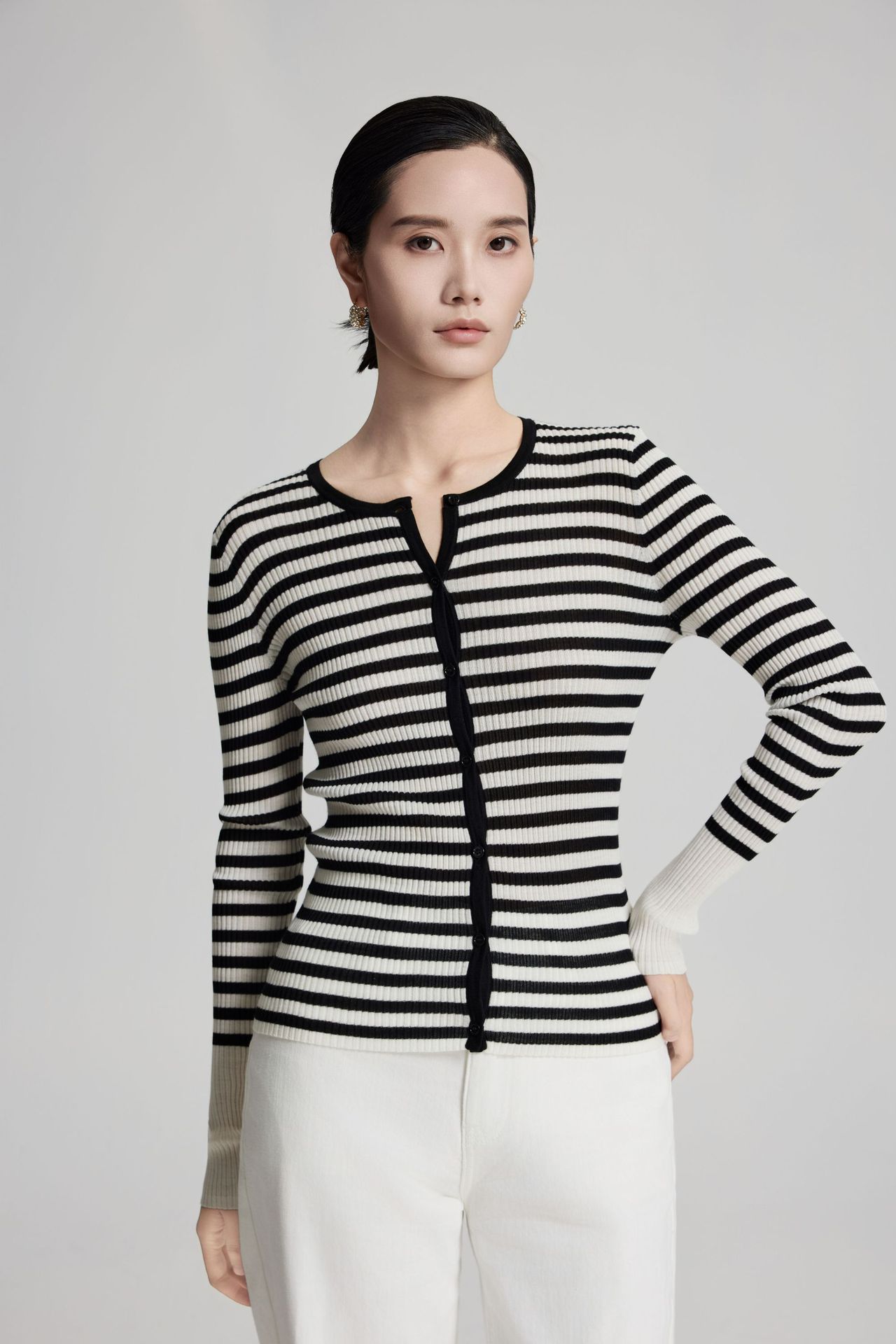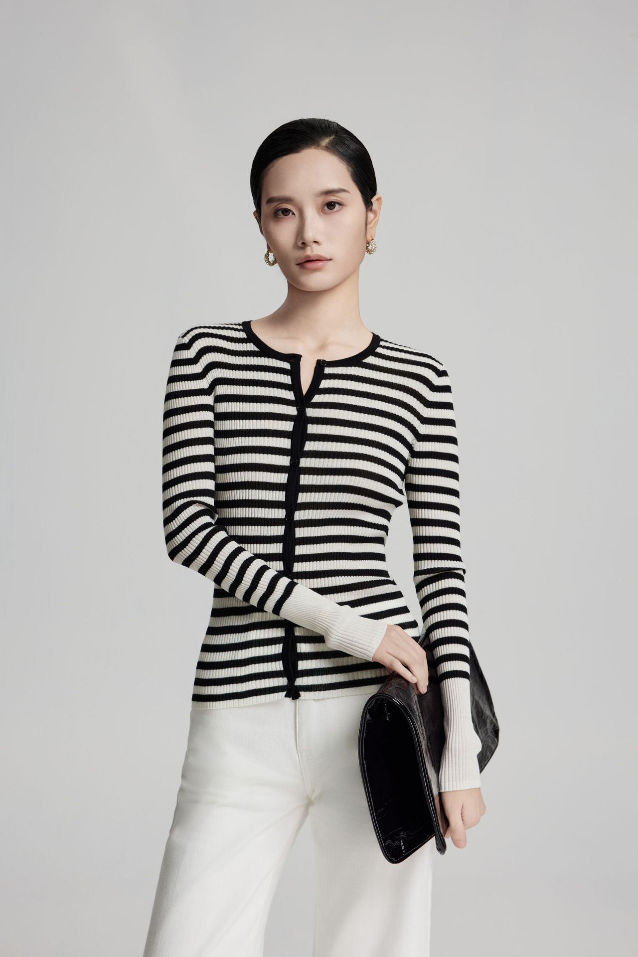 2025 Spring New Fashion Round Neck Striped Single-Breasted Wool Knit Cardigan Women's Outerwear