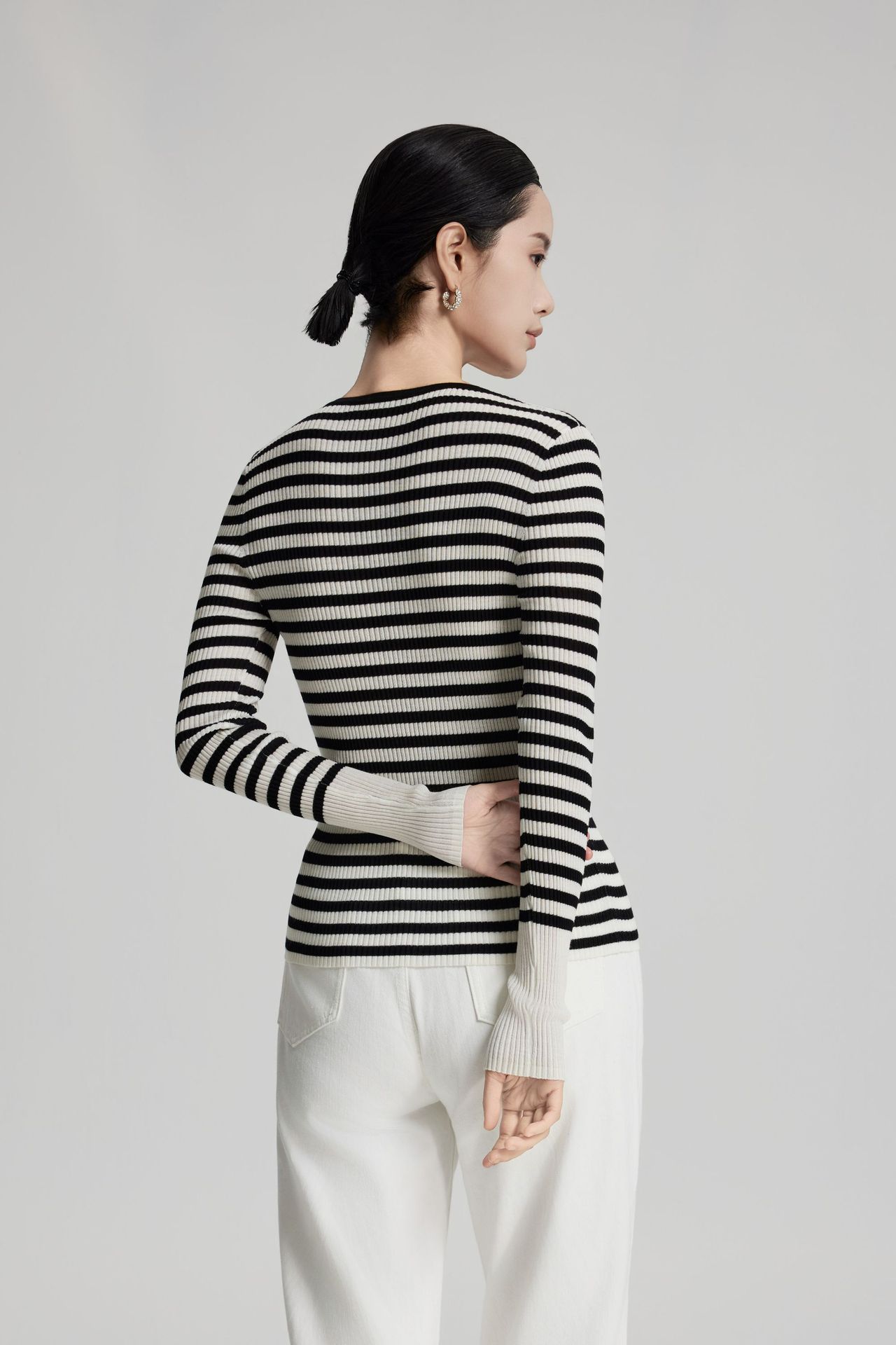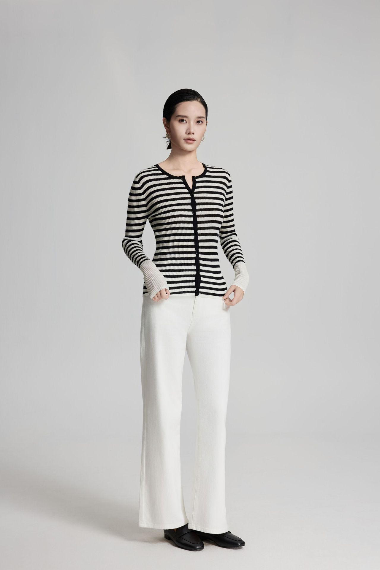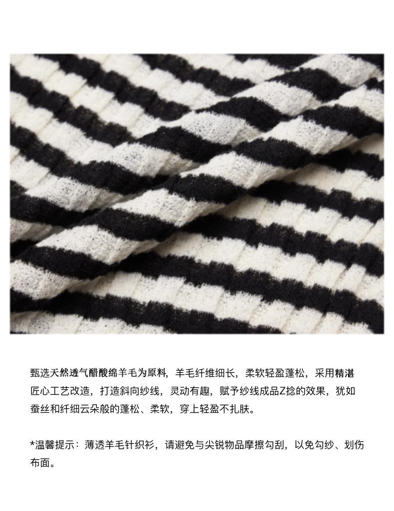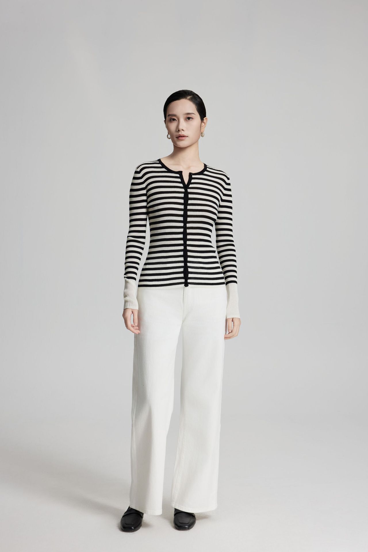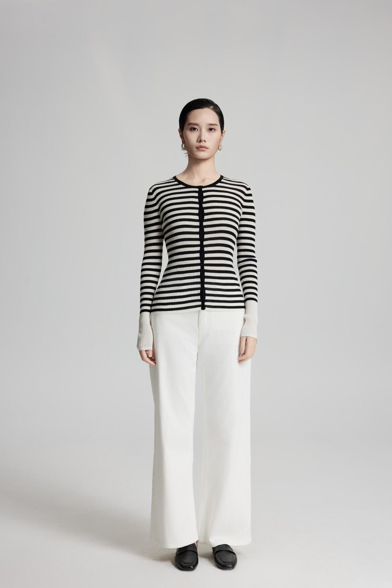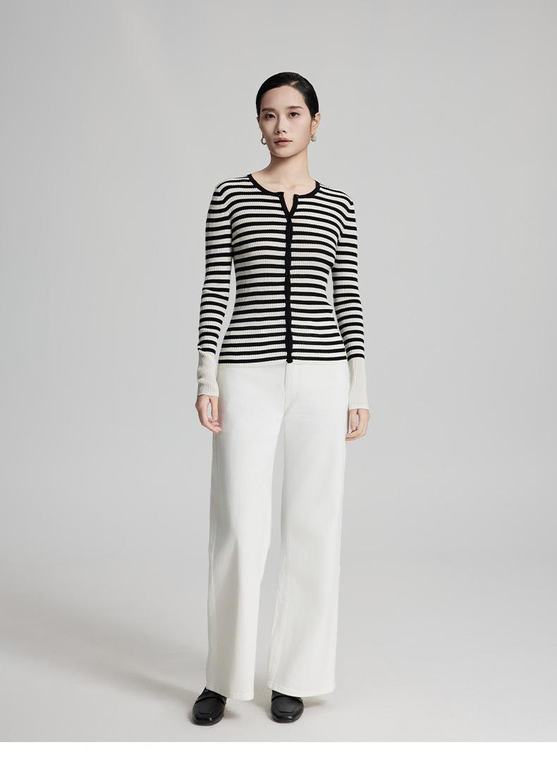 2025 Spring New Fashion Round Neck Striped Single-Breasted Wool Knit Cardigan Women's Outerwear