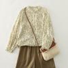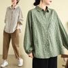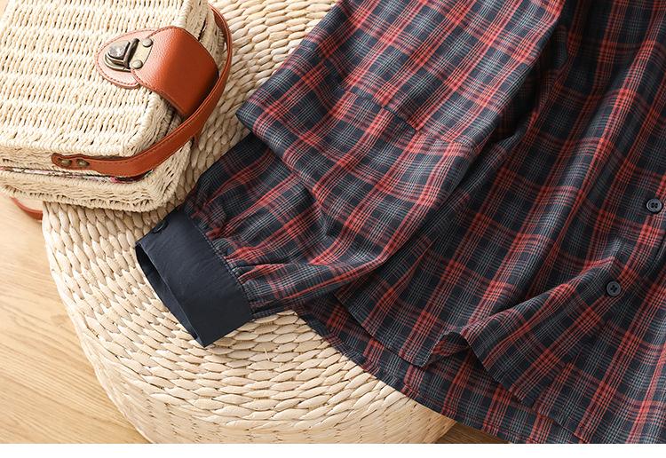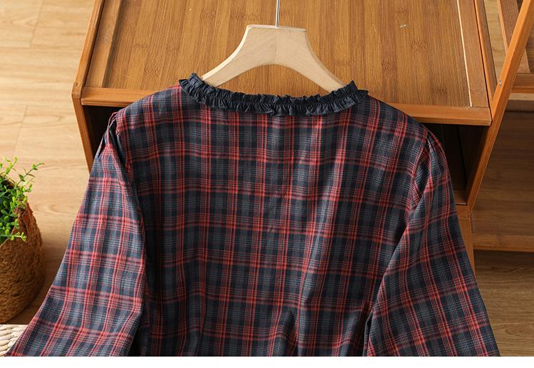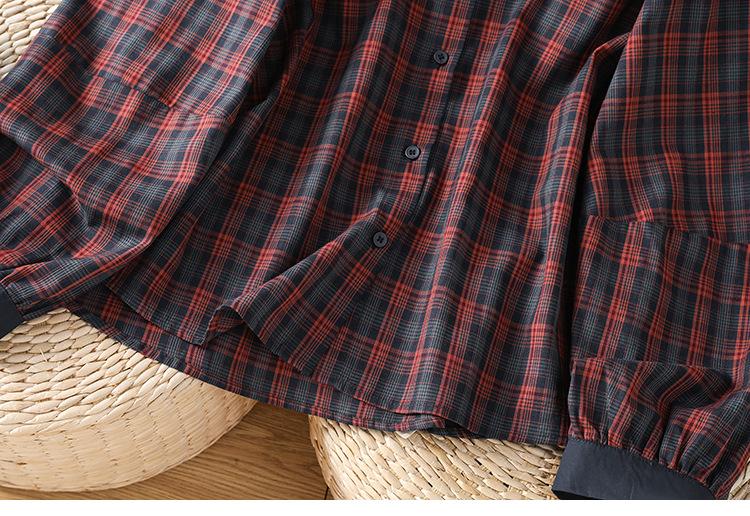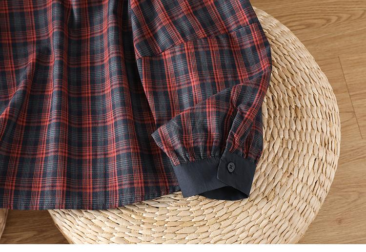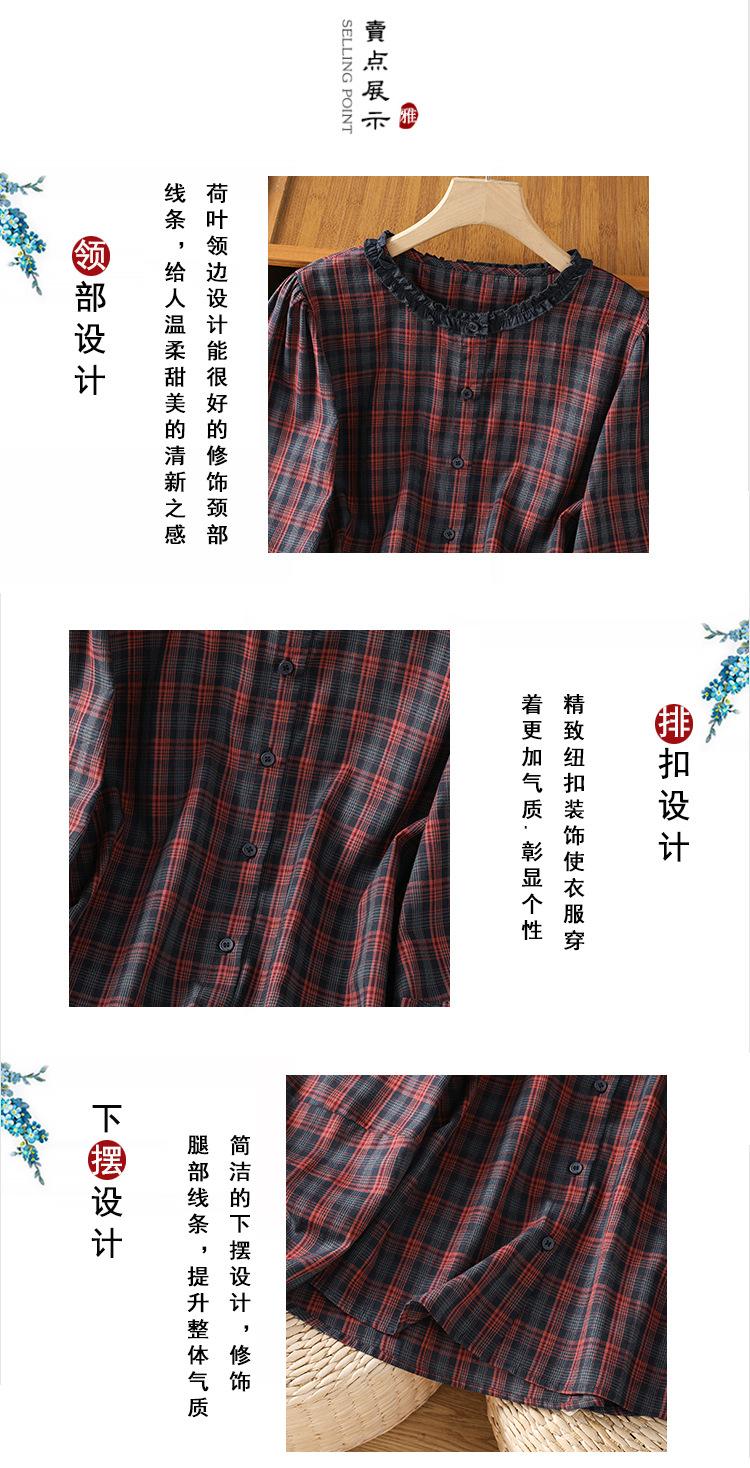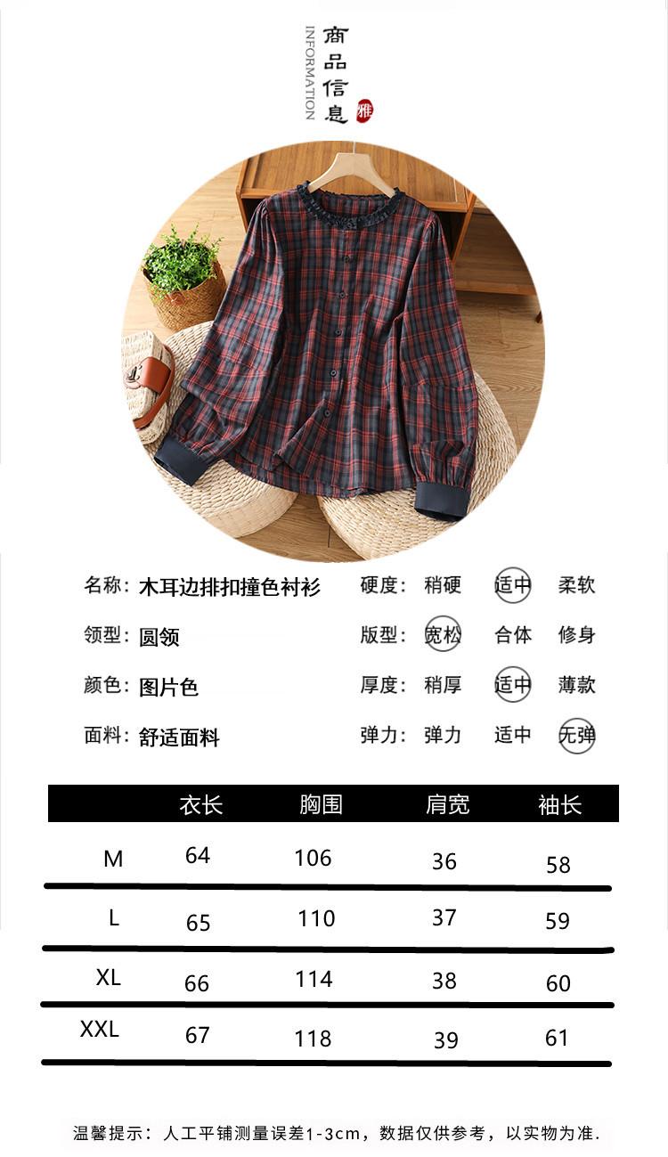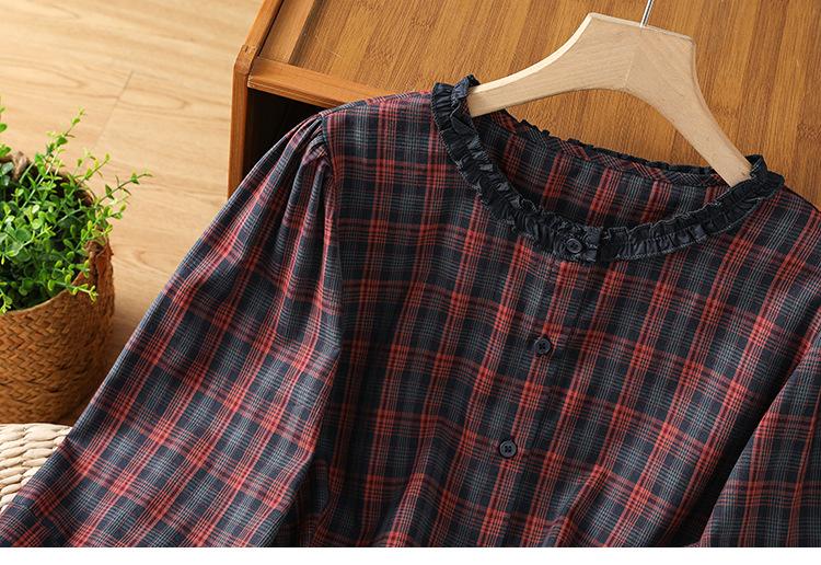 Foto Real 2025 Casual Sencillo Cuadros Cuello de Encaje Suelto Moda Estilo Extranjero Versátil Adelgazante Camisa Top Mujer
